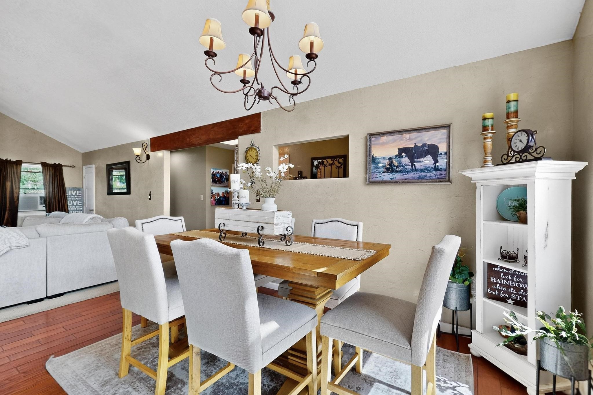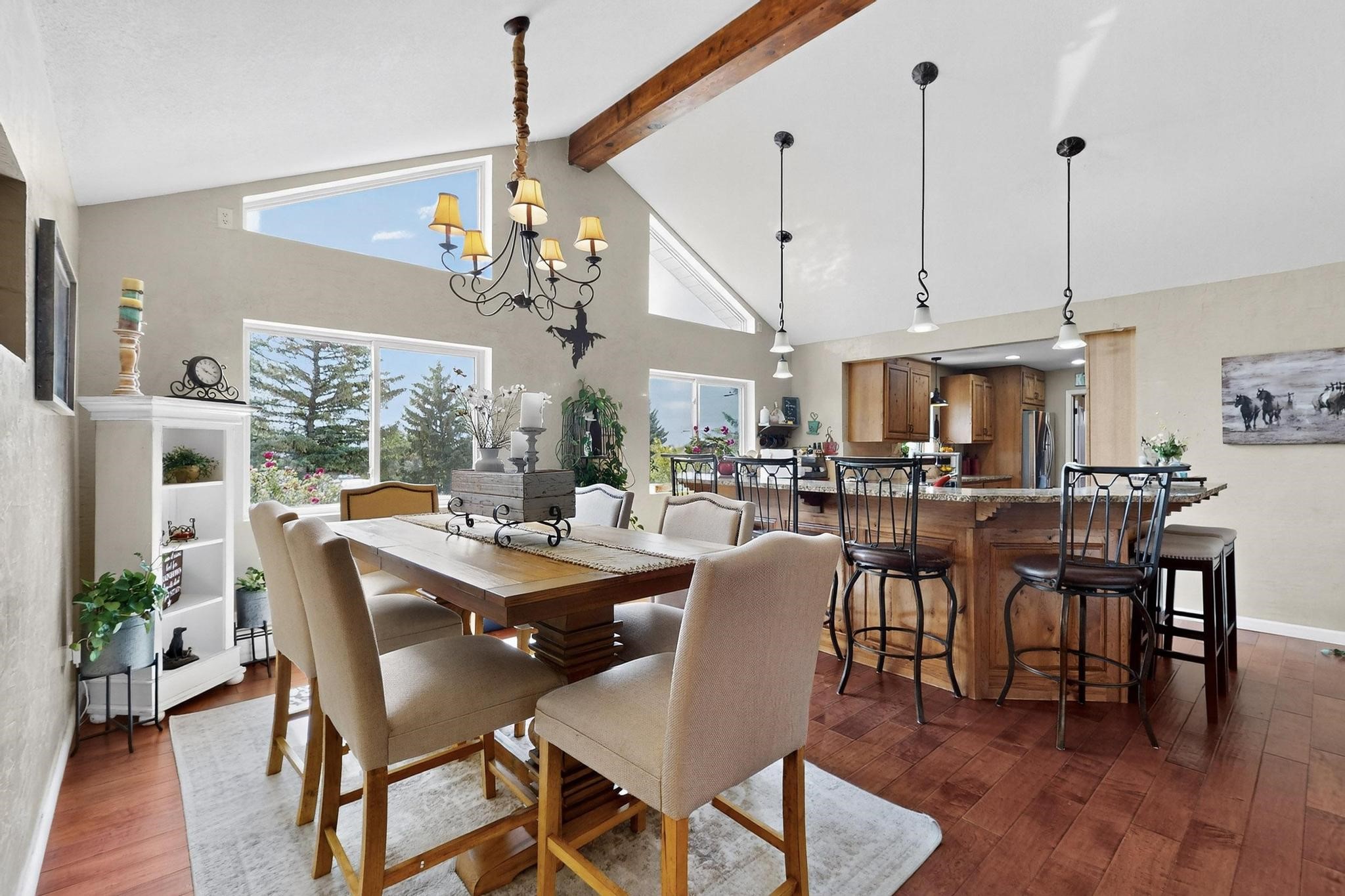 Welcome to 585 Navajo Rd, a rare move-in ready home offering 4 bedrooms, 3 bathrooms, and two bonus flex/office rooms--perfect for today's work-from-home lifestyle, hobbies, or guest space.Step inside to an inviting open-concept main level with vaulted ceilings, exposed beams, and abundant natural light. With a spacious granite island at its heart, the living, dining, and kitchen areas connect effortlessly for everyday living and entertaining.On the lower level, you'll find a second living room with a cozy fireplace, creating the perfect retreat for movie nights or quiet evenings. Throughout the home, you'll appreciate abundant storage options that keep everything organized and out of sight.This home has been carefully maintained and upgraded, featuring a new roof, new boiler, and new water heater for peace of mind.Outdoors, the property shines: the front yard is xeriscaped for low-maintenance beauty, while the backyard is a true oasis with a covered patio, pond, lush landscaping, and a large outdoor shed for all your tools and gear. There's even dedicated RV parking along the side of the house, adding functionality and value.Set on a corner lot in the highly sought-after Barranca Mesa neighborhood, you'll enjoy quiet surroundings, nearby schools, and quick access to trails and all that Los Alamos has to offer.