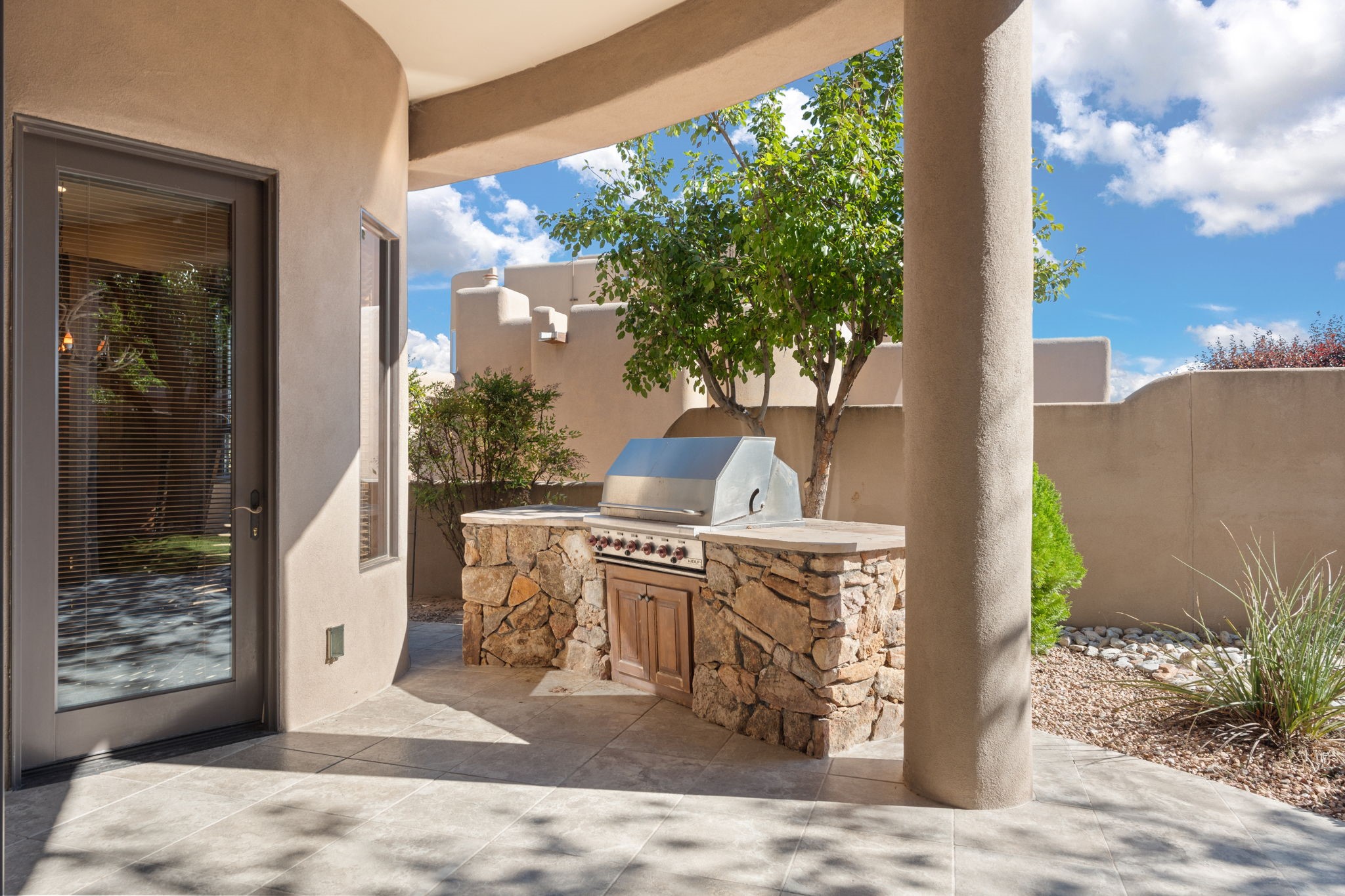 Experience luxury living at its finest in this 5,235 sq. ft. custom masterpiece perfectly situated on a cul-de-sac within an exclusive gated community. This exceptional home features 4 spacious bedrooms, 3 full baths, 2 half baths, an elegant office with its own fireplace, a private movie theater room, and a versatile game room/loft--offering the ultimate in comfort and entertainment. Impeccable craftsmanship is showcased throughout with travertine tile flooring, viga beam ceilings, intricate tile accents, and artful lighted niches. The gourmet kitchen is a chef's dream, boasting granite counters, Wolf and Sub-Zero appliances, a pot filler, warming drawer, and dual dishwashers--perfectly designed for both everyday living and lavish entertaining.The owner's suite is a serene retreat featuring a private sitting area with a two-way fireplace, balcony access to take in breathtaking mountain and city views, and a spa-inspired bath with steam shower and jetted tub. Enjoy five fireplaces placed throughout the home, creating warmth and ambiance in every gathering space.Additional features include in-floor radiant heat, three air conditioning units for year-round comfort, and timeless architectural detail that blends elegance with Southwestern charm. Every element of this home was designed to impress, extraordinary residence that offers sophistication, privacy, and panoramic views in one of the area's most desirable gated enclaves.