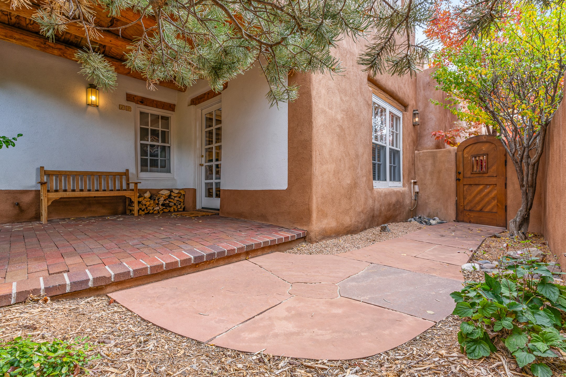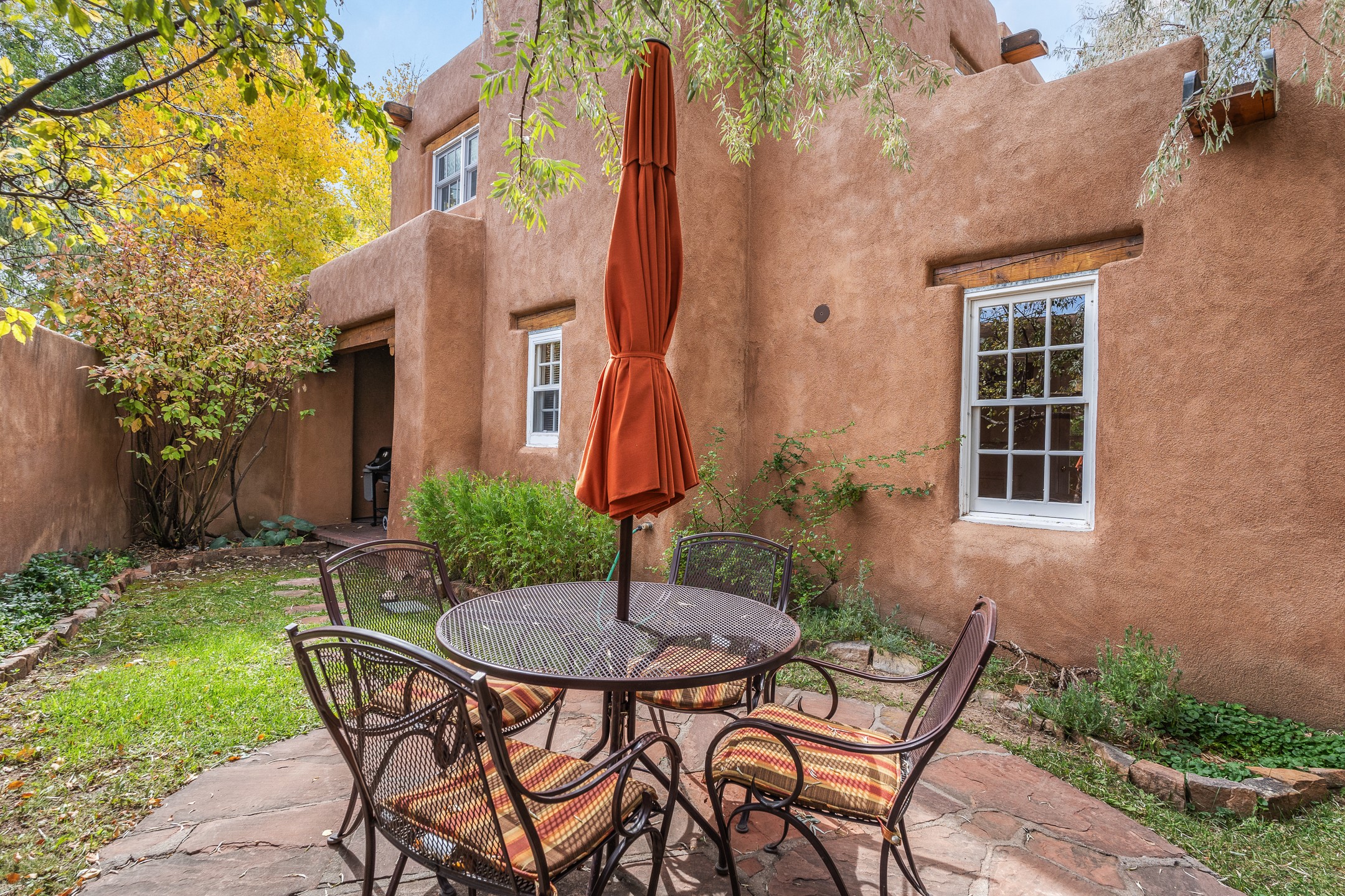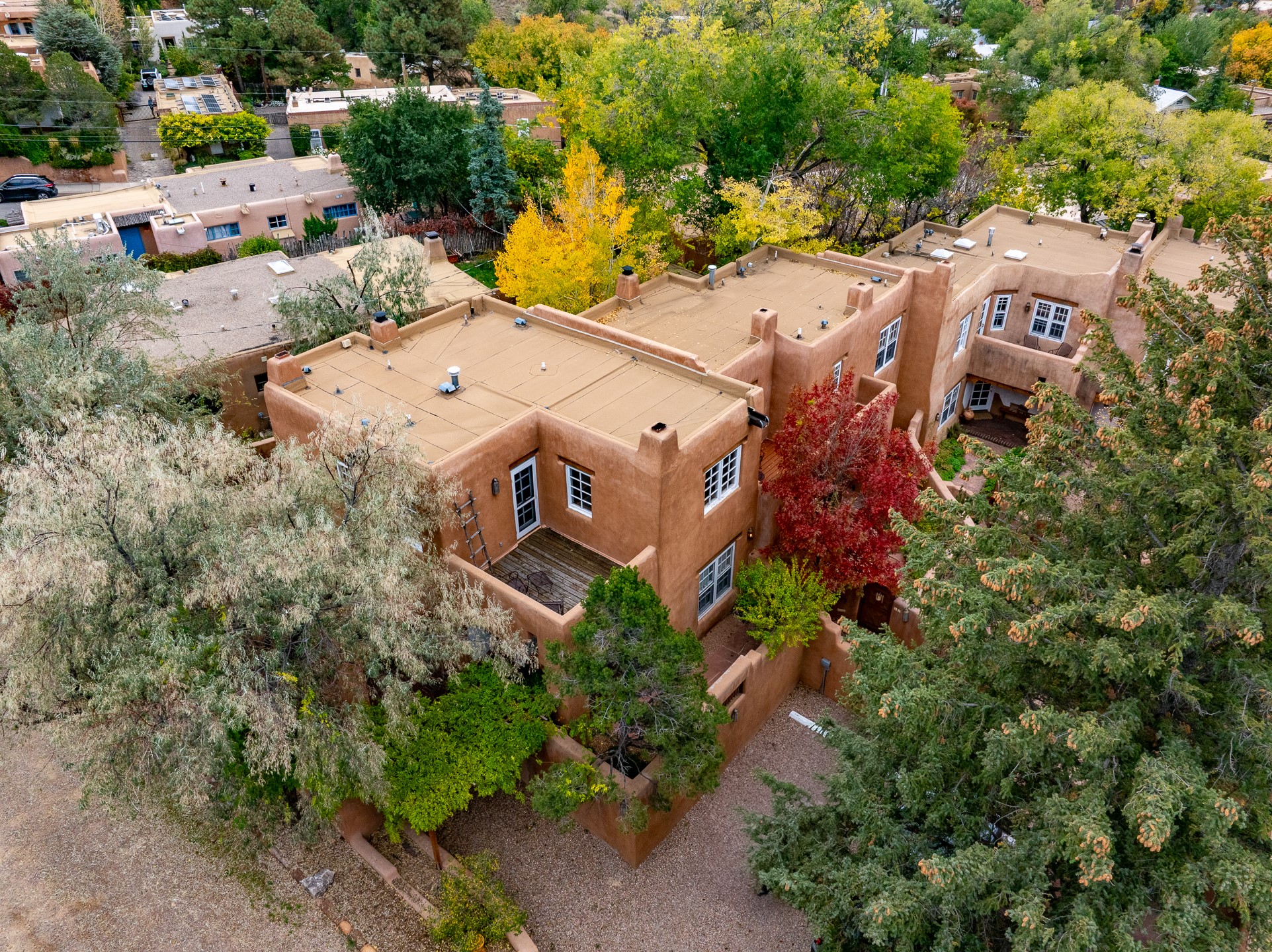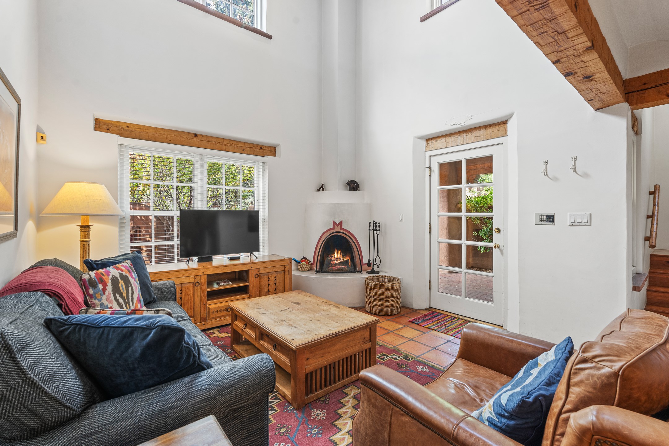 Enjoy effortless Santa Fe living in this fully furnished, professionally managed downtown retreat. Light-filled and full of Southwestern character, the living space offers soaring ceilings, vigas, and a cozy kiva fireplace -- perfect for recharging between Santa Fe adventures.The open kitchen, dining, and living areas flow naturally to a private walled courtyard with a Weber grill, perfect for outdoor dining. Upstairs, a sunny terrace offers both sunrise and sunset views. There's excellent separation between the bedrooms -- one on the main level with a nearby guest bath, and the other upstairs with its own en-suite. Both feature corner kiva fireplaces and direct outdoor access: the downstairs bedroom opens to the private courtyard, while the upstairs suite connects to the viewing terrace. A cozy loft also on the 2nd floor makes the perfect spot to read or unwind.Authentic details -- Saltillo tile & wood floors, vigas and colorful Talavera accents -- bring warmth and personality throughout. With all structures and contents maintained by the HOA, this is a truly turnkey getaway that captures the easygoing charm and vibrant spirit of downtown Santa Fe living. Each ownership retains 13 weeks/year on a rotating schedule. The new owner of 12-3 will enjoy the 2026 Holiday season with occupancy December 18-Jan 1, 2027!