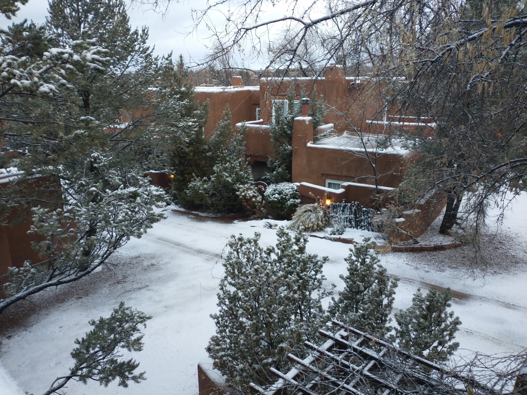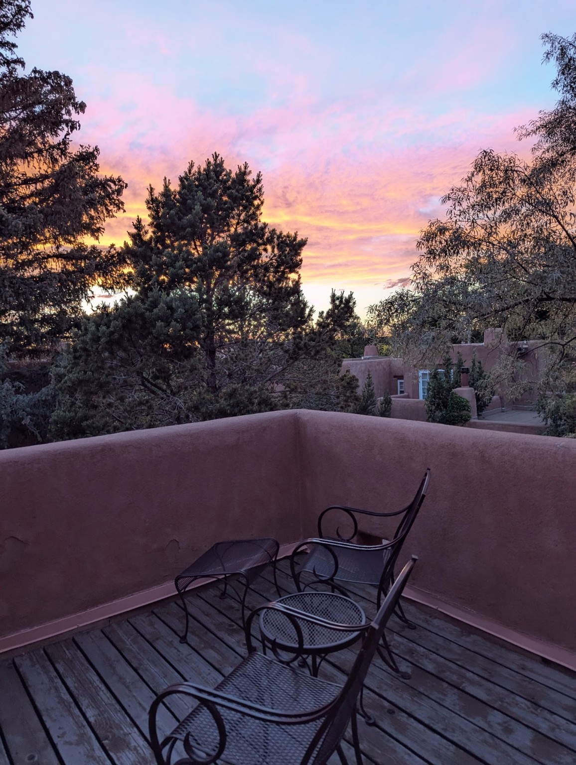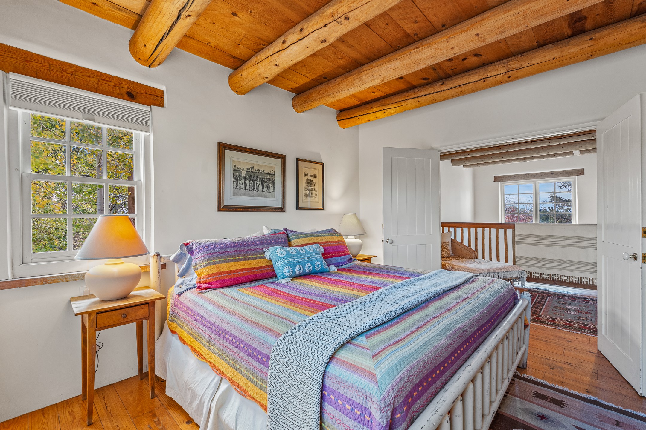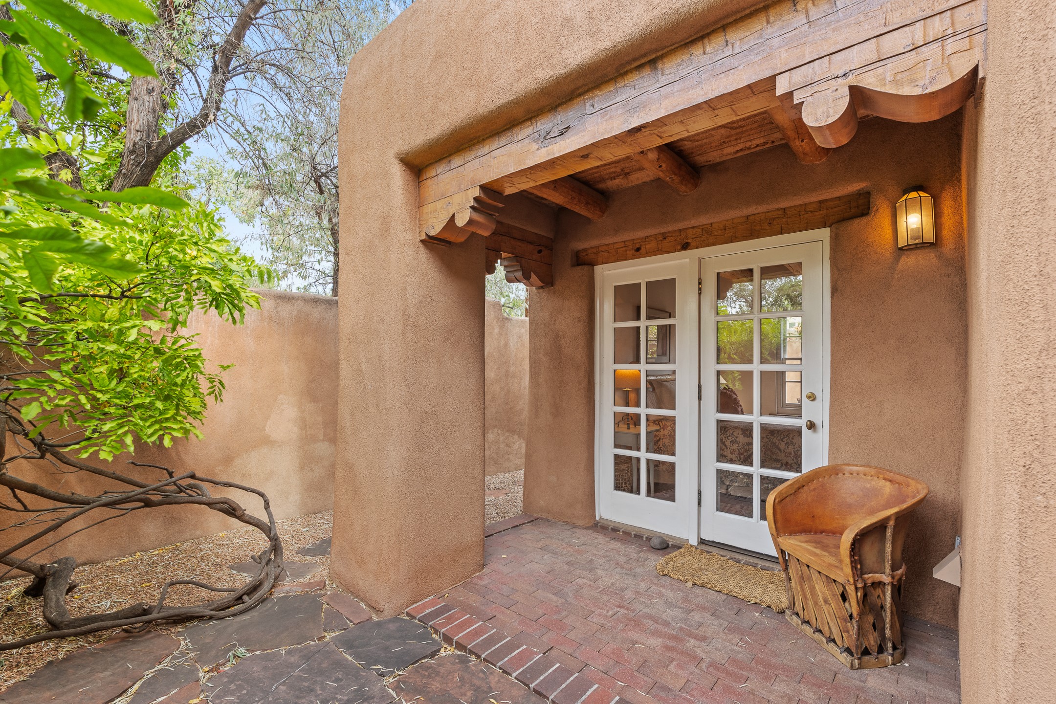 Enjoy effortless Santa Fe living in this fully furnished, professionally managed downtown retreat. Light-filled and full of Southwestern character, the living space offers soaring ceilings, vigas, and a cozy kiva fireplace -- perfect for recharging between Santa Fe adventures.The open kitchen, dining, and living areas flow naturally to a private walled courtyard with a Weber grill, perfect for outdoor dining. Upstairs, a sunny terrace offers both sunrise and sunset views. There's excellent separation between the bedrooms -- one on the main level with a nearby guest bath, and the other upstairs with its own en-suite. Both feature corner kiva fireplaces and direct outdoor access: the downstairs bedroom opens to the private courtyard, while the upstairs suite connects to the viewing terrace. A cozy loft also on the 2nd floor makes the perfect spot to read or unwind.Authentic details -- Saltillo tile & wood floors, vigas and colorful Talavera accents -- bring warmth and personality throughout. With all structures and contents maintained by the HOA, this is a truly turnkey getaway that captures the easygoing charm and vibrant spirit of downtown Santa Fe living. Each ownership retains 13 weeks/year on a rotating schedule. The new owner of 12-3 will enjoy the 2026 Holiday season with occupancy December 18-Jan 1, 2027!