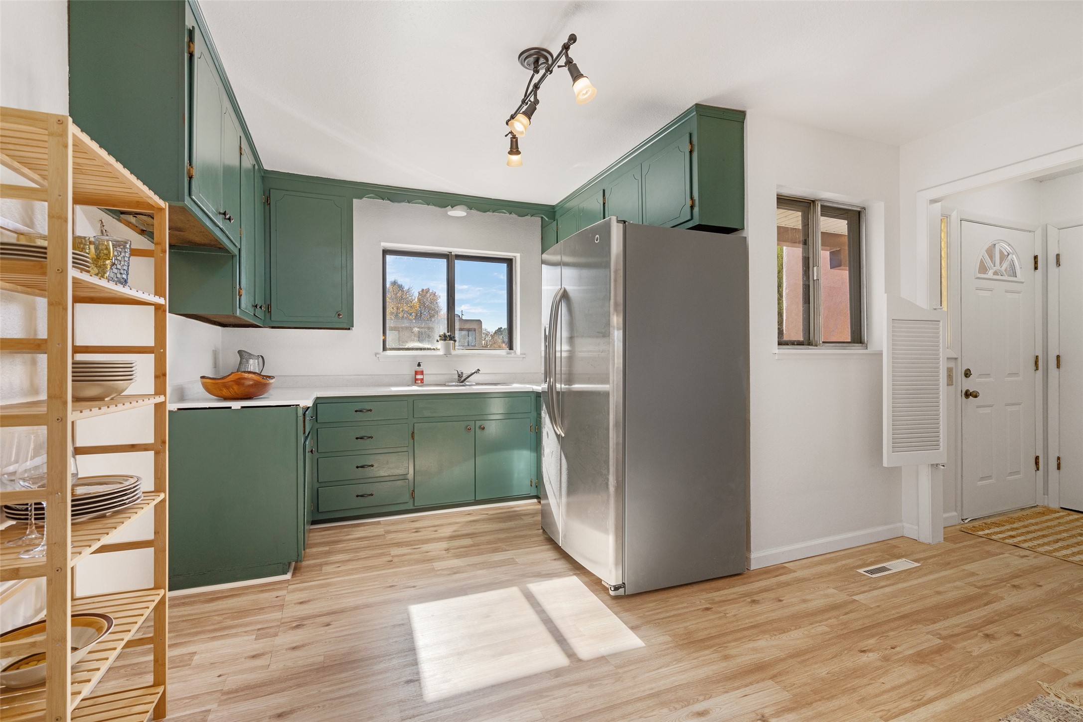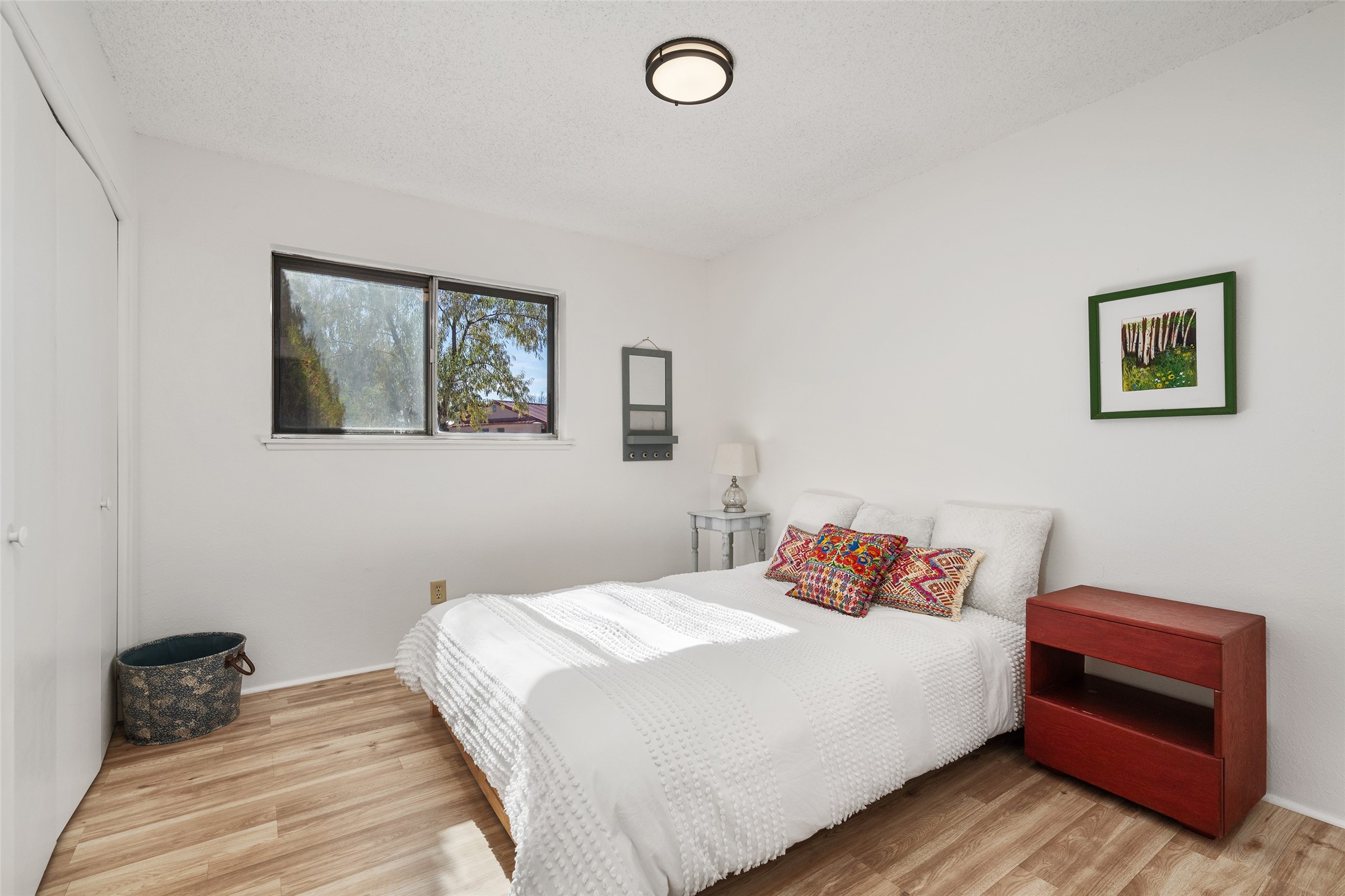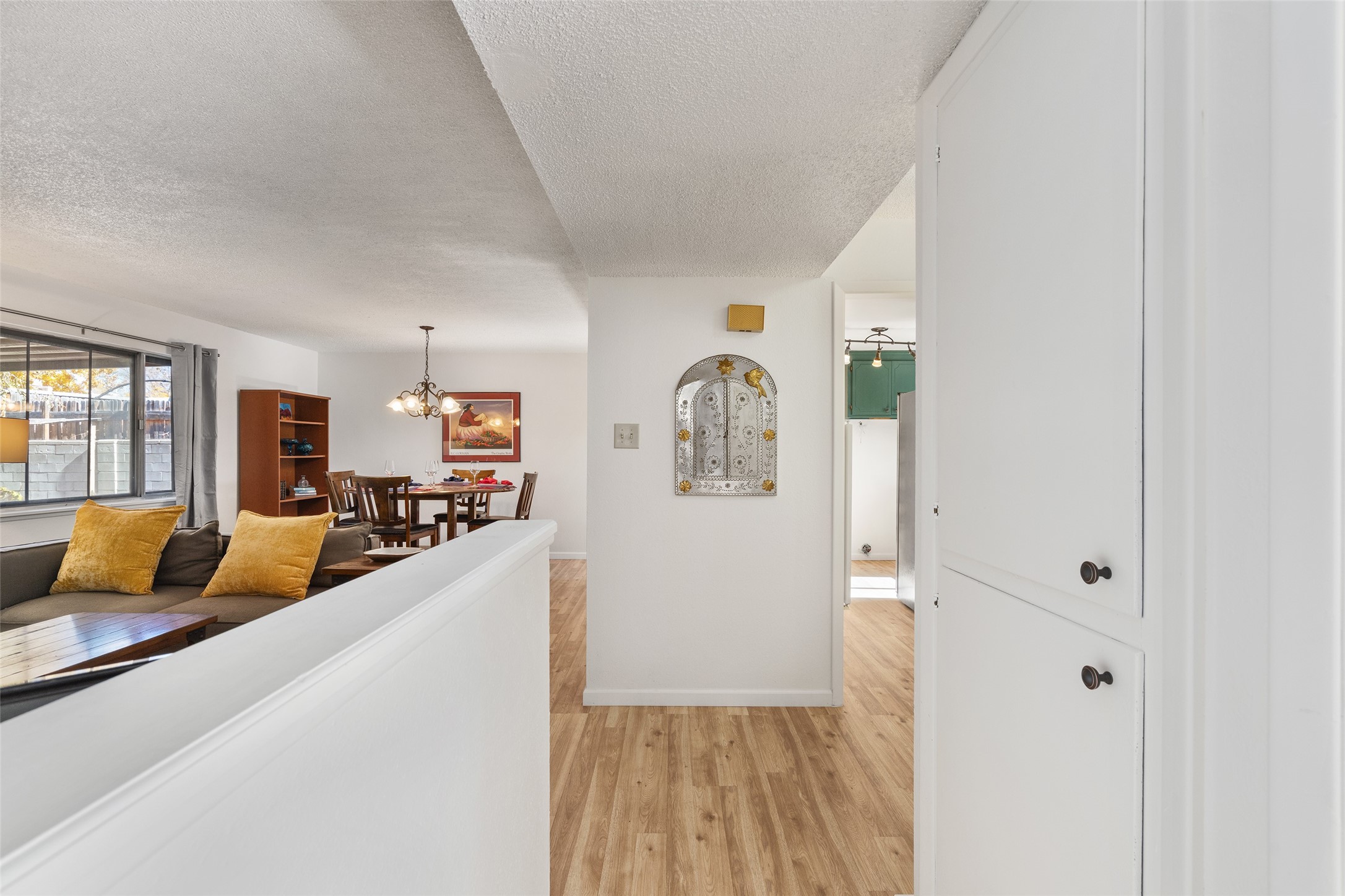 Don't miss this beautifully refreshed home near schools, parks, and shopping! Freshly painted with new flooring throughout, this home features an open floor plan that flows seamlessly from the welcoming living room--with its cozy kiva fireplace--to the dining area. The kitchen offers a newer refrigerator, and will soon include a brand new oven and sink. There's lots of extra storage - two hall closets and a linen closet. Enjoy meals in the eat-in nook, or easily add extra cabinetry for more storage and workspace. The one-car garage provides additional storage, and the spacious backyard is perfect for entertaining or relaxing under the covered patio. Move-in ready and full of charm--this home is the perfect blend of comfort, convenience, and value!