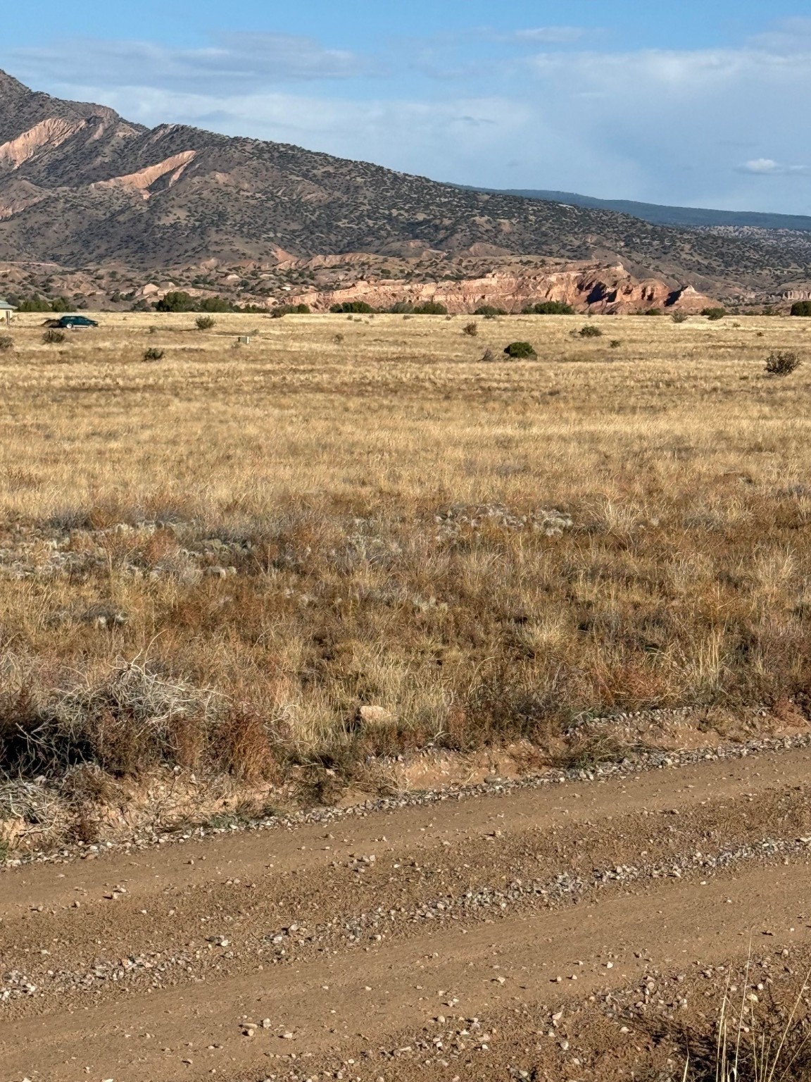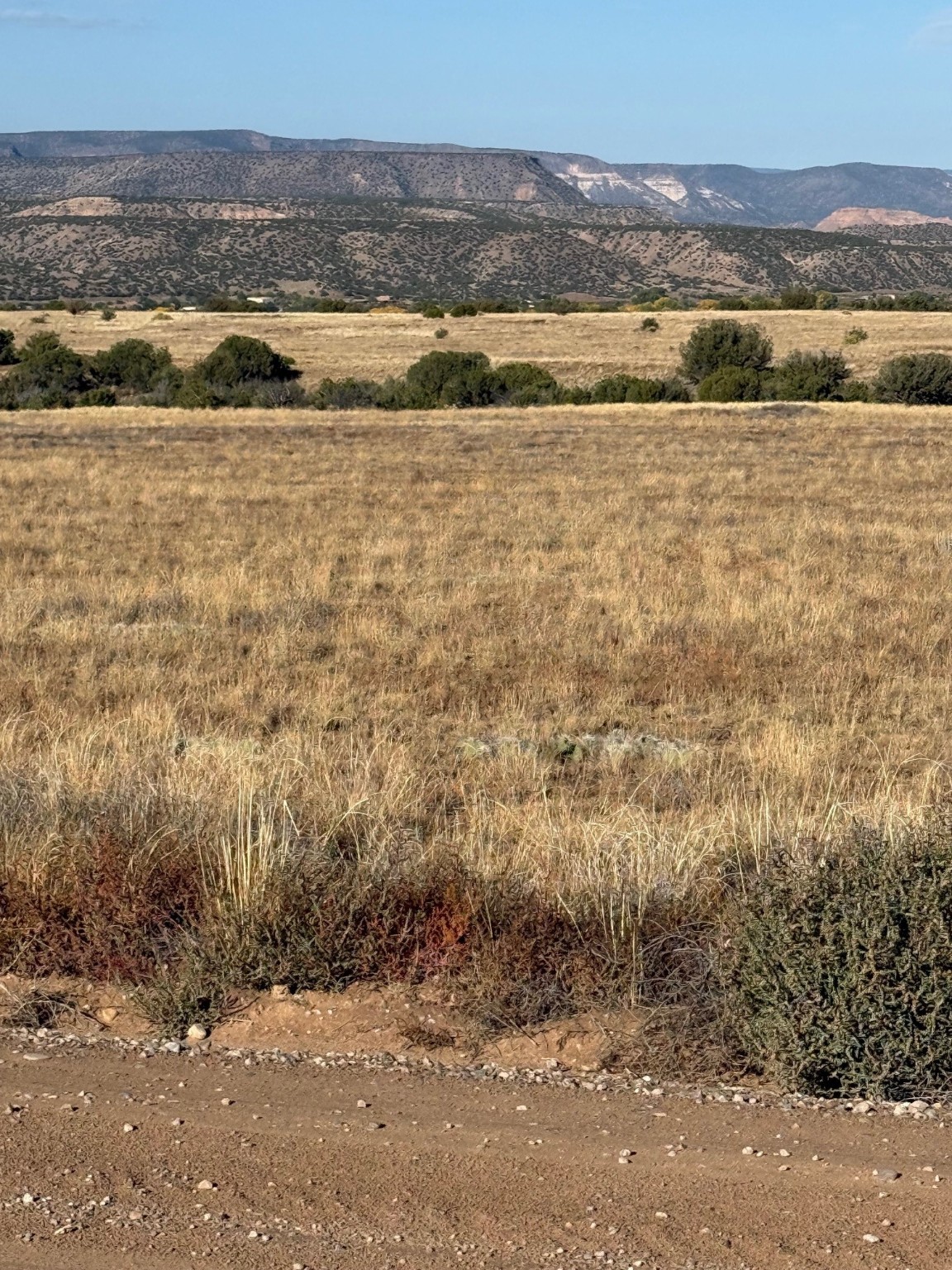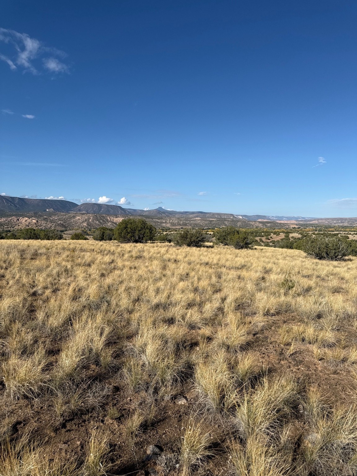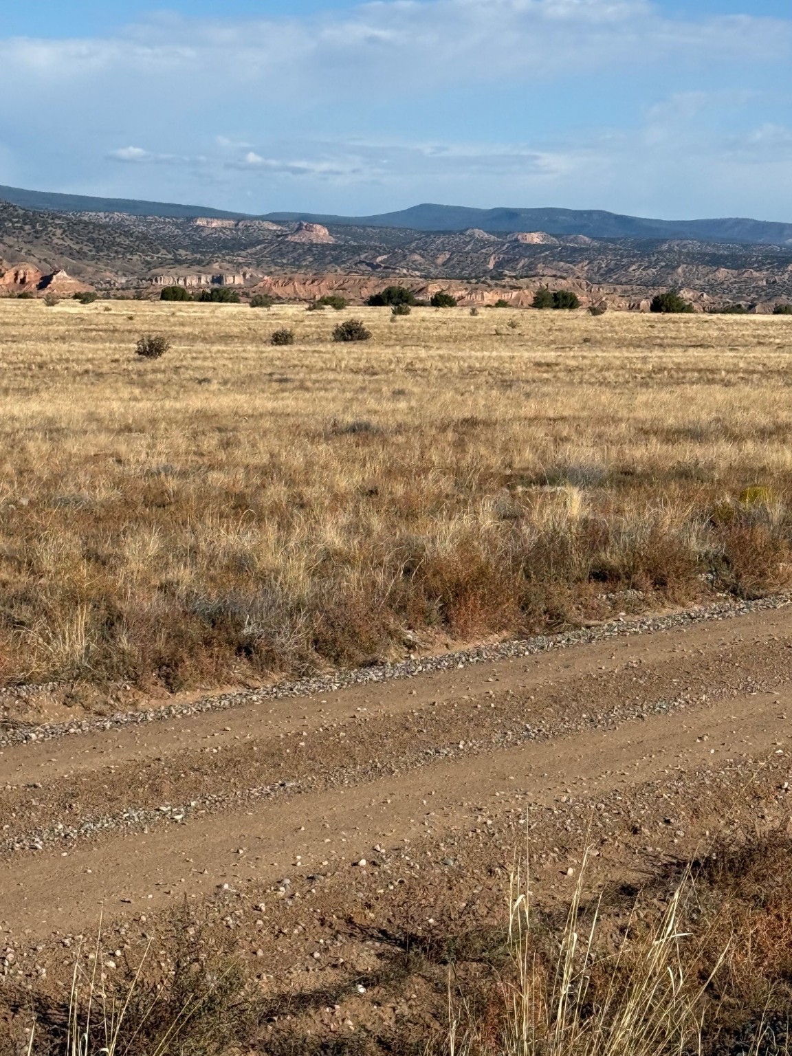 Lot 28 in the Vista de Pedernal subdivision offers a truly exceptional homesite, boasting stunning vistas that captivate throughout the day and year. The night sky is often crystal clear, revealing a vast universe at your fingertips. The panoramic views extend from the Jemez Mountains to the south, with the prominent Pedernal Mountain dominating the southwest. Beyond it, Mesa Alta, Plaza Blanca, and Cooper Mountain are visible to the northwest, almost shadowed by Mesa Negra. To the north lies El Rito, and to the east, the magnificent Sangre de Cristo mountain chain completes this breathtaking landscape. Another excellent view is the Chama River Valley. This 10-acre lot offers multiple building sites, including some on the upper east side with access from Lakewood Lane, and is surrounded by several beautiful custom-built homes. Perched on the mesa, this location offers a scenic drive to Medanales, and onward to Abiquiu, Espaola, Santa Fe, Taos, or Los Alamos.
