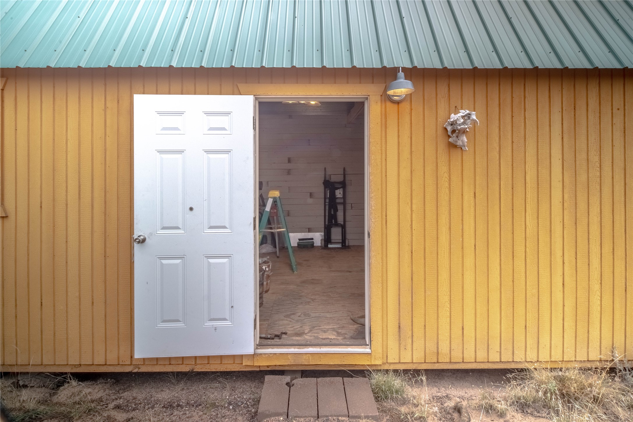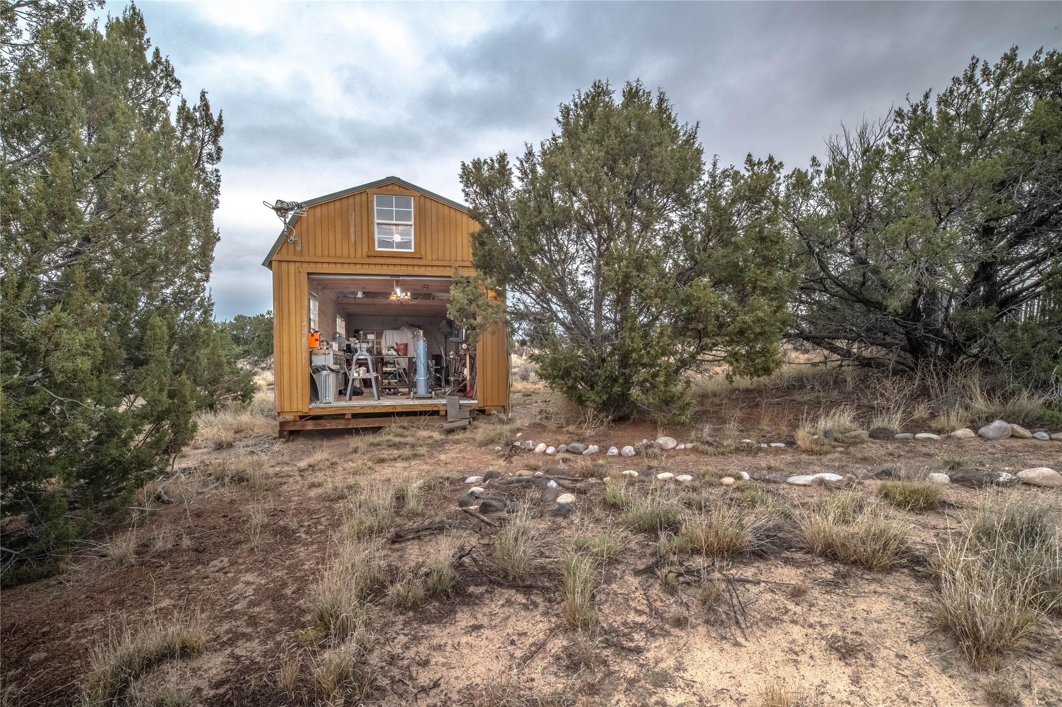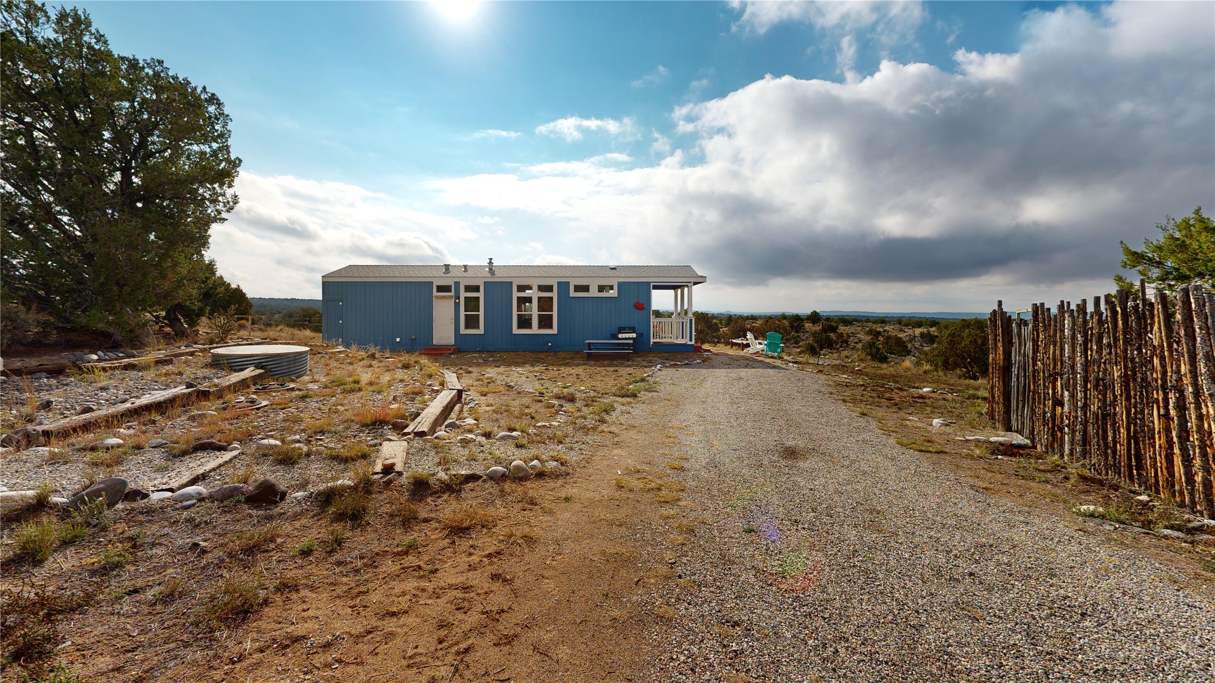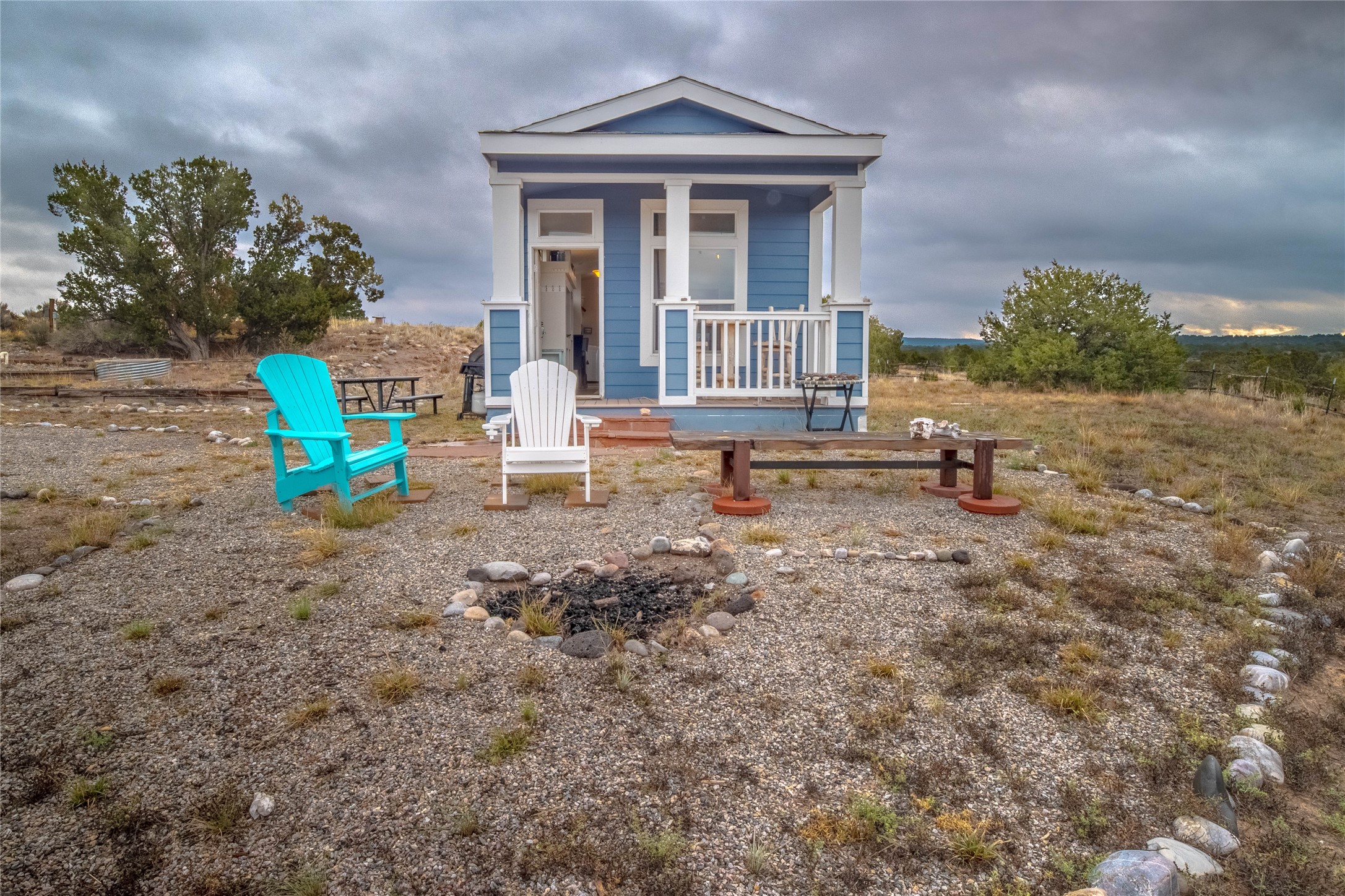 Welcome to this serene 28-acre property--ready for your horses, long walks with your dogs, and quiet mornings with coffee as you gaze at the Mesa Vibora, Cerro Azul, Black Mesa and iconic Pedernal. The property features a charming and cozy home of approximately 720 square feet with a welcoming front deck and thoughtful updates throughout. Interior enhancements include 2x6 construction, added insulation for climate efficiency, new lajinate flooring, recently replaced appliances, and a beautiful new center island. With both forced air heat and cooling, you'll enjoy comfort in every season. The home rests on a permanent foundation with a crawl space for easy access and peace of mind. Affectionately known as The Blue House, this successful Airbnb offers flexibility as a cozy primary residence, income property, or transitional home while you build your dream retreat on the surrounding acreage. The 28 acres have already been surveyed and thoughtfully divided into three plots: Plot 1: Includes the home and a 12x30 workshop with electricity (wired for a welder) and a large roll-up door--perfect for projects, storage, or creative work while taking in expansive mountain views.The workshop has been insulated and professionally wired. Plots 2 & 3: The first is 10 acres and the second consists of 8 acres, with electrical boxes. Check with Kit Carson for final electrical hook-up. Each parcel can accommodate two homes, offering the potential to create a small development, family compound, or multi-home retreat. Modular homes allowed with some protective covenants in place. Additional property features include three RV spaces--two with electricity and one with full hookups including water, sewer and wifi as well as 30 amp electricity--ideal for guests, rental opportunities, or future expansion. Water capacity is plentiful with two 1,600-gallon storage tanks, reducing the need for frequent water deliveries. Stay connected with Kit Carson high-speed fiber optic internet and enjoy reliable comfort year-round with a large propane tank serving the home. An established, recorded recreational easement ( hiking and horseback--no vehicles) through the adjacent 40-acre tract leads directly into the Carson National Forest, where you'll find scenic trails perfect for horseback riding, hiking, and peaceful walks with your dogs. The setting is private yet ideally located--just minutes from Ojo Caliente Mineral Springs Resort & Spa for soaking, massages, and fine dining.Private electric gate makes access easy and split rail fenced to keep cows from the house, the property also has six acres fenced for a horse pasture and panels for easy penning. You're also within easy reach of historic Taos, where you can explore the Taos Pueblo, Taos Plaza, and enjoy the area's grocery stores, shops, and medical services--not to mention exceptional dining options for every taste and occasion.The backroad to El Rito and Abiqui offers great views and recreational opportunities plus dining variety in El Rito and Abiqui. Only one hour to board the historic Cumbres and Toltec train!