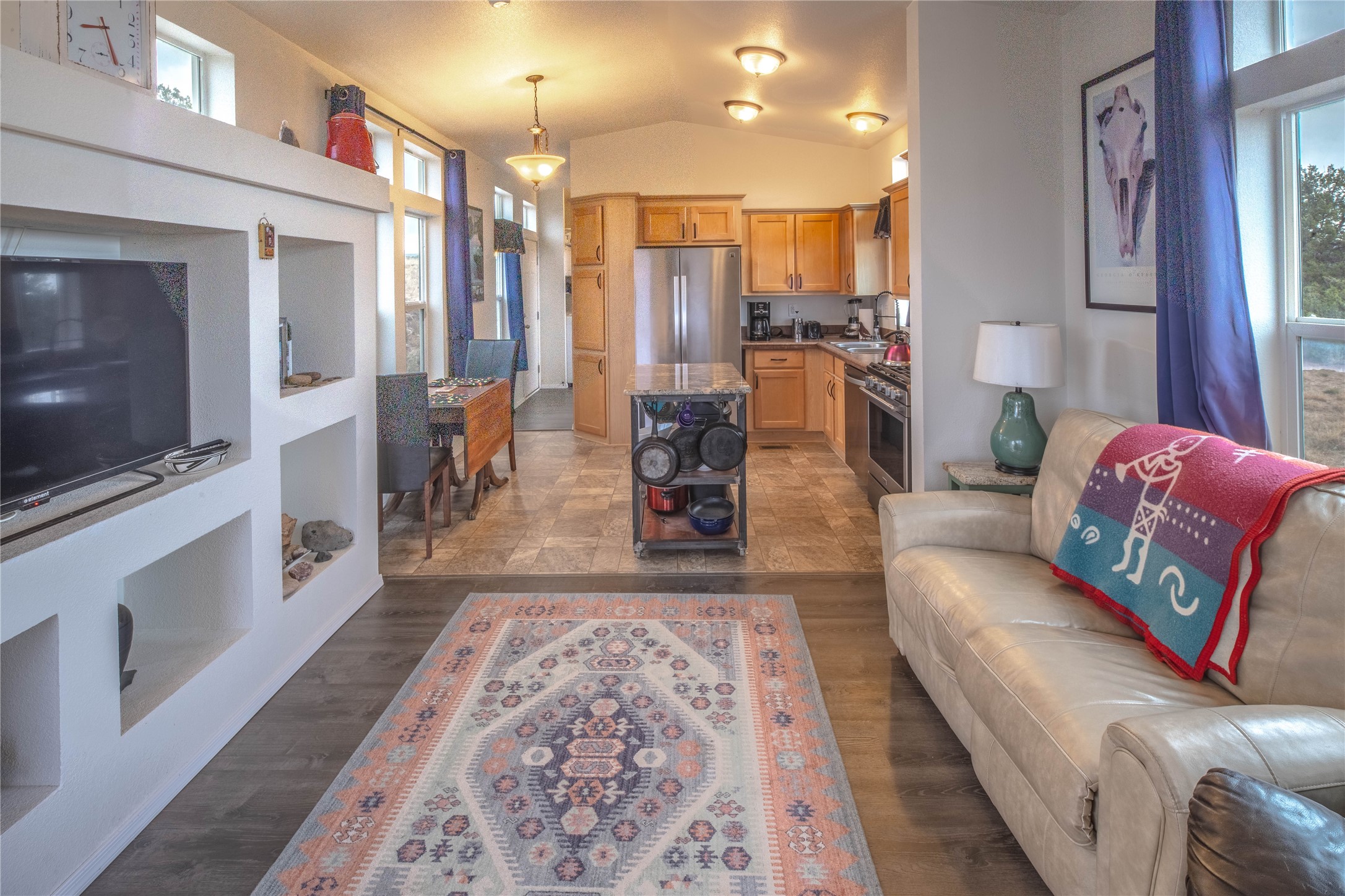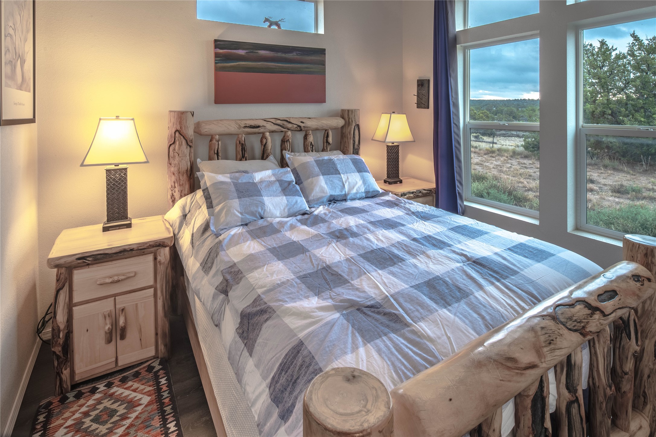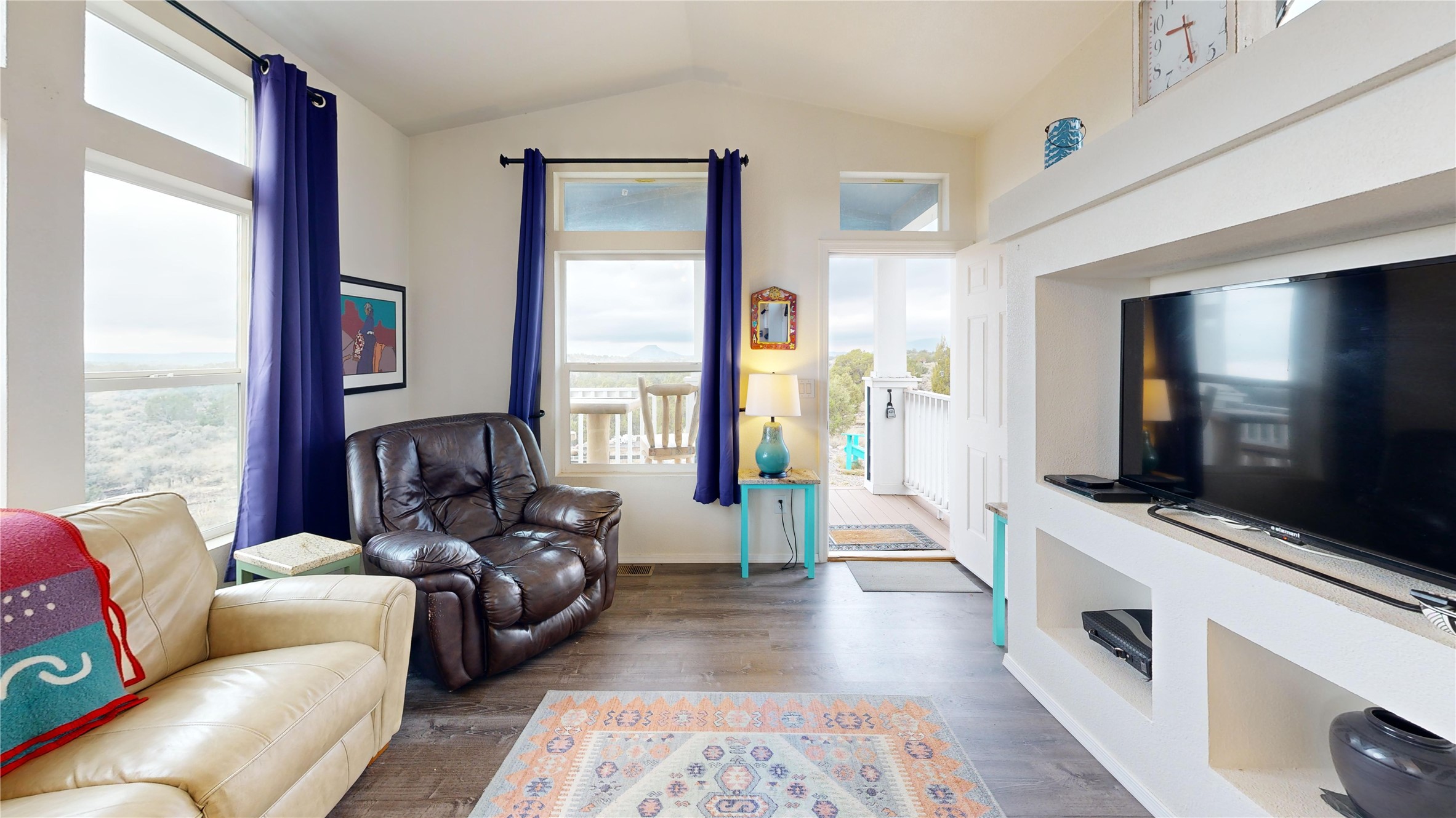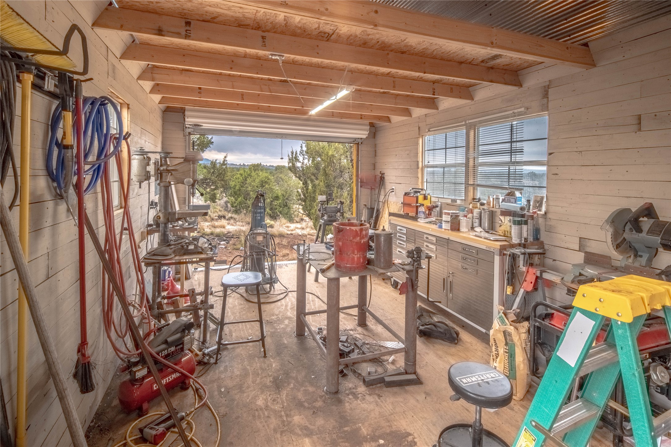 Welcome to this serene 28-acre property--ready for your horses, long walks with your dogs, and quiet mornings with coffee as you gaze at the Mesa Vibora, Cerro Azul, Black Mesa and iconic Pedernal. The property features a charming and cozy home of approximately 720 square feet with a welcoming front deck and thoughtful updates throughout. Interior enhancements include 2x6 construction, added insulation for climate efficiency, new lajinate flooring, recently replaced appliances, and a beautiful new center island. With both forced air heat and cooling, you'll enjoy comfort in every season. The home rests on a permanent foundation with a crawl space for easy access and peace of mind. Affectionately known as The Blue House, this successful Airbnb offers flexibility as a cozy primary residence, income property, or transitional home while you build your dream retreat on the surrounding acreage. The 28 acres have already been surveyed and thoughtfully divided into three plots: Plot 1: Includes the home and a 12x30 workshop with electricity (wired for a welder) and a large roll-up door--perfect for projects, storage, or creative work while taking in expansive mountain views.The workshop has been insulated and professionally wired. Plots 2 & 3: The first is 10 acres and the second consists of 8 acres, with electrical boxes. Check with Kit Carson for final electrical hook-up. Each parcel can accommodate two homes, offering the potential to create a small development, family compound, or multi-home retreat. Modular homes allowed with some protective covenants in place. Additional property features include three RV spaces--two with electricity and one with full hookups including water, sewer and wifi as well as 30 amp electricity--ideal for guests, rental opportunities, or future expansion. Water capacity is plentiful with two 1,600-gallon storage tanks, reducing the need for frequent water deliveries. Stay connected with Kit Carson high-speed fiber optic internet and enjoy reliable comfort year-round with a large propane tank serving the home. An established, recorded recreational easement ( hiking and horseback--no vehicles) through the adjacent 40-acre tract leads directly into the Carson National Forest, where you'll find scenic trails perfect for horseback riding, hiking, and peaceful walks with your dogs. The setting is private yet ideally located--just minutes from Ojo Caliente Mineral Springs Resort & Spa for soaking, massages, and fine dining.Private electric gate makes access easy and split rail fenced to keep cows from the house, the property also has six acres fenced for a horse pasture and panels for easy penning. You're also within easy reach of historic Taos, where you can explore the Taos Pueblo, Taos Plaza, and enjoy the area's grocery stores, shops, and medical services--not to mention exceptional dining options for every taste and occasion.The backroad to El Rito and Abiqui offers great views and recreational opportunities plus dining variety in El Rito and Abiqui. Only one hour to board the historic Cumbres and Toltec train!