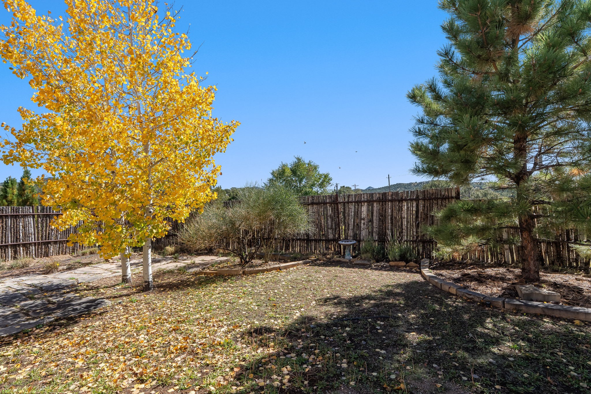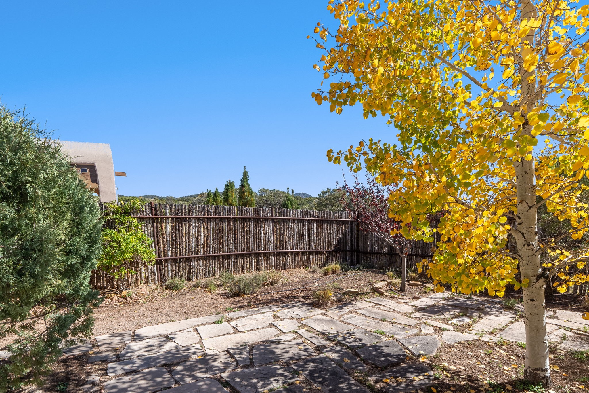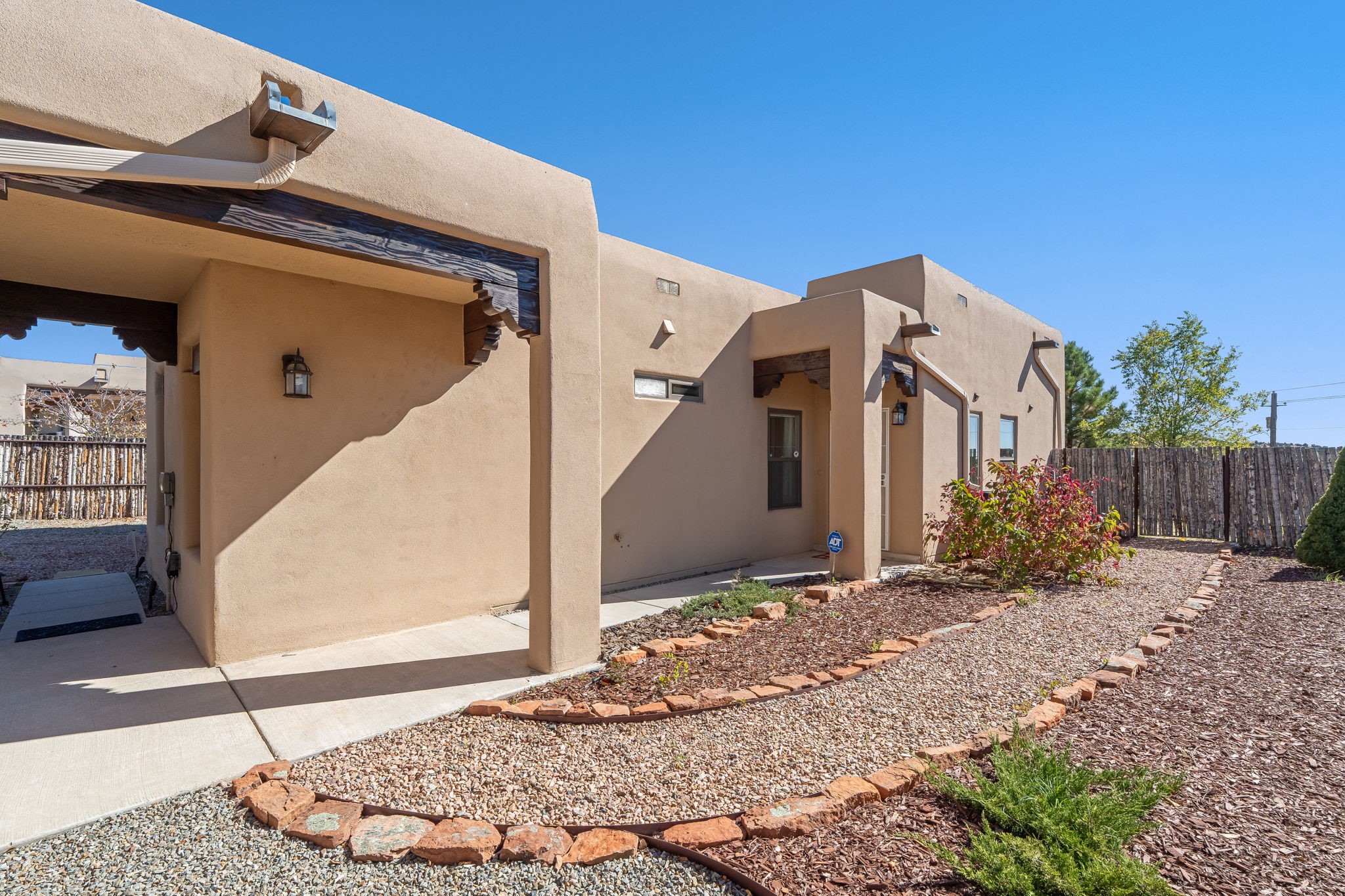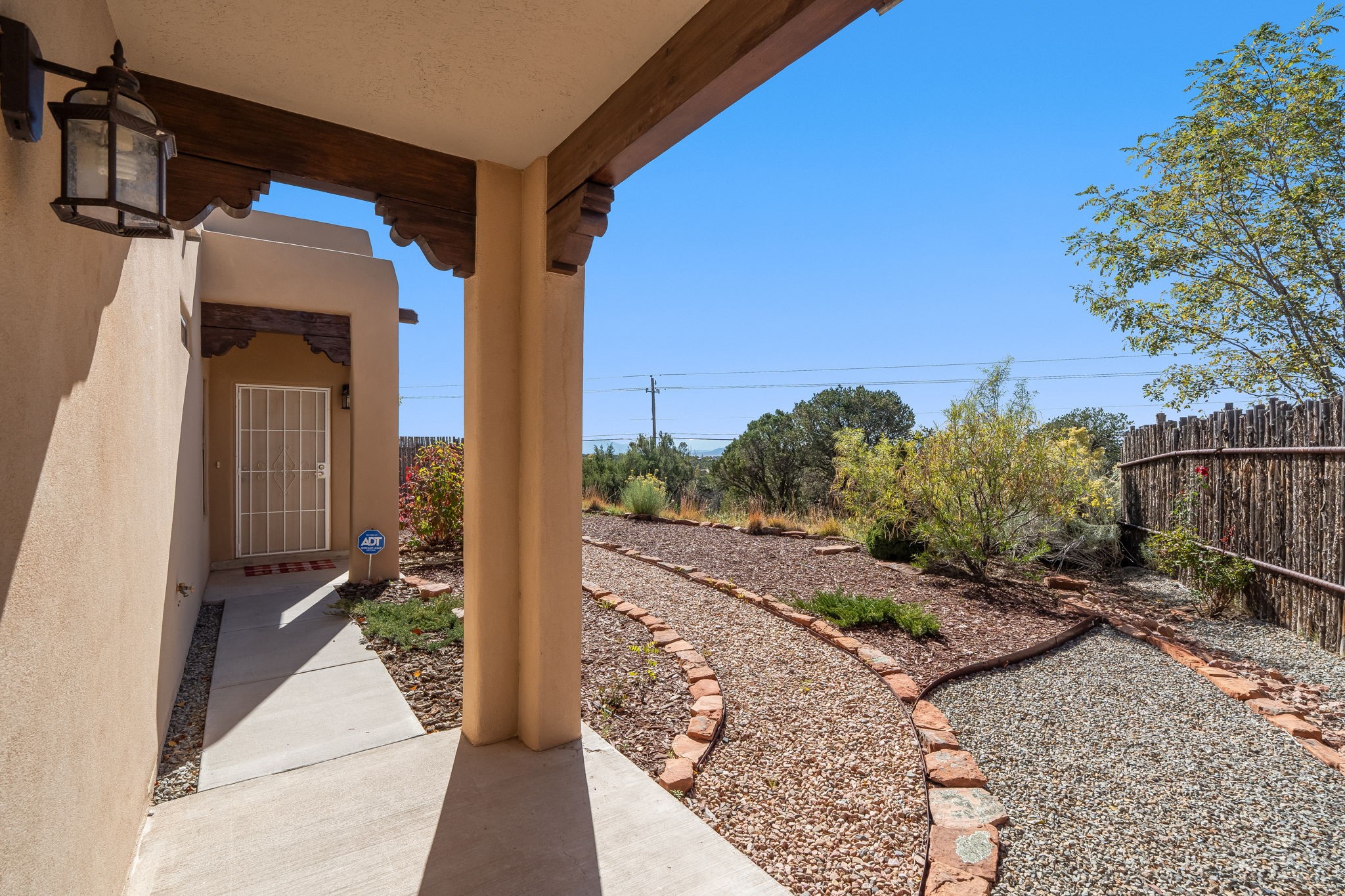 Mountain views from this sunny and charming single-level home with in-floor radiant heat. Located in the WOOD GORMLEY school district and on a cul-de-sac this home has been pre-inspected and is super clean and ready to go. All new stainless appliances with an open floorplan with kitchen, living and dining rooms. Spacious main primary bedroom with double sinks in the 3/4 bath and a walk in closet. Roof maintenance in 2024 with a 2-year warranty. Yard is landscaped on a drip and is fully fenced with two happy Aspen trees in the backyard. Gas fireplace in living room. Proper laundry room with 2024 washer and dryer. Ideal location close to shopping, schools, hospitals and 10 minutes from the Santa Fe Plaza. Six rain barrels stay with the property. There is a whole-house fan and surge protection. ADT alarm system can be transferred to new owners.