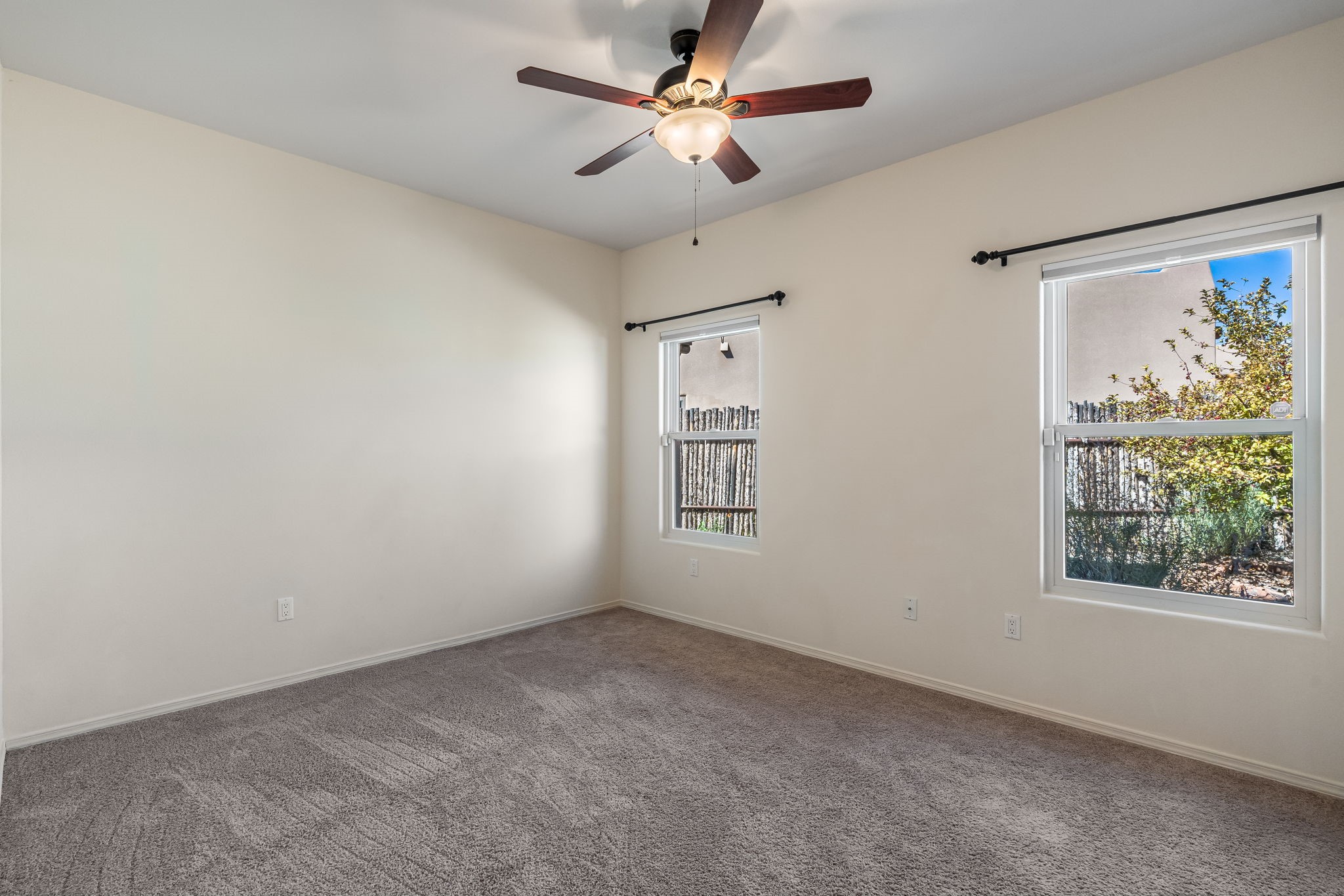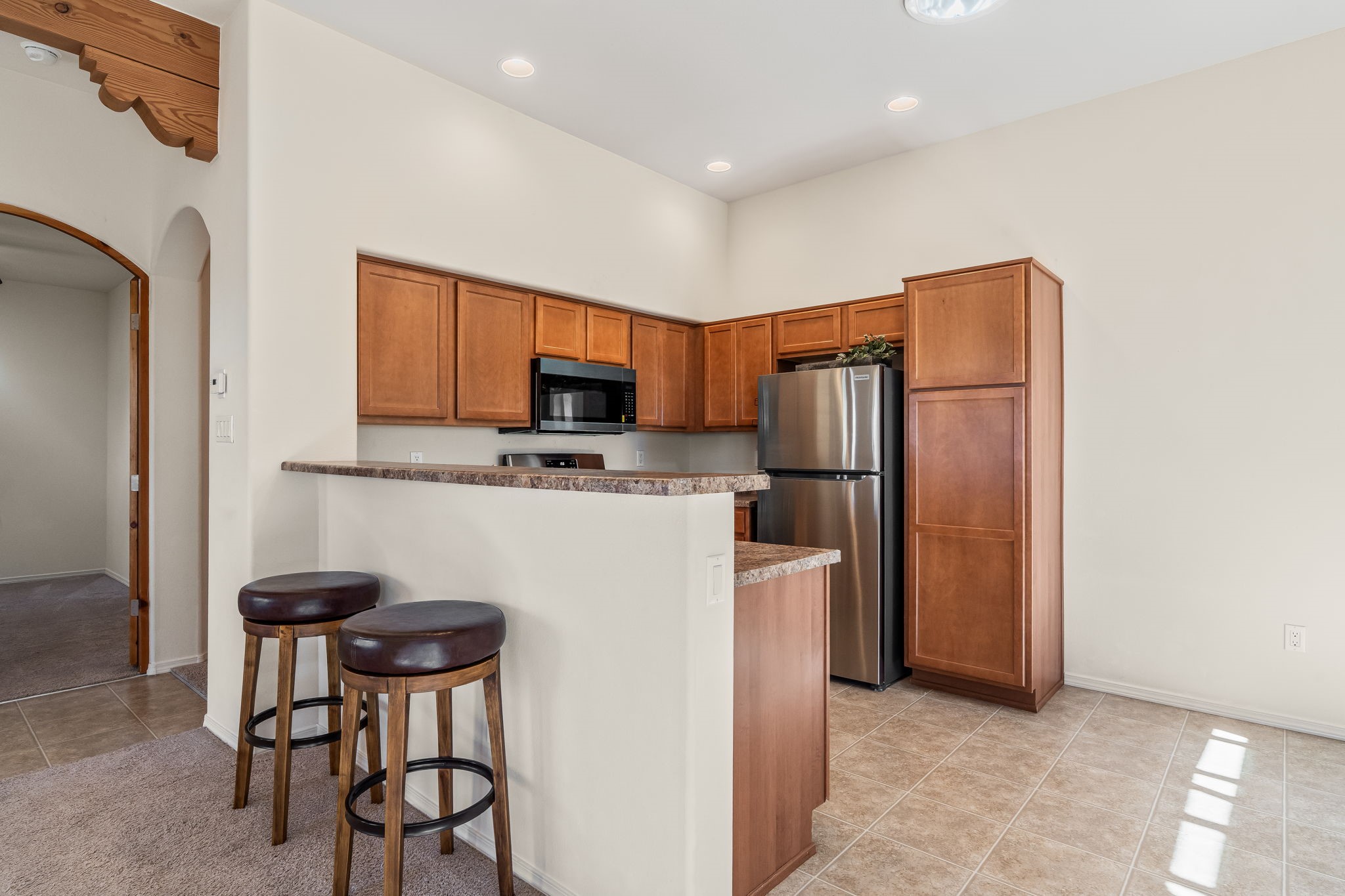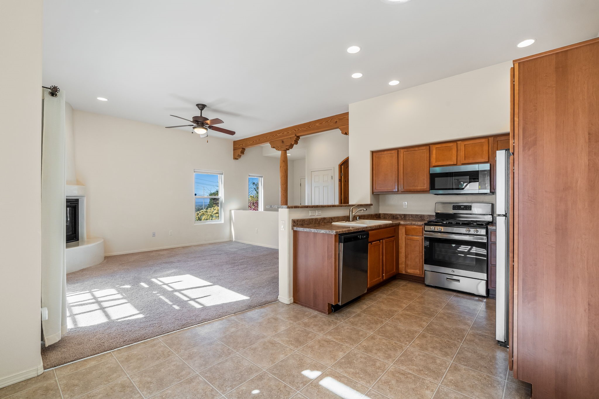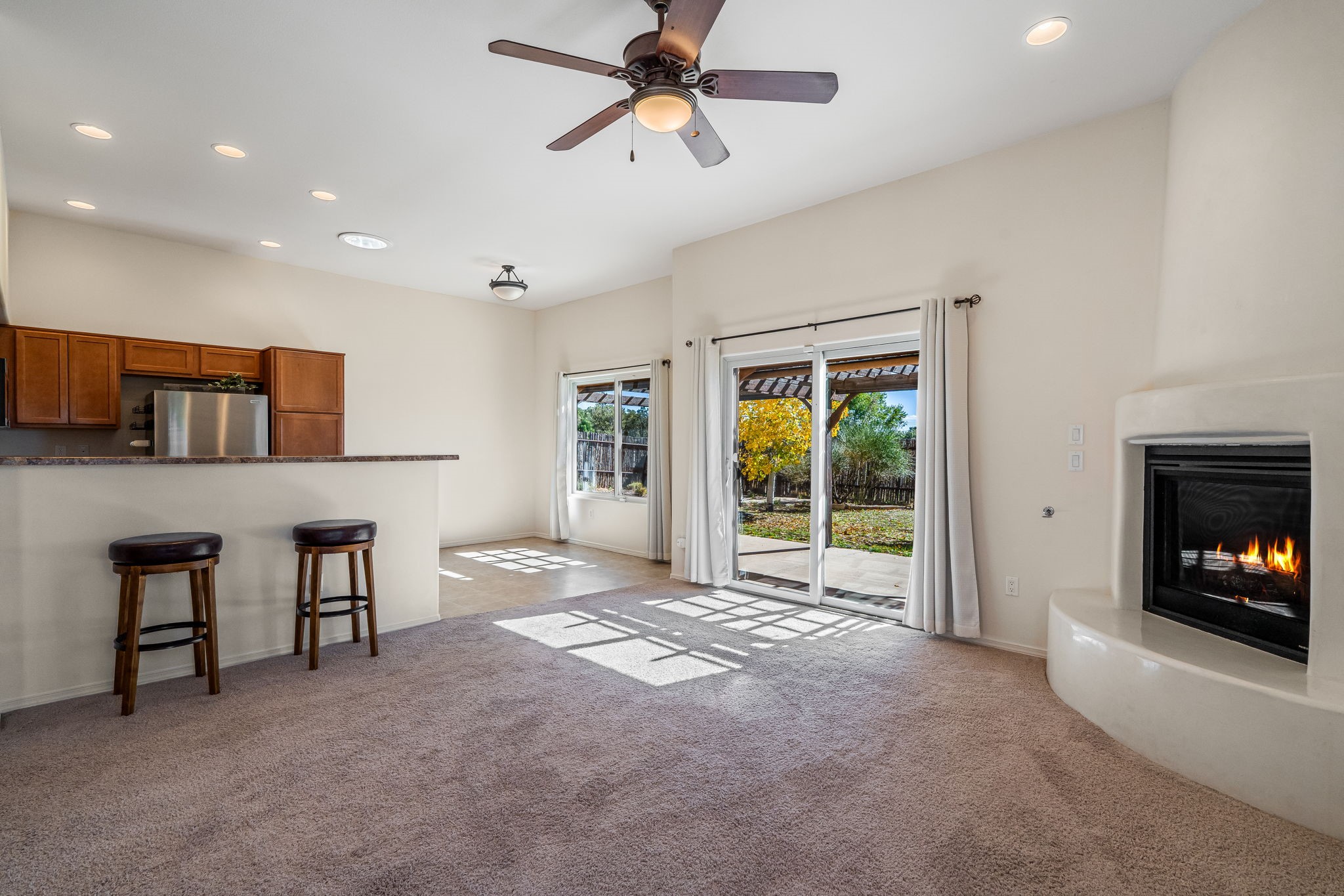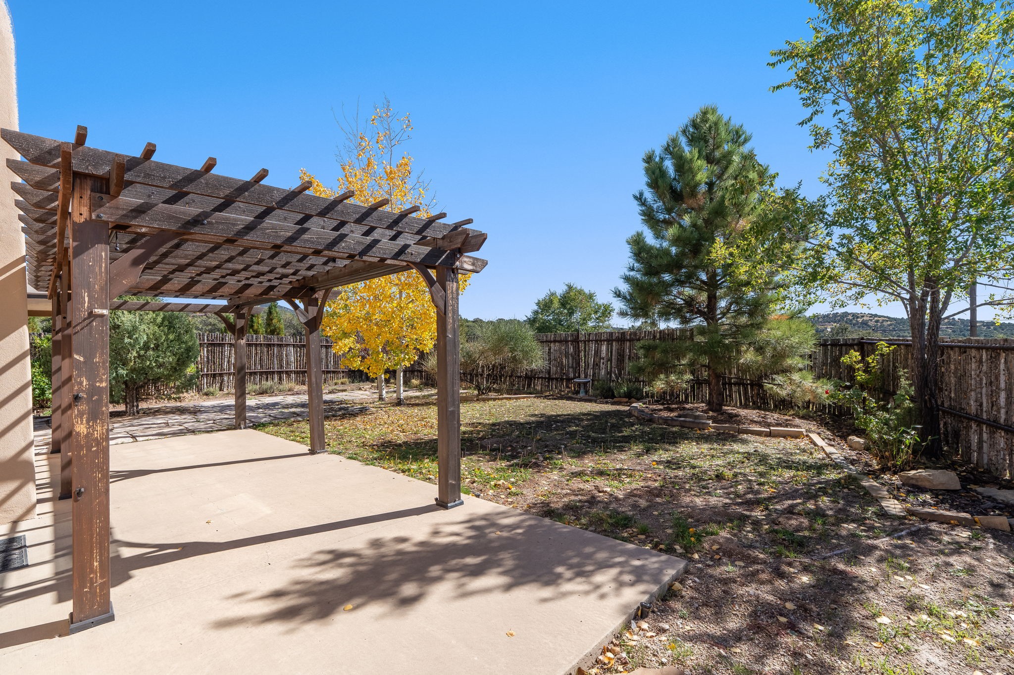 Mountain views from this sunny and charming single-level home with in-floor radiant heat. Located in the WOOD GORMLEY school district and on a cul-de-sac this home has been pre-inspected and is super clean and ready to go. All new stainless appliances with an open floorplan with kitchen, living and dining rooms. Spacious main primary bedroom with double sinks in the 3/4 bath and a walk in closet. Roof maintenance in 2024 with a 2-year warranty. Yard is landscaped on a drip and is fully fenced with two happy Aspen trees in the backyard. Gas fireplace in living room. Proper laundry room with 2024 washer and dryer. Ideal location close to shopping, schools, hospitals and 10 minutes from the Santa Fe Plaza. Six rain barrels stay with the property. There is a whole-house fan and surge protection. ADT alarm system can be transferred to new owners.