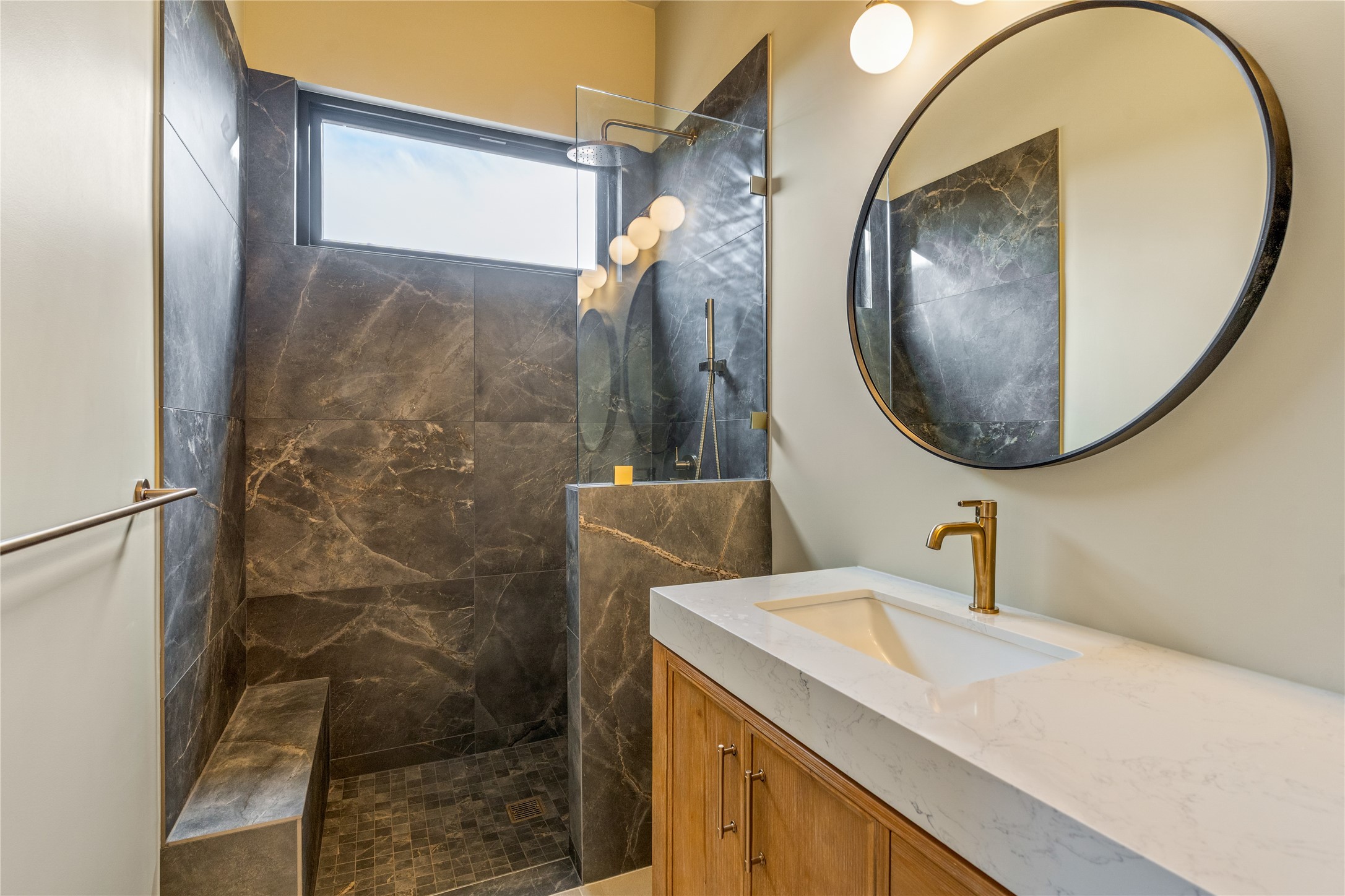 What an incredible place! The views are outstanding! Here you have 6.19+/- acres on a hilltop with views that reach far to the north and far to the west. At this property you can have an art studio or a business right at your home. There is plumbing and septic, and electric all set up to build another building on this lot. You can build an additional casita or guest house! This home is complete and ready to move into. It has the landscaping done with irrigation. The windows were placed to maximize light as well as mountain views. This modern home has gorgeous elements that also tie in the traditional styles of Santa Fe. There are viga beams in the main open concept living/dining/kitchen area. Both the front and back porches have Fir posts and beams with plenty of space to entertain or just relax and take in the beauty of this place. Watch the weather with a cup of coffee or tea on the back porch. There is a Douglas Fir custom-built modern vanity in the guest bathroom as well. The floors are a gorgeous, real wood engineered white oak. The doors are all a beautiful alder wood. Here you have a certified Green design home with Energy Star appliances, a HERS rating certification, and a very well-insulated house with highly insulated windows. This home comes with A/C and forced air heating, which is great when you want the temperature to adjust right away. Every detail was thought out and selected with a discriminating eye.You must come check this beautiful home out to feel what it will be like to live here.