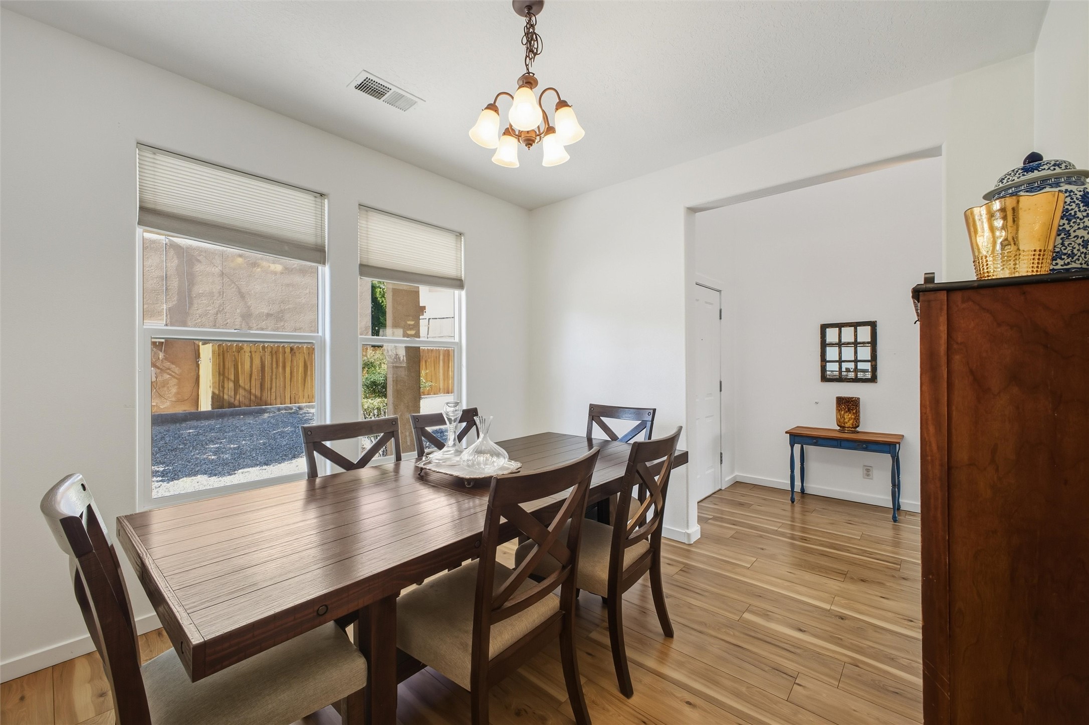 Welcome to 6985 Golden Mesa, a 4 bed, 3 bath, 2 car garage home nestled in the highly sought-after subdivision in Santa Fe. This well designed home offers both comfort and convenience. This functional floor plan includes an open and spacious living area, a bright kitchen, four generously sized bedrooms, & sits on a large corner lot! One bedroom or office w/ a full bath downstairs. The attached 2-car garage provides ample parking and storage. No HOA! Don't miss your chance to enjoy Santa Fe living --schedule your showing today!