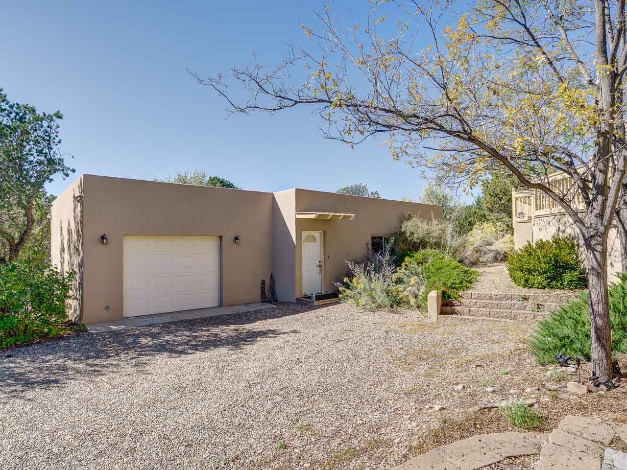 Private Santa Fe Retreat: Main House & Casita on a secluded 0.84 acre lot makes 801 Calle David the ultimate Santa Fe compound. This stunning property is a rare find, offering both a spacious main residence and a fully equipped, private 1 bedroom/1bathroom/1 car garage guest casita for unparalleled flexibility and privacy. Main Residence Highlights (2,559 Sq Ft): 4 Bedrooms with excellent separation, plus a bonus room that can be used as a media room or space to display your art or memorabilia. This rastra constructed home has beautiful diamond finished plaster walls, custom hardwood doors and a cozy two sided fireplace for Santa Fe's cool evenings. Enjoy multiple outdoor living spaces, including two decks and two covered patios, one complete with a relaxing hot tub and some mountain views. The main house has an attached two-car garage and the casita has its own attached one-car garage. The casita (840 Sq Ft) can be a true home-away-from-home for visitors or a perfect rental opportunity. Located in a desirable Santa Fe neighborhood, this property masterfully blends the best of New Mexico's timeless architecture with the space and amenities needed for modern living. The solar array is an added bonus taking advantage of Santa Fe's average 300 days of sunshine to reduce your utility costs.