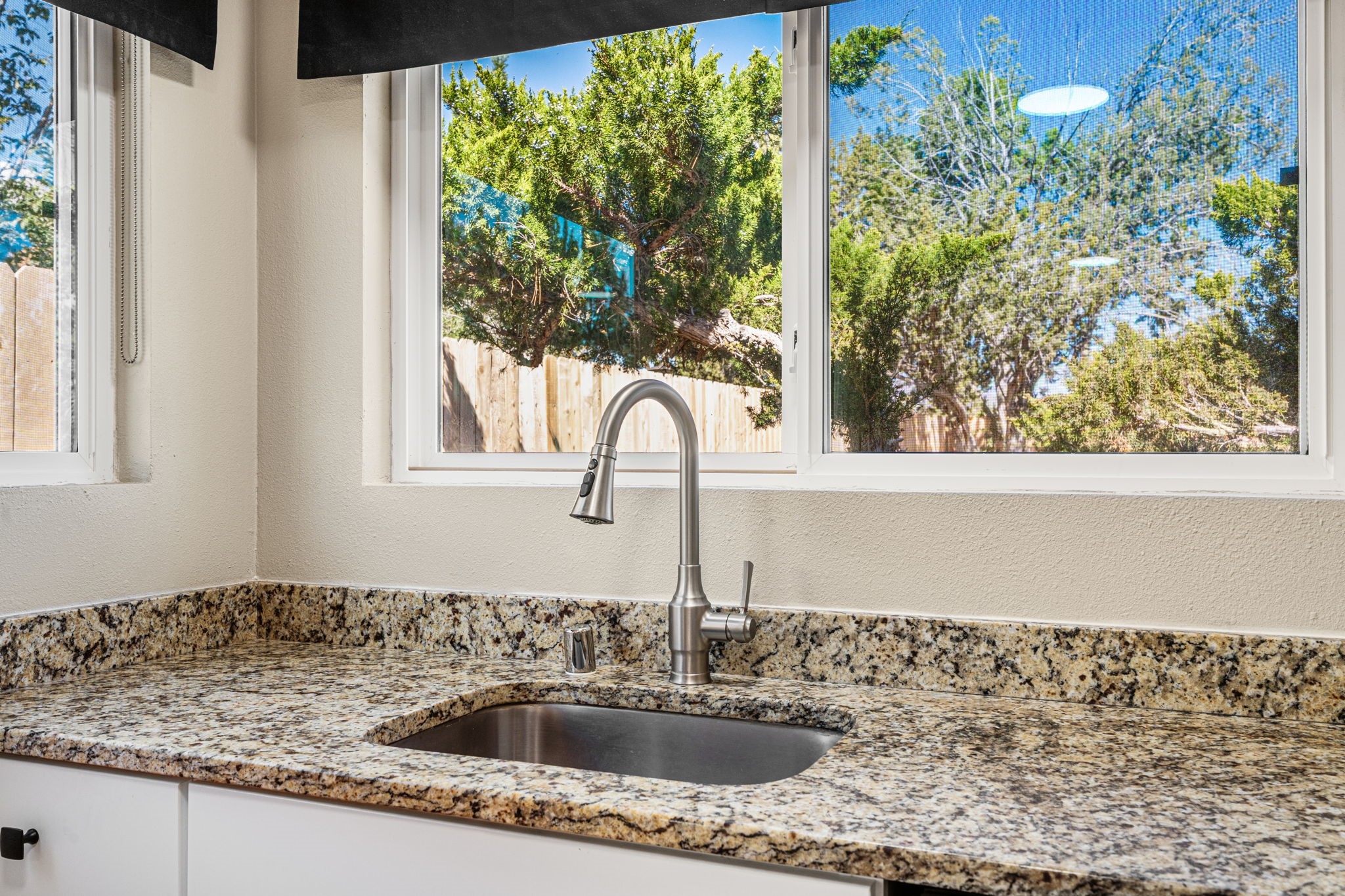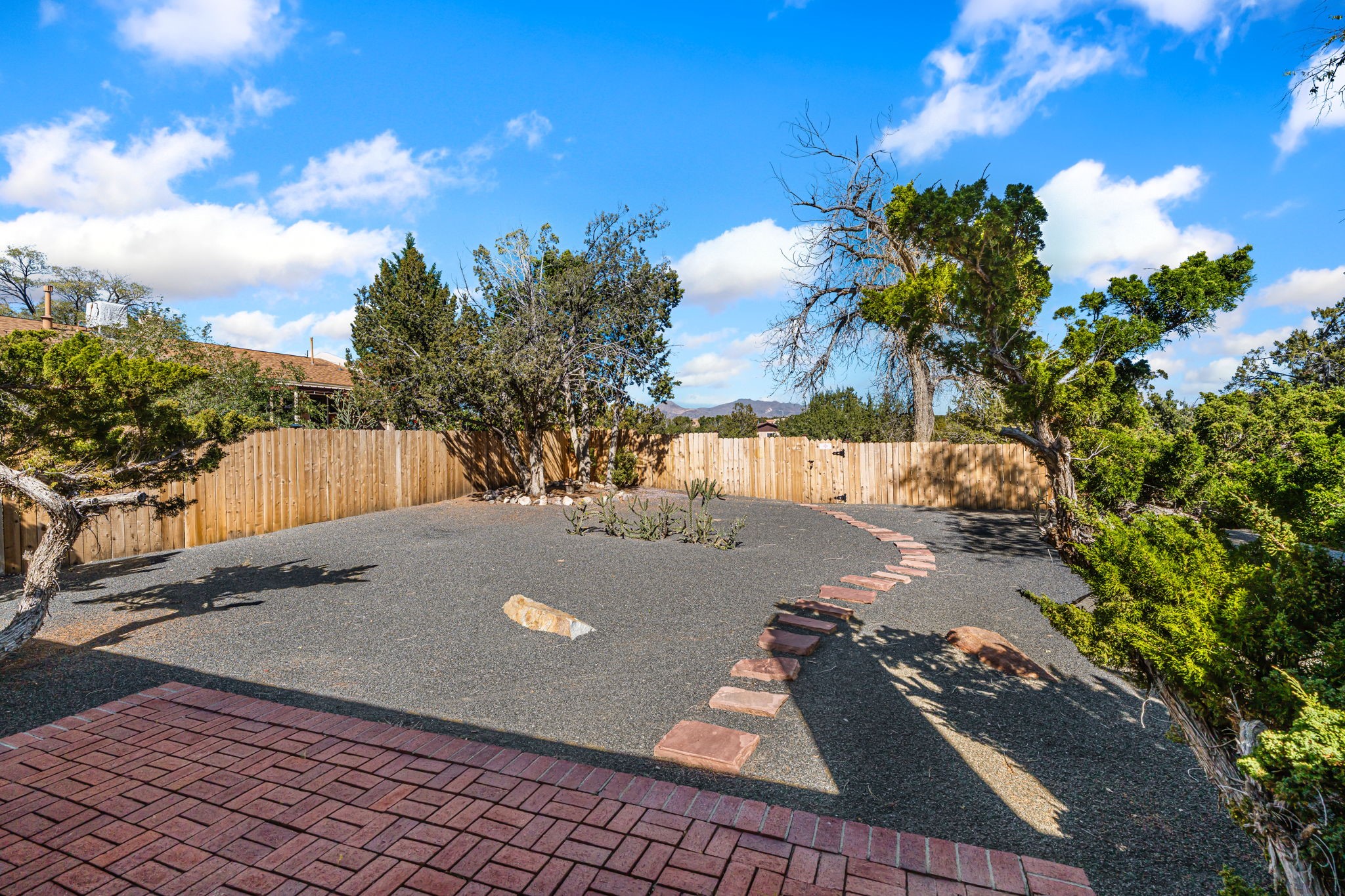 Love golfing and fishing? The Village of Cochiti Lake is perfect for you with one of Northern New Mexico's best public golf courses and fantastic fishing. This impeccably maintained Cochiti Lake home is close to both with lovely landscaping and backyard views of the Jemez Mountains. Featuring two-bedrooms, two baths, and a two-car garage, this lovely home is on a quiet cul-de-sac with an inviting open plan living and dining area and gas log fireplace. Flooring throughout the home is lovely and well-maintained Saltillo tile and the kitchen is updated with granite countertops and updated appliances. The living room opens onto an easy-to-maintain back yard that is fenced. Pride of ownership is evident throughout the home.