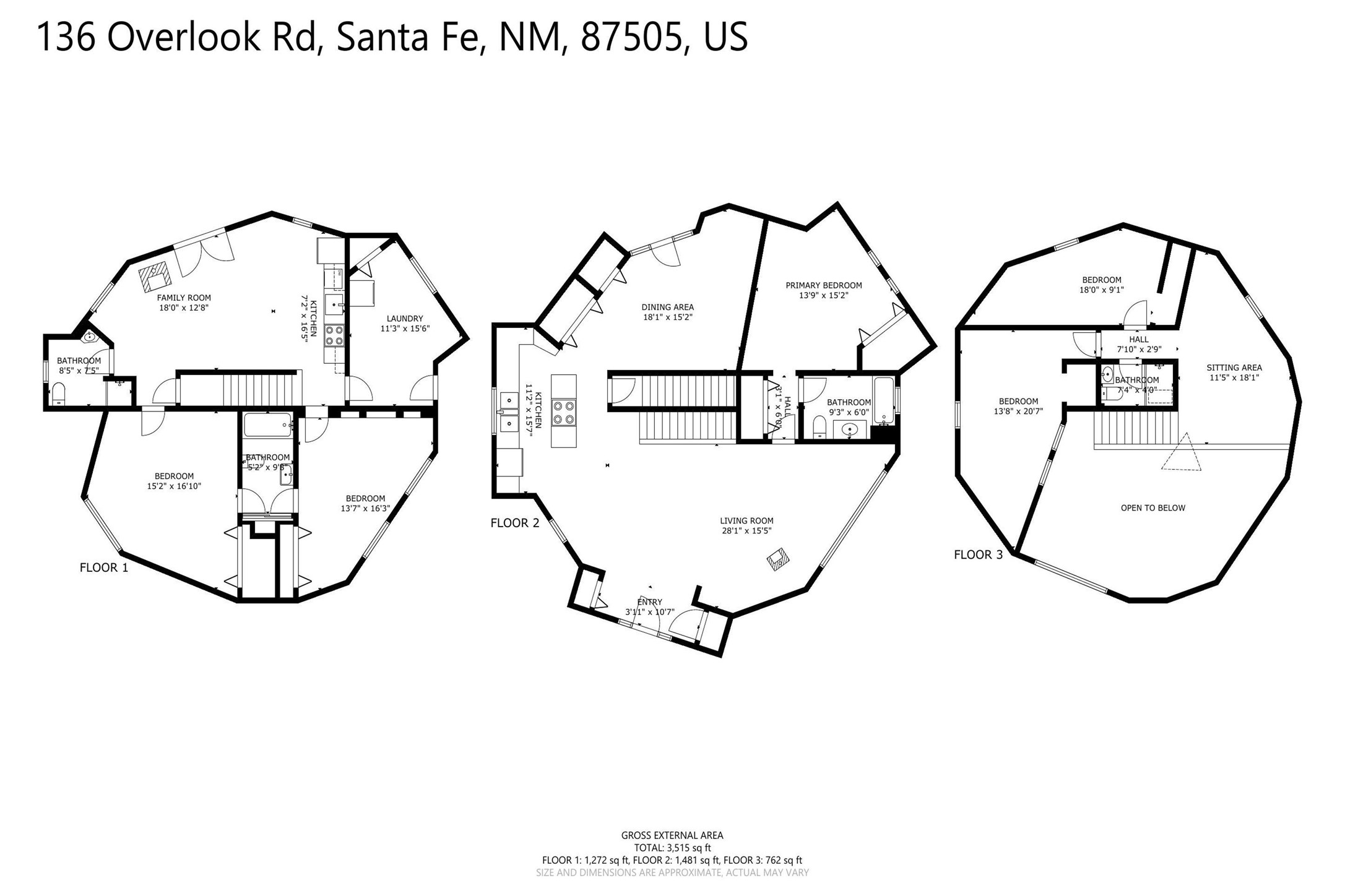 This mountain residence is located in a splendid setting on 2.7 forested acres in the tall pines off Old Santa Fe Trail. The three-level home offers a main house and guest house under the same roof and connected by a stairway internally, so it can be used as a single home or house and guest house. The main level consists of the living, kitchen, and dining rooms, primary bedroom, and bathroom. There are two enjoyable decks - a very large deck off the living room and another off the dining room. The upper level has two bedrooms, a sitting area, and bathroom. The lower lever is the two-bedroom, two-bath guest house with an open-concept living/kitchen/dining area, and which also has another wonderful large deck. The outdoor living is delightful! The topography is gentle, affording a great deal of usable land. Experience a beautiful mountain lifestyle only minutes from the Plaza.
