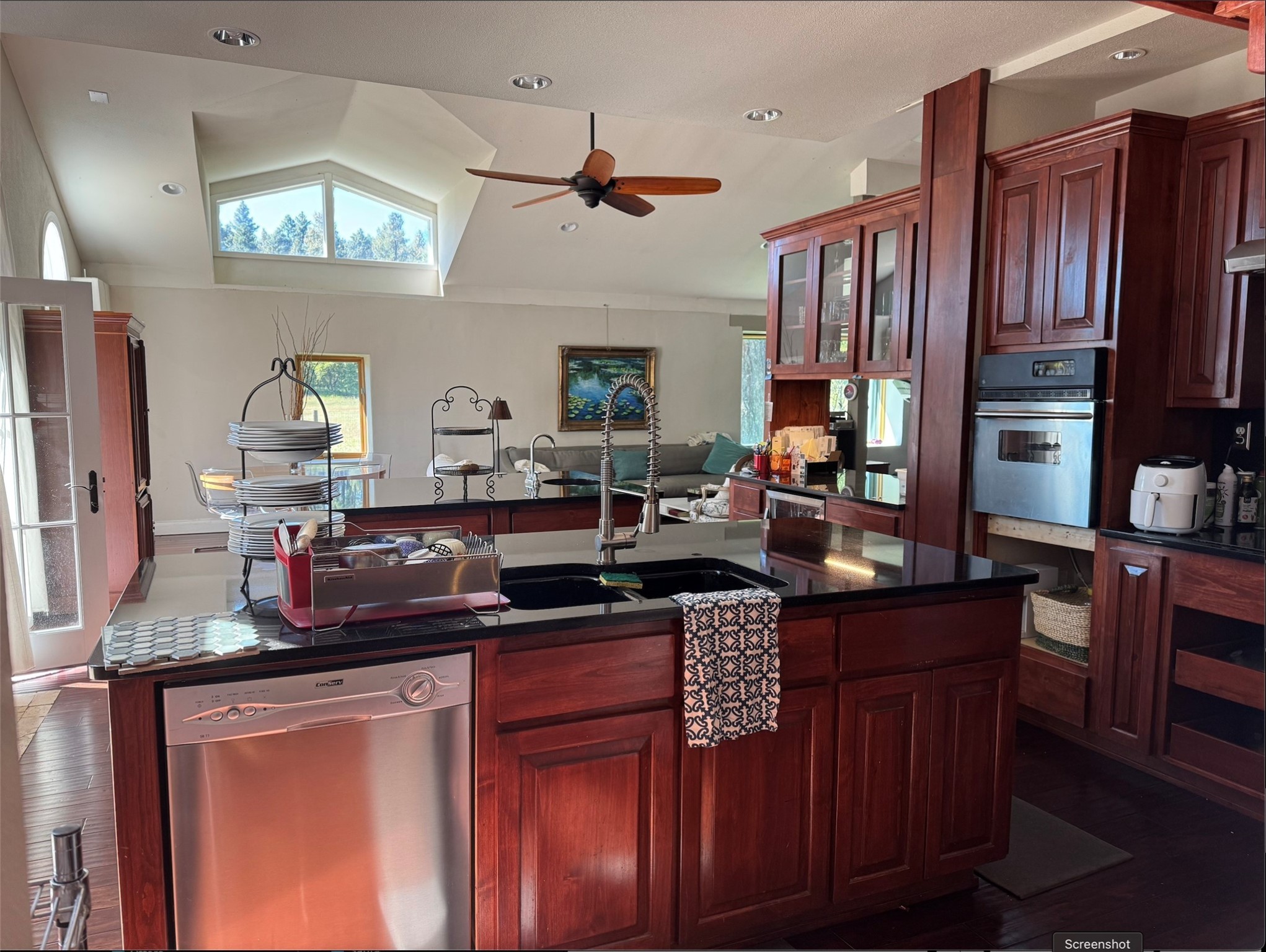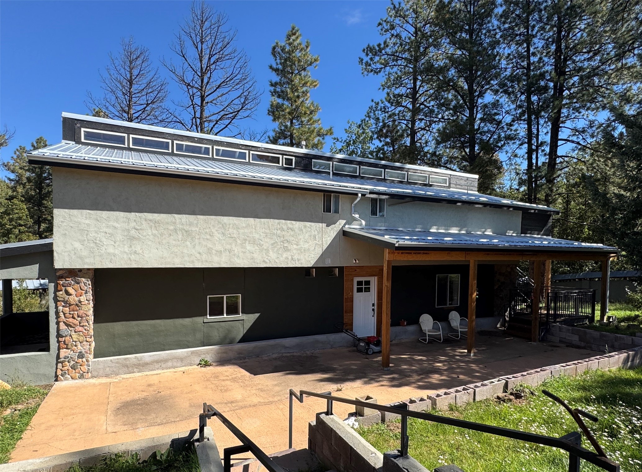 Welcome to your home in the mountains of Northern New Mexico! So many features on this large custom property! Open, vaulted living/dining, gourmet kitchen, full library with wood burning stove & balcony access, spacious first level master suite with large bath and huge walk-in closet, 2nd first-floor bedroom, flexible upstairs suite, attached two car garage with extra storage, solar system with Tesla batteries, greenhouse, PLUS Guest House with two separate two bedroom apartments! Six lovely private acres with woods and an open irrigated field! (Additional adjacent nine acres available for an additional $100,000 - ask for details!) All of this located in the much-loved Gallinas Canyon and just minutes from the El Porvenir campground in the Santa Fe National Forest where the trailhead for the hike up Hermit's Peak meets the Gallinas River!