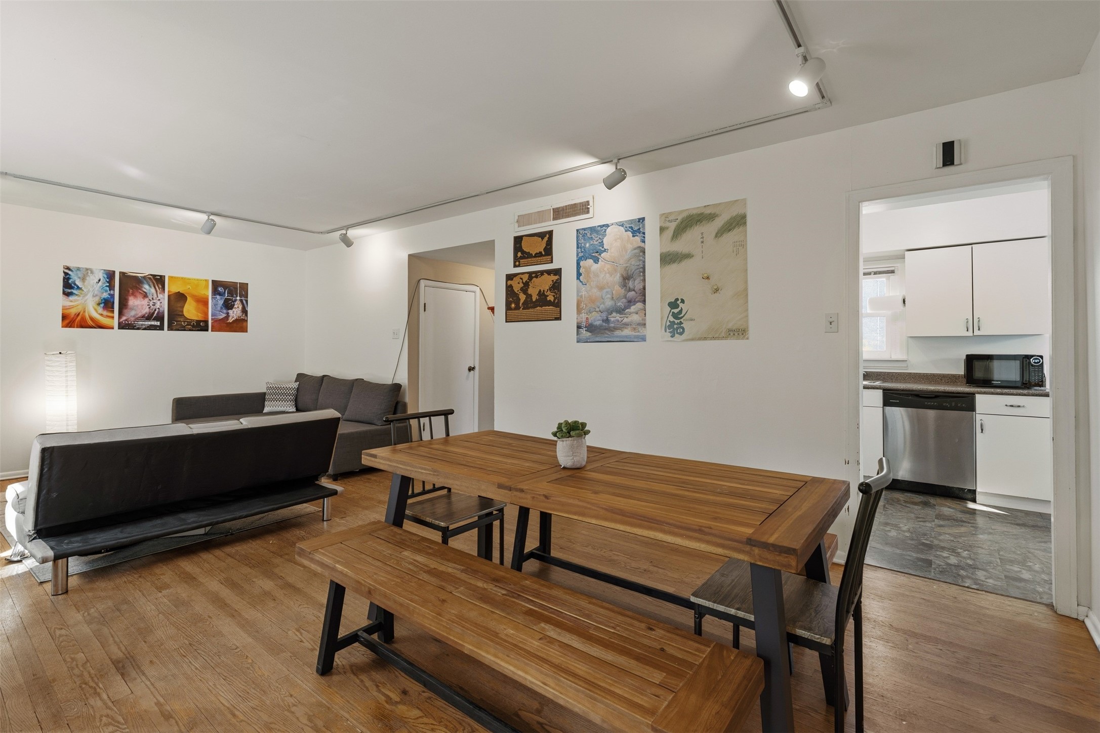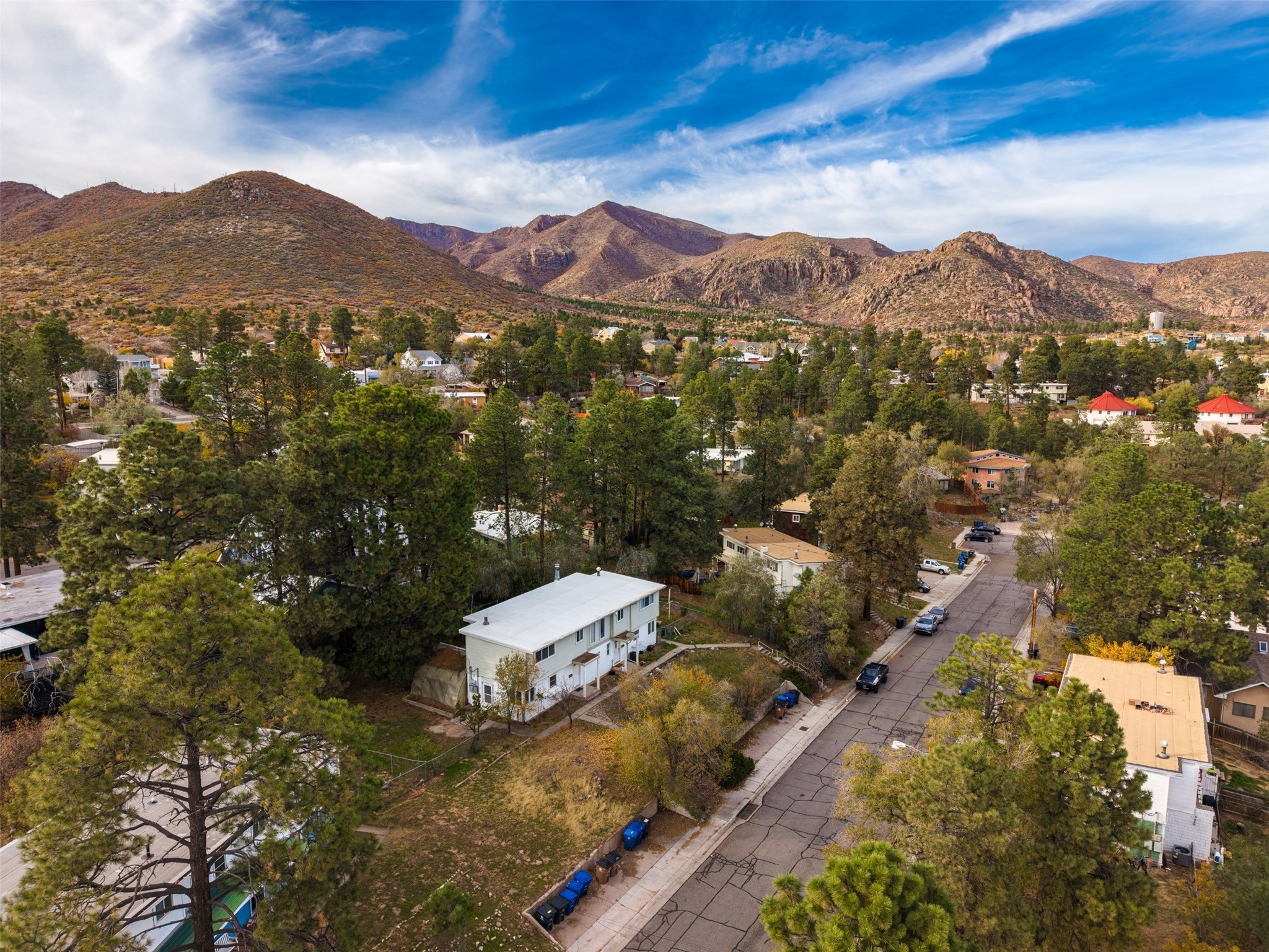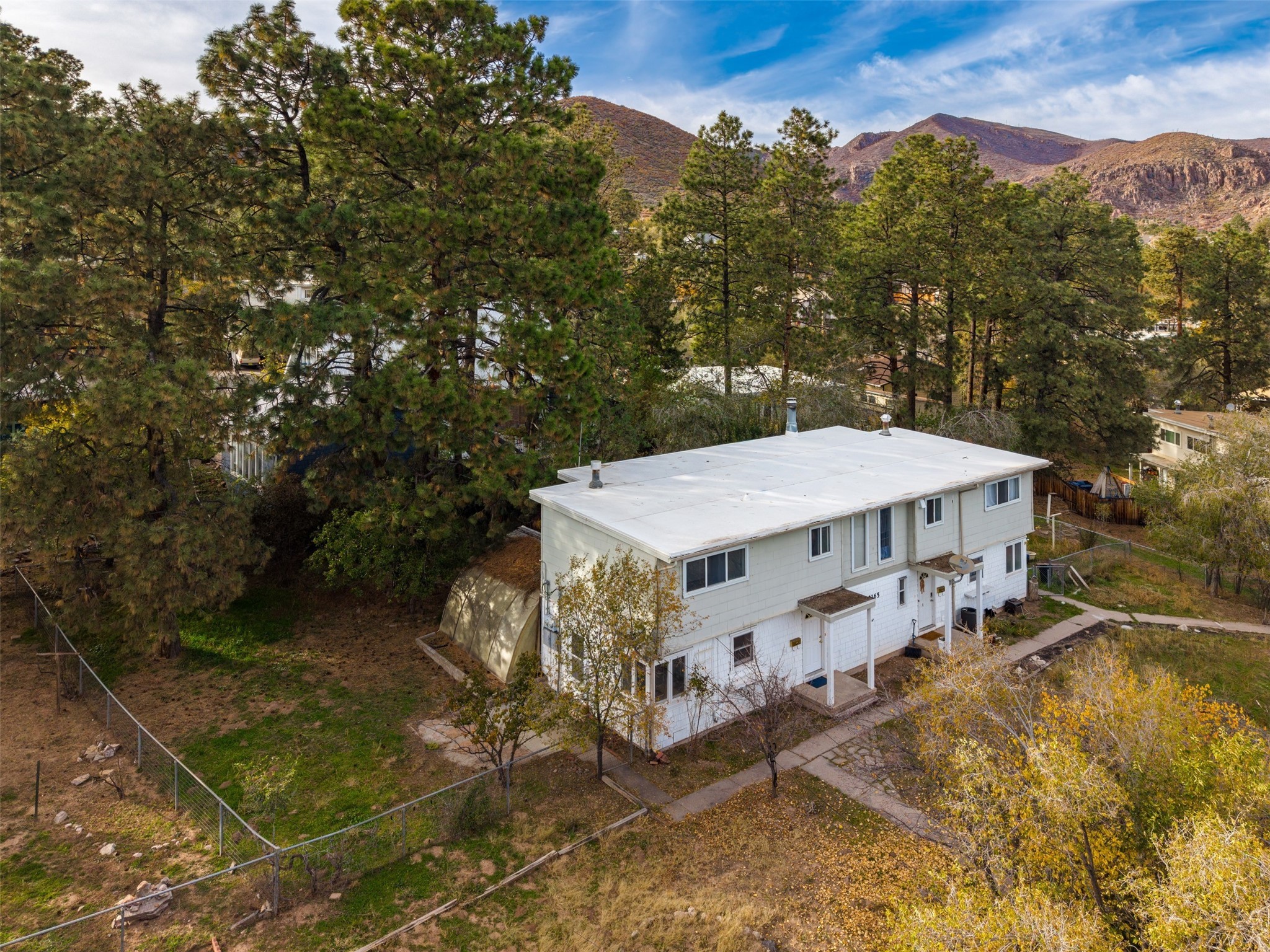 Charming North Community Condo with Expansive Yard & GreenhouseSet on a spacious corner lot in the quiet North Community neighborhood, this two-story condo offers privacy, character, and exceptional outdoor space--just 5 minutes from Los Alamos National Lab (LANL).Upstairs, you'll find three generously sized bedrooms with hardwood floors and large windows that fill the space with natural light. Two bedrooms are connected by a convenient walk-through closet, and the full bath features a clean, classic design with a pedestal sink and tub/shower combo.The main level offers a bright galley kitchen with white cabinetry, chrome hardware, and all appliances--including washer and dryer. The adjacent dining area opens to an enclosed back porch with a storage closet, while the large living room features original hardwood floors, track lighting, and access to a unique greenhouse with built-in workbench.Outdoors, the home offers a mix of privacy and open space with established landscaping, a treehouse platform, a covered patio, and a fully fenced backyard--perfect for gardening, entertaining, or simply relaxing.Located steps from Urban Park and close to hiking trails, excellent schools, and the amenities of downtown Los Alamos. Schedule your showing today!