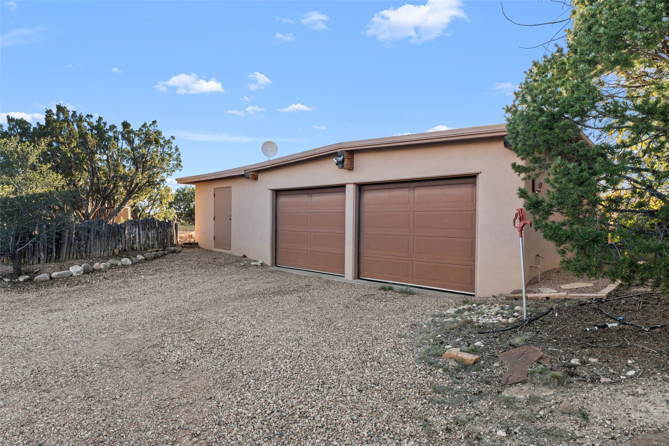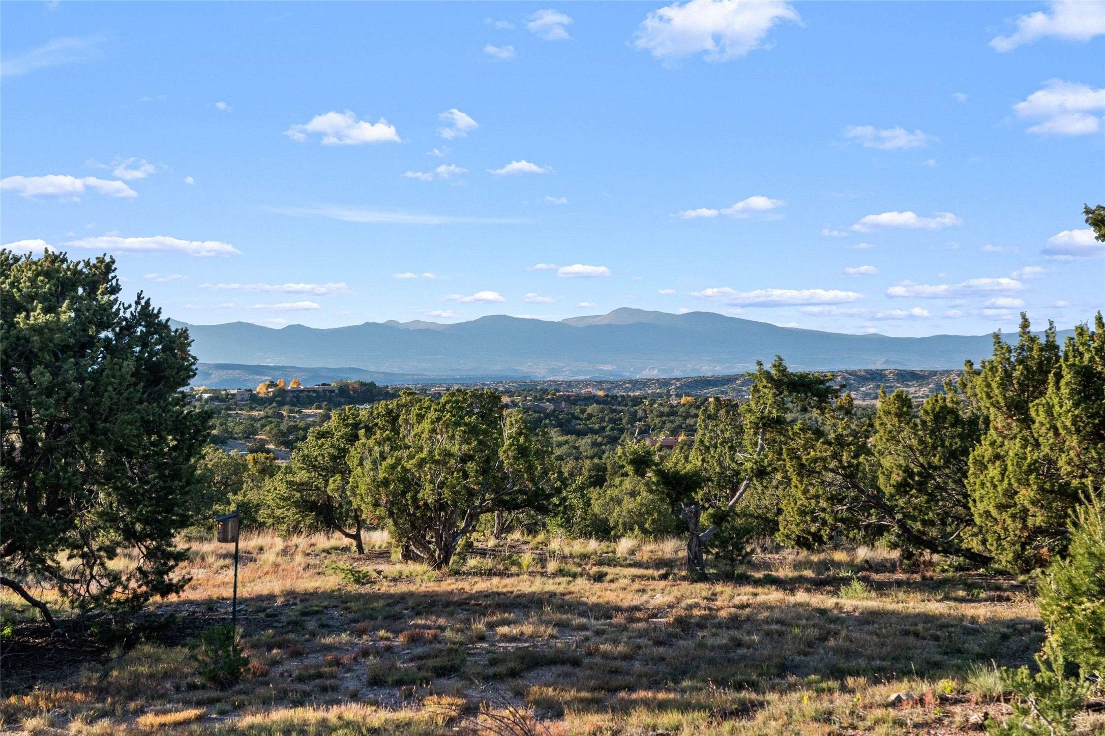 Private La Tierra custom home topping 12 Pinion and Juniper covered acres, set high to capture panoramic Jemez and Sangre de Cristo Mountain views. Experience exceptional privacy and independence just 15 minutes from downtown Santa Fe. Combining modern design with classic New Mexico craftsmanship, this unique property offers a rare balance of seclusion and easy access to Santa Fe's world-class restaurants, galleries, and culture. The main residence showcases soaring ceilings, wide-plank pine and flagstone floors, and handcrafted Saltillo tile details. Walls of glass bathe the interior in natural light and frame sweeping vistas in every direction, creating an atmosphere of calm and inspiration. Currently configured as a three-bedroom home, the flexible layout includes a spacious home office easily convertible to a fourth bedroom, a second office or studio and a dedicated exercise room, a stunning west-facing sunroom perfect for year-round enjoyment of the sunset skies, a luxurious owner's suite with kiva fireplace, high ceilings, and extraordinary Sangre views. Outdoors, a Japanese-inspired courtyard offers serenity and shade. Keep up to four horses with ample space to add a barn or equestrian facilities. Birdwatching at it's best, from inside or outside. Recent Upgrades & Highlights include New stucco (2024) and new flat roof (2025) with transferrable 12-year warranty, Solar electricity system (9 kW ground-mounted, installed 2022 by Positive Energy Solar), Standing-seam pitched roof with high decked ceilings, Forced air & mini-split A/C for year-round comfort, New KitchenAid & Bosch appliances, Silestone countertops, Pre-inspected and lovingly maintained, Septic system sized for four bedrooms. This La Tierra retreat offers a lifestyle of quiet sophistication--a private mountain-view sanctuary minutes from the heart of Santa Fe. Watch the video tour for the full story.