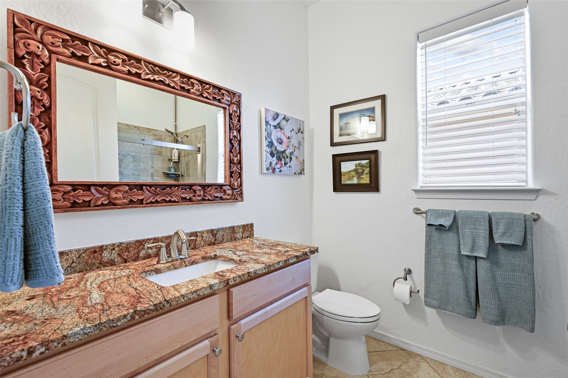 Step Inside Your Dream Home! Welcome to this beautifully designed, single-level retreat featuring 3 spacious bedrooms, a den/office and 2 full bathrooms. Thoughful design with the comfort of refrigerated air conditioning and the stunning scale provided by 10-ft ceilings and 8-ft doors throughout. An open-concept floor plan flows effortlessly from the living room to the kitchen and dining areas. Fall in love with the gourmet kitchen, a true chef's haven! It's equipped with a gas cooktop, two electric ovens, and a brilliantly designed 42-inch island that even features a convenient, elevated dishwasher. A consistent flow of porcelain tile flooring ties the entire home together, offering both beauty and easy upkeep. A Retreat for Everyone. You'll find the tranquil primary bedroom suite on one end of the home, while the comfortable guest wing is tucked away on the other. A serene enclosed sunroom, complete with windows and screening, features a built-in barbecue grill! An ideal place to unwind while enjoying views of the walled yard. The same luxurious granite countertops you see inside right into the outdoor kitchen area for a sophisticated, continuous look. Outdoor Oasis and Community Perks. The backyard features a custom pergola--the perfect spot to enjoy the beautiful Southwest Garden. And the community adds value with a great jogging path just steps away! This home truly brings together style, comfort, and functionality.