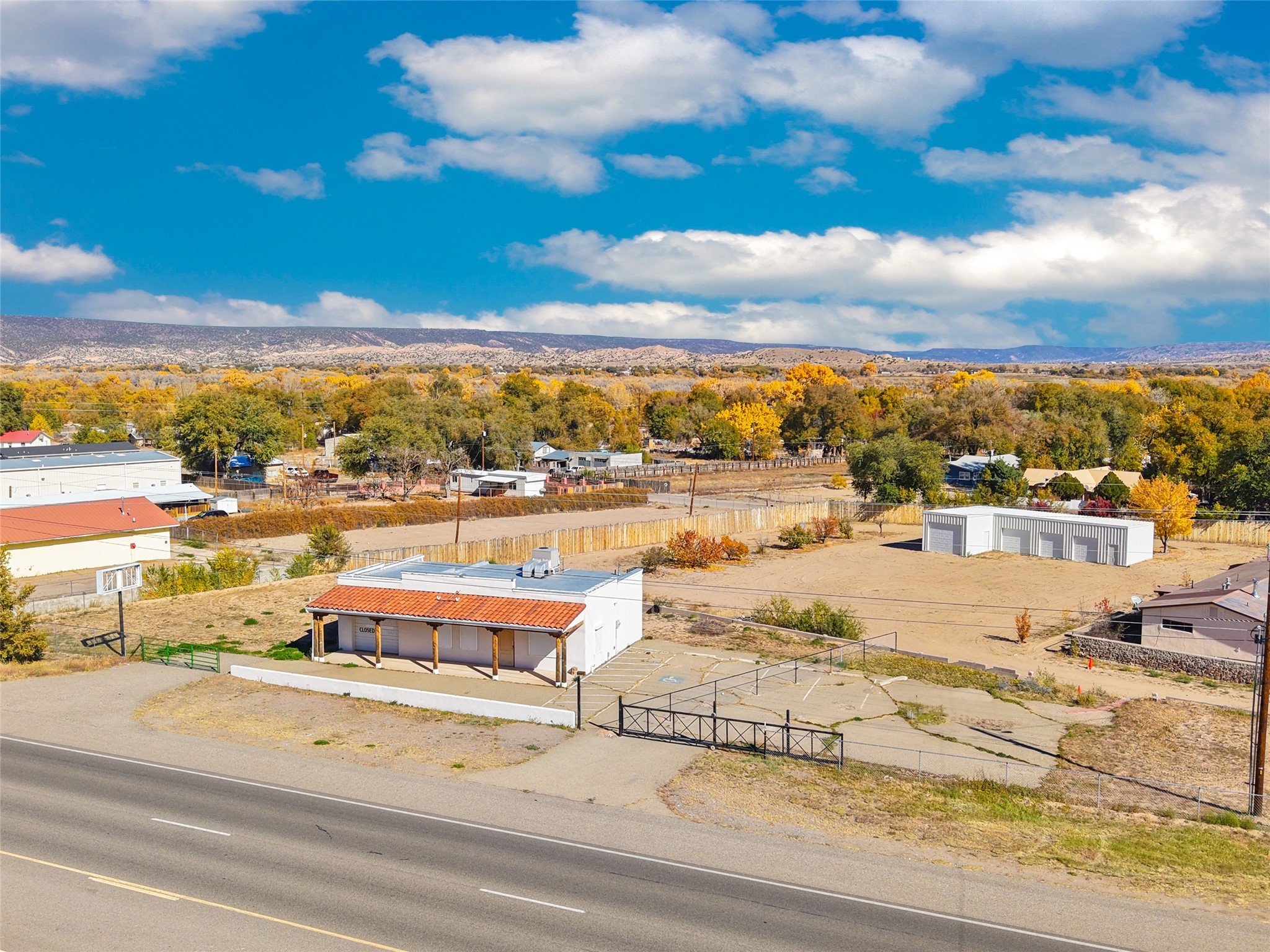 Prime opportunity with excellent visibility along Highway 84/285, just north of Espaola! This 1.22-acre commercial property offers both functionality and potential, featuring a 926 SF main building with an attached garage and roll-up door, in-suite restroom, rolling automatic window shutters, and a fenced parking lot--plus an additional garage and warehouse/storage space located toward the back of the property. With high-traffic frontage and easy highway access, this site is ideal for a variety of business uses, including retail and light commercial. The layout provides ample room for parking, equipment, or future expansion.Whether you're looking to establish a new business location or expand your current operations, this well-positioned commercial property combines visibility, accessibility, and flexibility in one excellent Northern New Mexico location. Bonus Opportunity: The residential property next door is also for sale (MLS #202504907), offering potential for a live/work setup or an expansion of your business footprint. New Septic System installed Summer 2025.