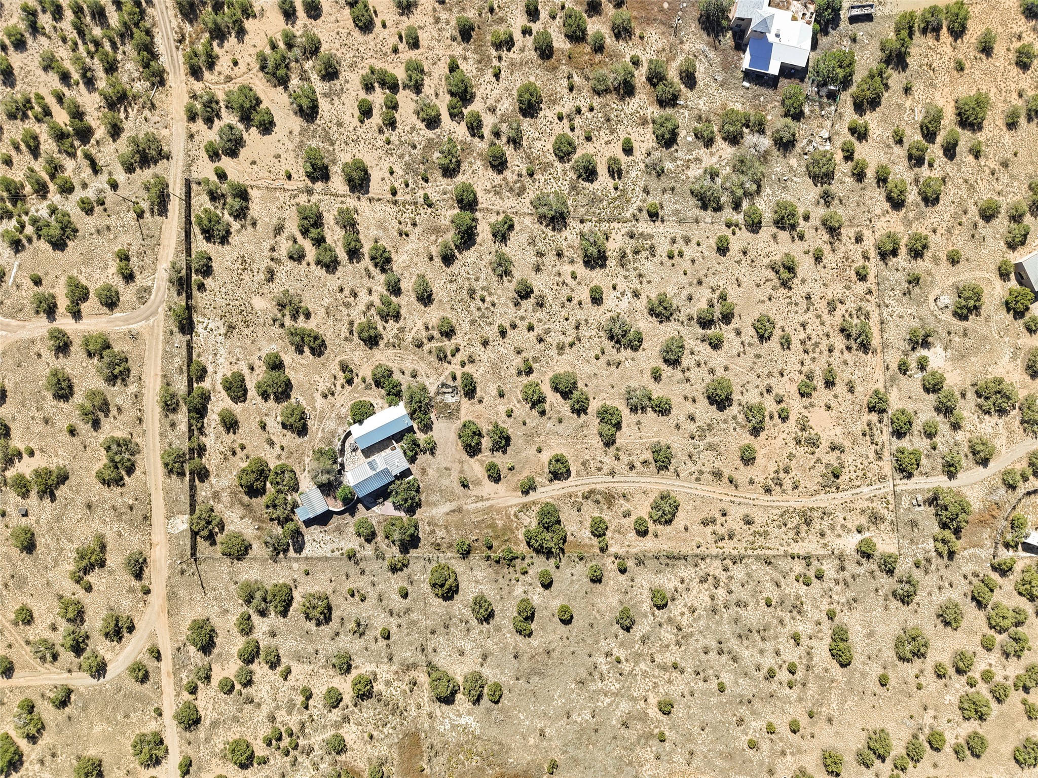 Welcome to this remarkable property that exudes the rustic charm of the old west and features the adobe walls that distinguishes true Santa Fe from the rest! Settled on just under a 10 acre naturally landscaped parcel of land with dreamy mountain views and populated with Pinon and Juniper Trees throughout, this property is the one you've been waiting for. The one bedroom one bath private main home boasts an open concept floor plan and 1,500+/- heated square feet. In addition to the main home there are three separate studios for your use and imagination! A 1,000 +/- sqft adobe with one bath would be great for your guests. The 985+/- sqft "music studio" with one bath attracts great natural light and contains a loft up above the main level. The cute 300 +/- detached studio is just off of the walled courtyard and next to the outdoor hot tub. Another great feature and added benefit to this property is the designated RV parking and hookup area! Come and own your own unique perspective of the gorgeous sunrise and sunset views that Santa Fe is known for from this one of a kind property. The property is fully-fenced and is about a 20 minute drive from the Santa Fe city limits.