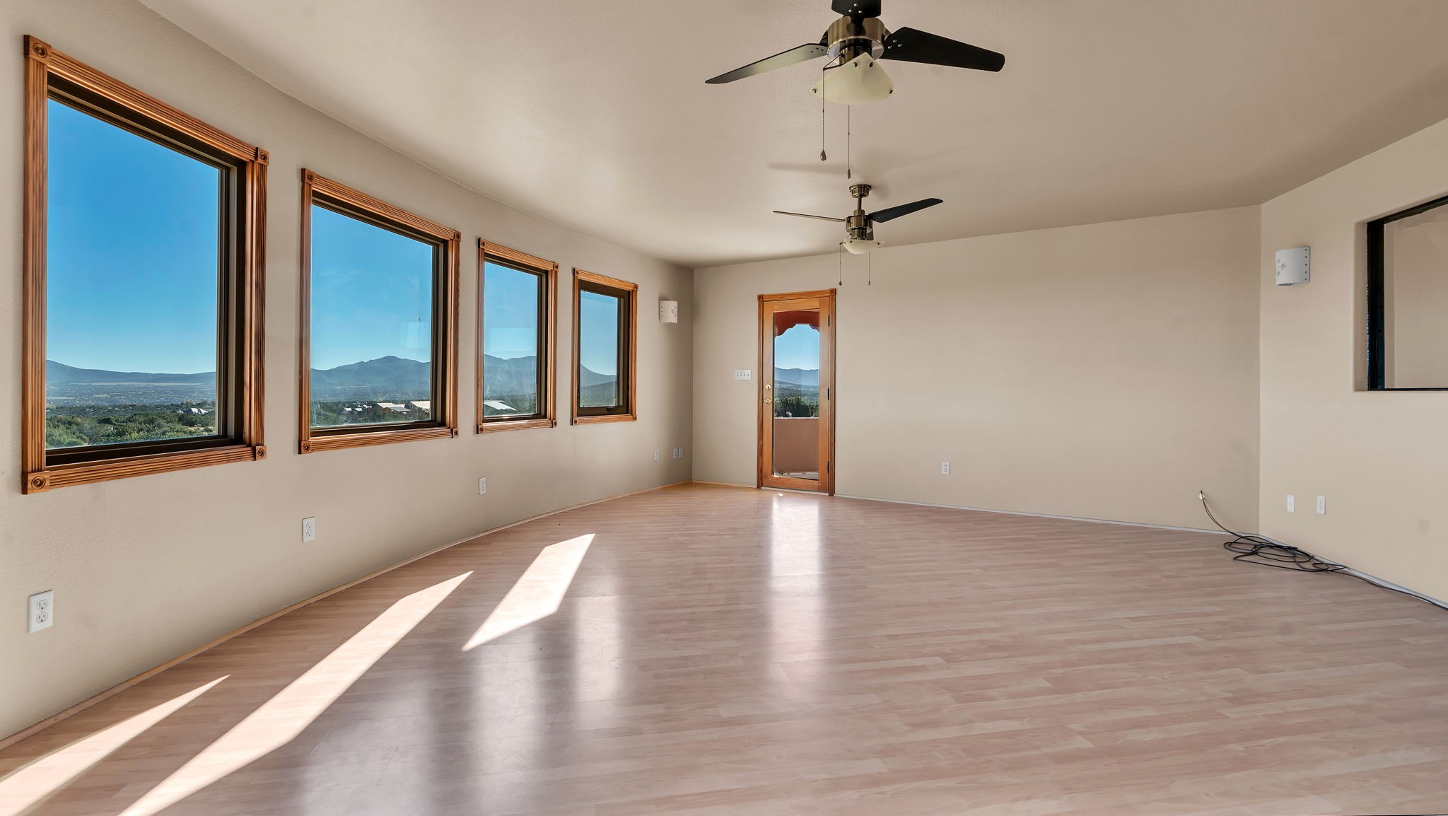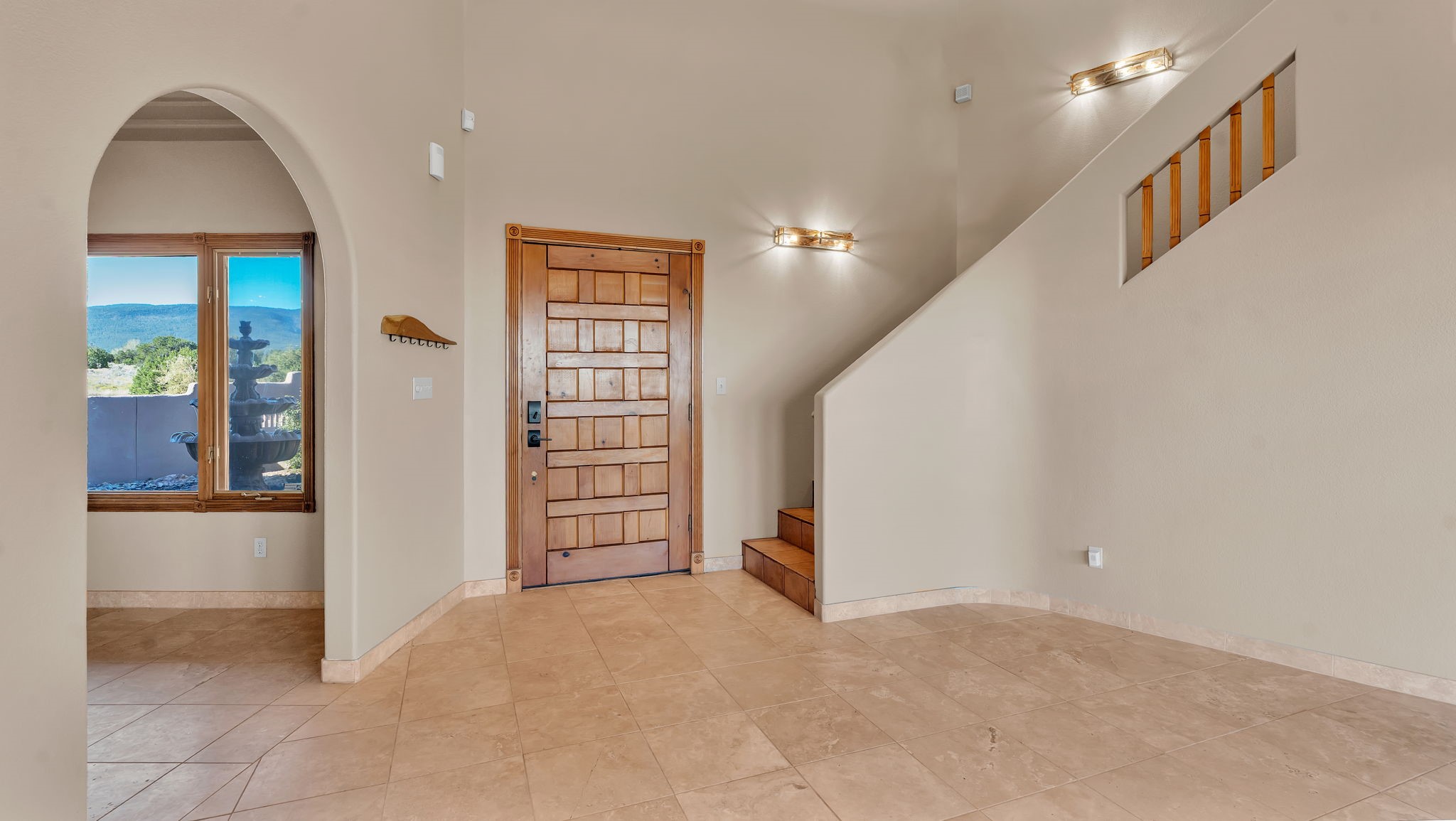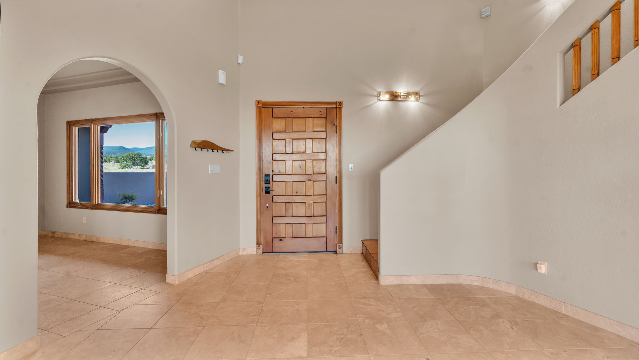 Welcome to 5 La Aguapa, Sandia Park, NM Experience luxury rural living in San Pedro Creek Estates! This custom 4,000+ sq ft home on 10.57 acres offers breathtaking views of five mountain ranges. Featuring 4 bedrooms, 4 baths, and two primary suites, this home combines comfort and elegance. The great room with soaring ceilings, a gas log fireplace, and panoramic views. The gourmet kitchen includes granite countertops, a built-in gas stove, pantry, and access to a workshop and three-car garage. Enjoy radiant heat, travertine tile flooring, a large utility room, and a walled backyard with access to Golden Open Space Los Duendes Trail. This is luxury rural living within reach.Situated on 10.57 acres in the prestigious San Pedro Creek Estates, this impressive 4,000+ square foot home offers refined comfort, privacy, and spectacular views of five separate mountain ranges. Featuring 4 bedroomsincluding two primary suites and 4 bathrooms, this thoughtfully designed home blends elegance with everyday functionality. The spacious great room showcases a gas log fireplace and sweeping views for miles, creating a warm and inviting central gathering space. The downstairs primary suite features a large walk-in closet and a generously sized bathroom, while the upstairs primary suite includes a private balcony the perfect spot to take in the serene landscape. Enjoy cooking in the large kitchen, complete with granite countertops, a built-in gas stove, ample cabinetry, a nice-sized pantry, and access to a spacious workshop and three-car garage perfect for hobbies, projects, or extra storage. The home is equipped with efficient radiant heat and features travertine tile throughout the downstairs, adding both beauty and functionality. A spacious utility room includes a sink and plenty of storage. Outside, you'll find a large walled-in backyard, ideal for relaxing, entertaining, or pets. The property also includes private gate access (key fob provided) to the Golden Open Space Los Duendes Trail, offering opportunities for hiking, biking, and horseback riding. Ideally located, this home is just 32 miles from Albuquerque, offering all the amenities of city living, 21 miles from Madrid, known for its artistic charm, and 50 miles from Santa Fe, celebrated for its rich culture and dining.POVEvery window frames a different view five mountain ranges that change colors with the seasons. It's peaceful, quiet, and filled with natural light. Mornings start with coffee on the balcony, and evenings end by the fire watching the sunset roll across the hills. There's room to breathe, create, and enjoy life at a slower pace yet you're still close enough to everything you need. It's truly the best of both worlds.