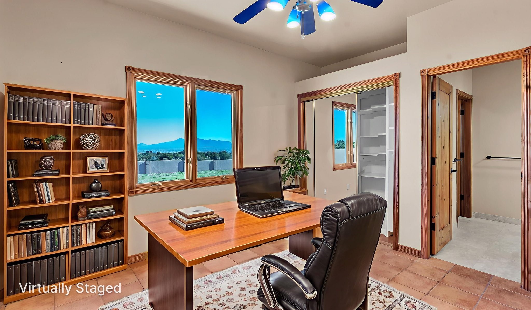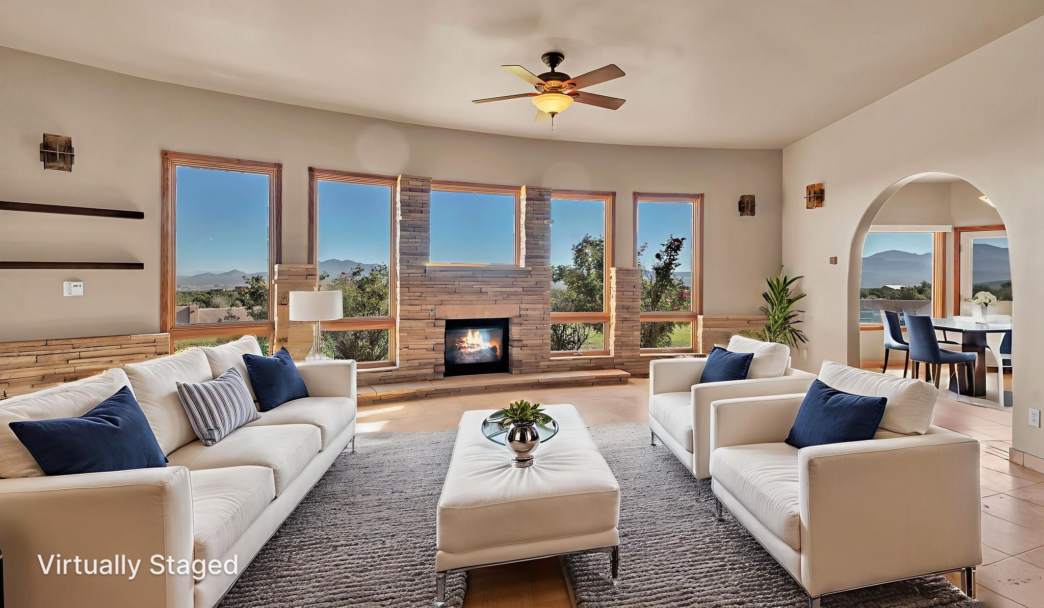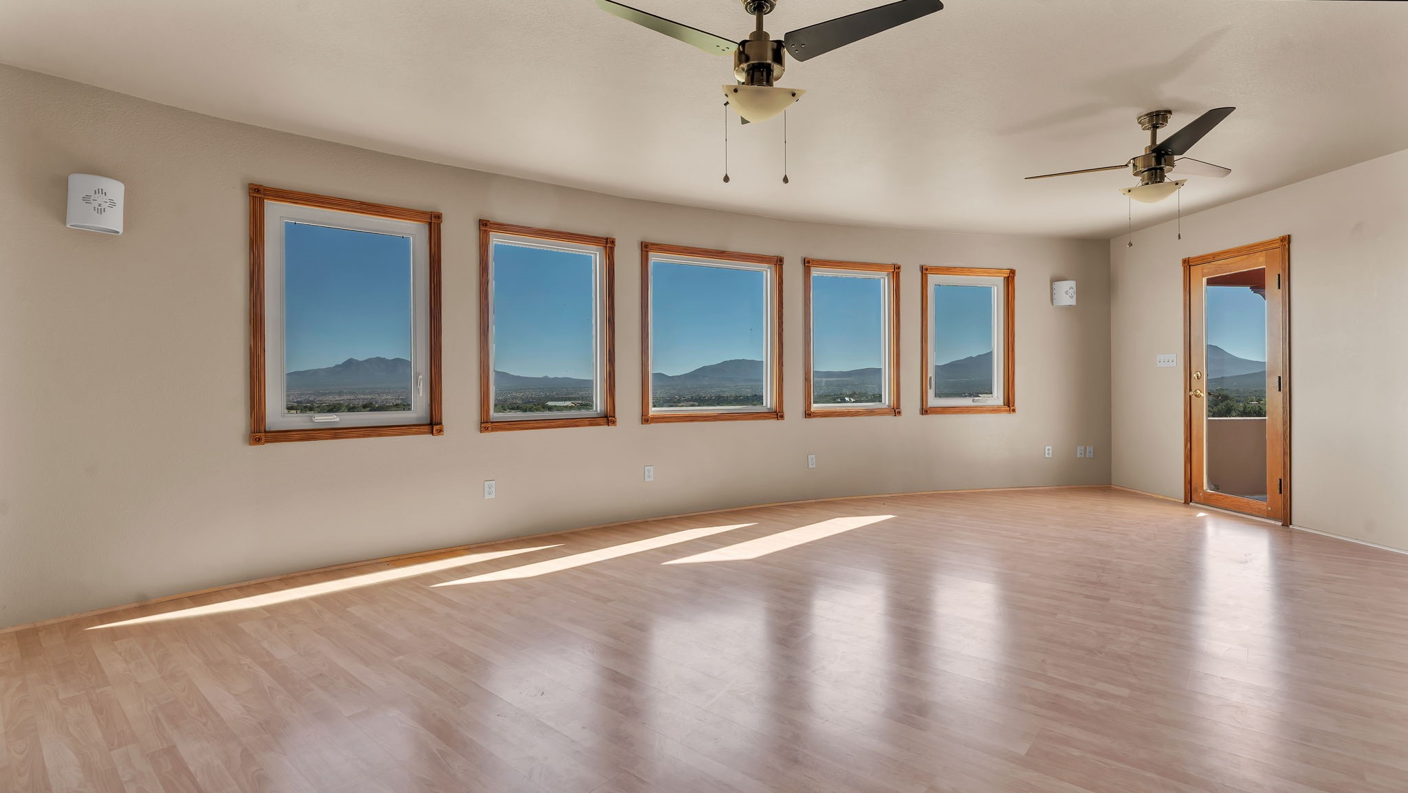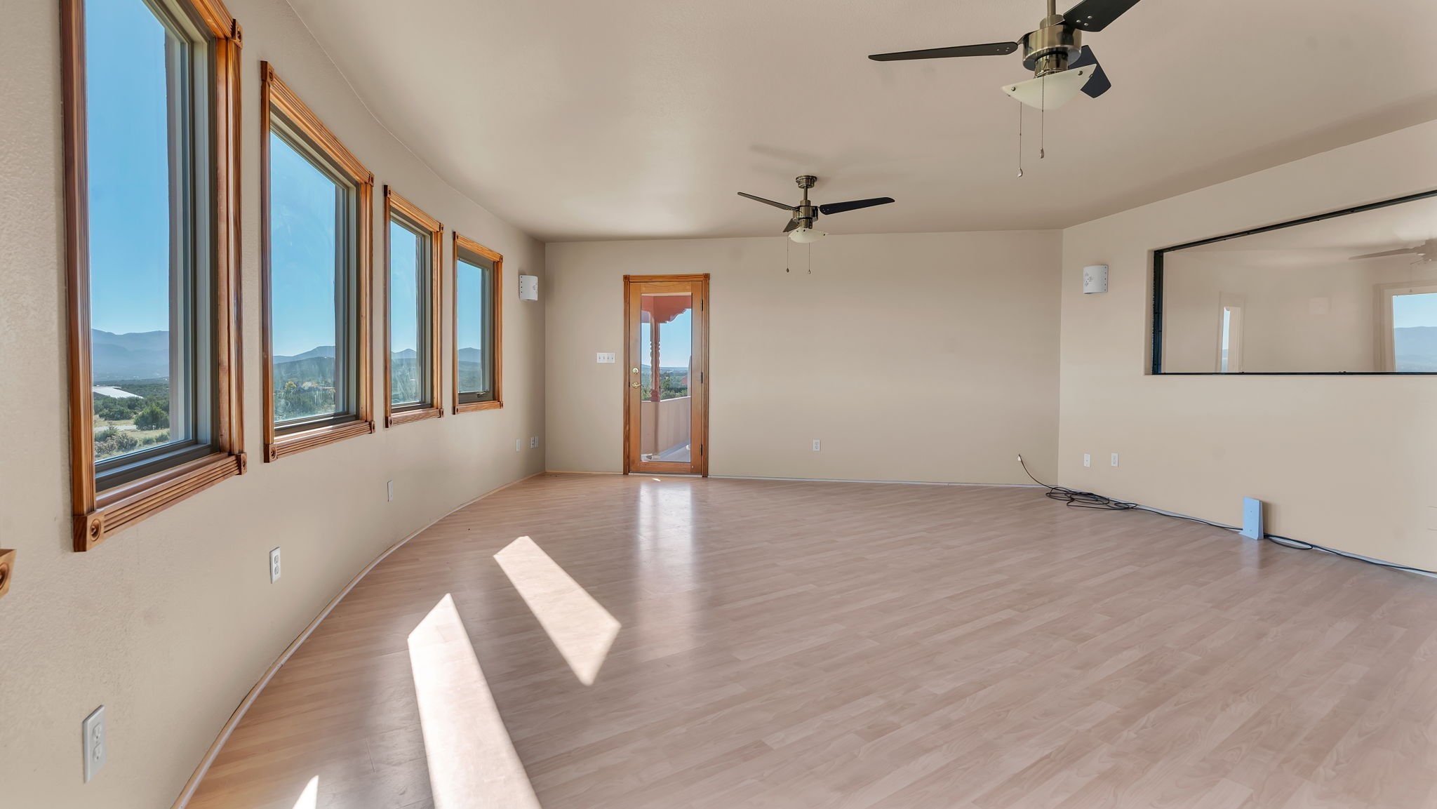 Welcome to 5 La Aguapa, Sandia Park, NM Experience luxury rural living in San Pedro Creek Estates! This custom 4,000+ sq ft home on 10.57 acres offers breathtaking views of five mountain ranges. Featuring 4 bedrooms, 4 baths, and two primary suites, this home combines comfort and elegance. The great room with soaring ceilings, a gas log fireplace, and panoramic views. The gourmet kitchen includes granite countertops, a built-in gas stove, pantry, and access to a workshop and three-car garage. Enjoy radiant heat, travertine tile flooring, a large utility room, and a walled backyard with access to Golden Open Space Los Duendes Trail. This is luxury rural living within reach.Situated on 10.57 acres in the prestigious San Pedro Creek Estates, this impressive 4,000+ square foot home offers refined comfort, privacy, and spectacular views of five separate mountain ranges. Featuring 4 bedroomsincluding two primary suites and 4 bathrooms, this thoughtfully designed home blends elegance with everyday functionality. The spacious great room showcases a gas log fireplace and sweeping views for miles, creating a warm and inviting central gathering space. The downstairs primary suite features a large walk-in closet and a generously sized bathroom, while the upstairs primary suite includes a private balcony the perfect spot to take in the serene landscape. Enjoy cooking in the large kitchen, complete with granite countertops, a built-in gas stove, ample cabinetry, a nice-sized pantry, and access to a spacious workshop and three-car garage perfect for hobbies, projects, or extra storage. The home is equipped with efficient radiant heat and features travertine tile throughout the downstairs, adding both beauty and functionality. A spacious utility room includes a sink and plenty of storage. Outside, you'll find a large walled-in backyard, ideal for relaxing, entertaining, or pets. The property also includes private gate access (key fob provided) to the Golden Open Space Los Duendes Trail, offering opportunities for hiking, biking, and horseback riding. Ideally located, this home is just 32 miles from Albuquerque, offering all the amenities of city living, 21 miles from Madrid, known for its artistic charm, and 50 miles from Santa Fe, celebrated for its rich culture and dining.POVEvery window frames a different view five mountain ranges that change colors with the seasons. It's peaceful, quiet, and filled with natural light. Mornings start with coffee on the balcony, and evenings end by the fire watching the sunset roll across the hills. There's room to breathe, create, and enjoy life at a slower pace yet you're still close enough to everything you need. It's truly the best of both worlds.