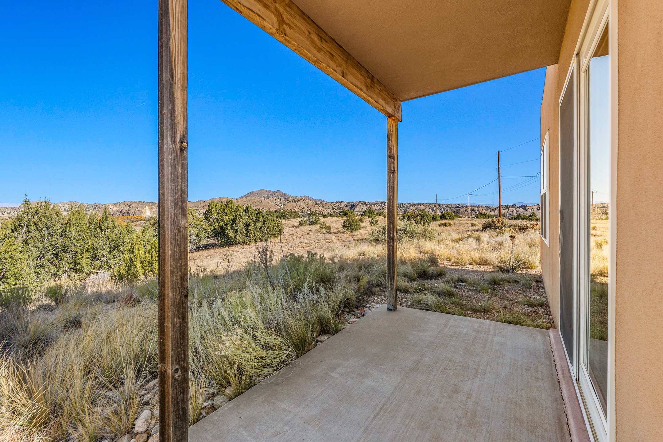 Thoughtfully designed small house on almost 5 acres. This 562 square foot, studio style home proves the adage that good things come in small packages. On a flat hilltop above Goldmine road, this home takes in views of Cerrillos and the Galisteo valley, as well as the Sangre de Cristo mountains. With stainless steel appliances, ample light, and stained concrete floors, the home feels more spacious than it's square footage would suggest. Designed with expansion in mind, it would be easy to add a bedroom, and the property is sold with two lots, a buyer could live in this home while building on the other lot. On septic and community water, within walking distance of Cerrillos and a short drive to Santa Fe. House has been smoked in and will need paint.