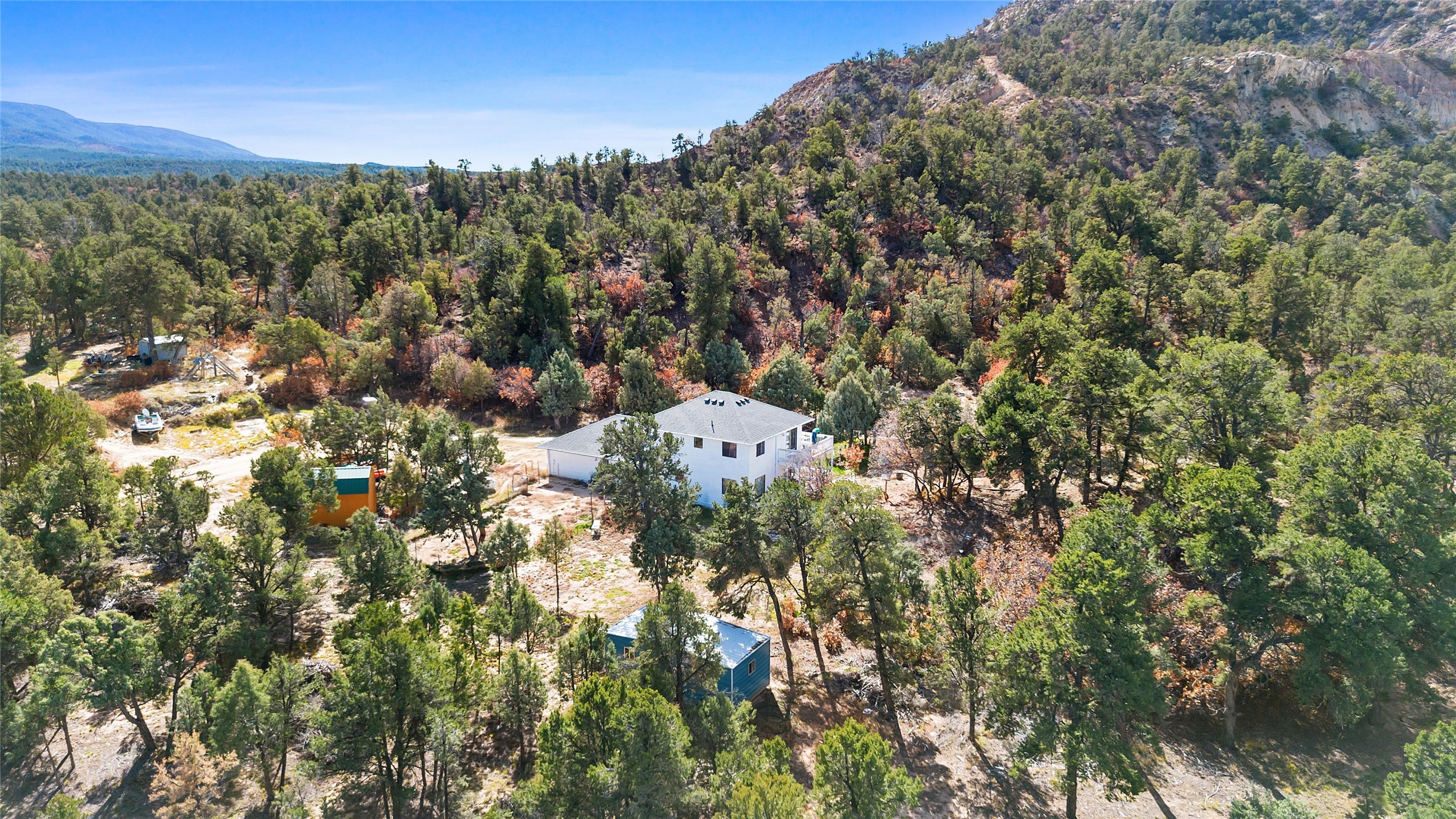 Nestled on 23 private, tree-filled acres in the mountains of Regina, this inviting 3-bedroom, 2.5-bath retreat blends seclusion, natural beauty, and authentic Northern New Mexico living. Built in 1997 and lovingly cared for, the home offers just under 1,700 sq ft of comfortable living space surrounded by towering pines, golden fall color, and peaceful wildlife. Here, the pace slows, the air feels cleaner, and the stars shine brighter than you've seen in years.Inside, enjoy radiant heat, a functional layout, and warm, cabin-style charm ideal for full-time living or a mountain getaway. The attached 2 car garage includes a dedicated craft room that could be a workshop or storage room, perfect for hobbies, tools, or gear. Outside, a 1620 workshop provides additional space for equipment, projects, or supplies, and the property includes a dedicated mobile home/stick-built hookup for guests or future expansion. With septic, propane, and two Regina water meters, the home is well-prepared for rural living convenience and flexibility.A true nature-lover's paradise, the land offers endless room to roam, hike under tall pines, explore your acreage, garden, or simply sit on the deck and enjoy quiet mornings with Elk and Deer and star-filled nights. The seller adored the wooded setting, year-round beauty, and serene lifestyle this property provides.Located just a scenic drive from Abiquiu, Cuba, Jemez recreation, and Rio Rancho amenities, this home delivers peaceful country living without sacrificing access to nearby conveniences and medical facilities.Whether you're seeking a personal escape, a family mountain base, or acreage to create your vision, this rare offering combines privacy, versatility, and the timeless charm of New Mexico's backcountry.Priced to sell, do not miss this chance to own a piece of tranquil Northern New Mexico wilderness.