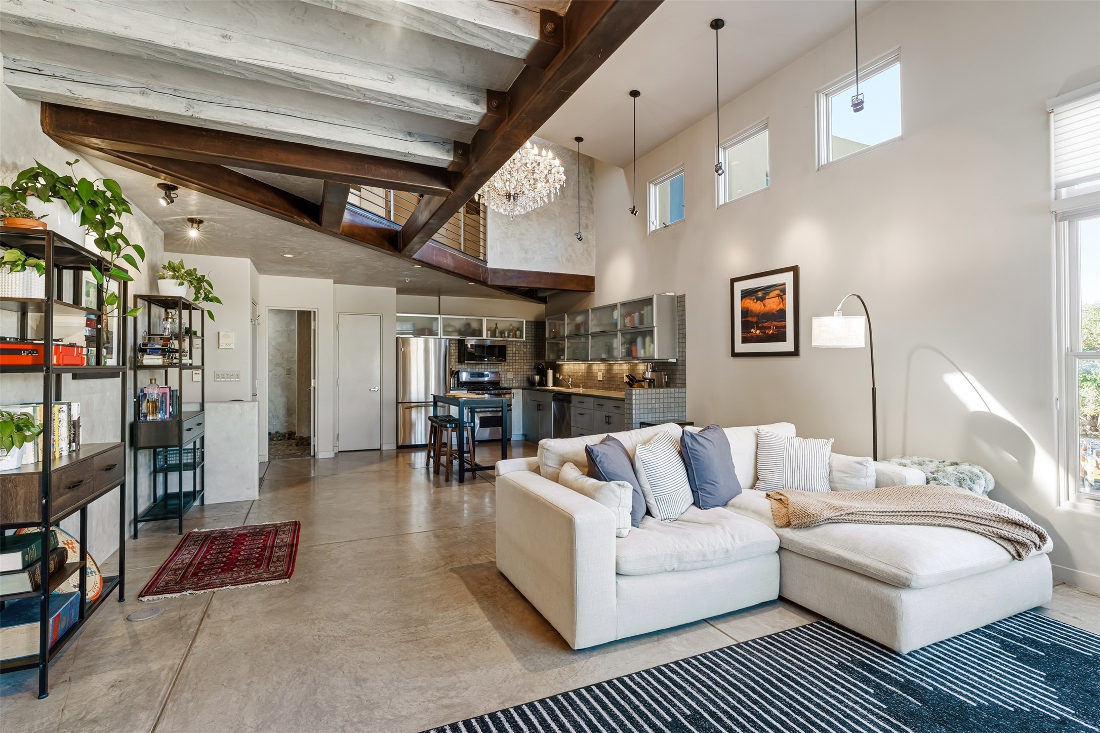 Contemporary live/work condo located in the highly sought-after South Capitol neighborhood--just a short walk to the Santa Fe Plaza and less than a mile from the Railyard District. Enjoy easy access to Whole Foods, Trader Joe's, Natural Grocers, popular restaurants, and a variety of local amenities. This two-level, second-floor residence offers 1 bedroom and 2 baths (1 full, 1 half) and is quietly tucked away at the back of the complex for added privacy. Expansive windows frame views of the Sangre de Cristo Mountains, while clerestory windows and soaring 17' ceilings fill the space with natural light. The open floor plan features a modern kitchen, sleek concrete floors with in-floor radiant heat, and a brand new evaporative cooler. Step out from the living area onto a spacious deck to enjoy outdoor living and mountain views. Upstairs, the lofted bedroom offers generous closet space, a bath with a steam shower, and stackable laundry. Don't miss this unique opportunity to own a stylish and light-filled home in one of Santa Fe's most desirable neighborhoods.
