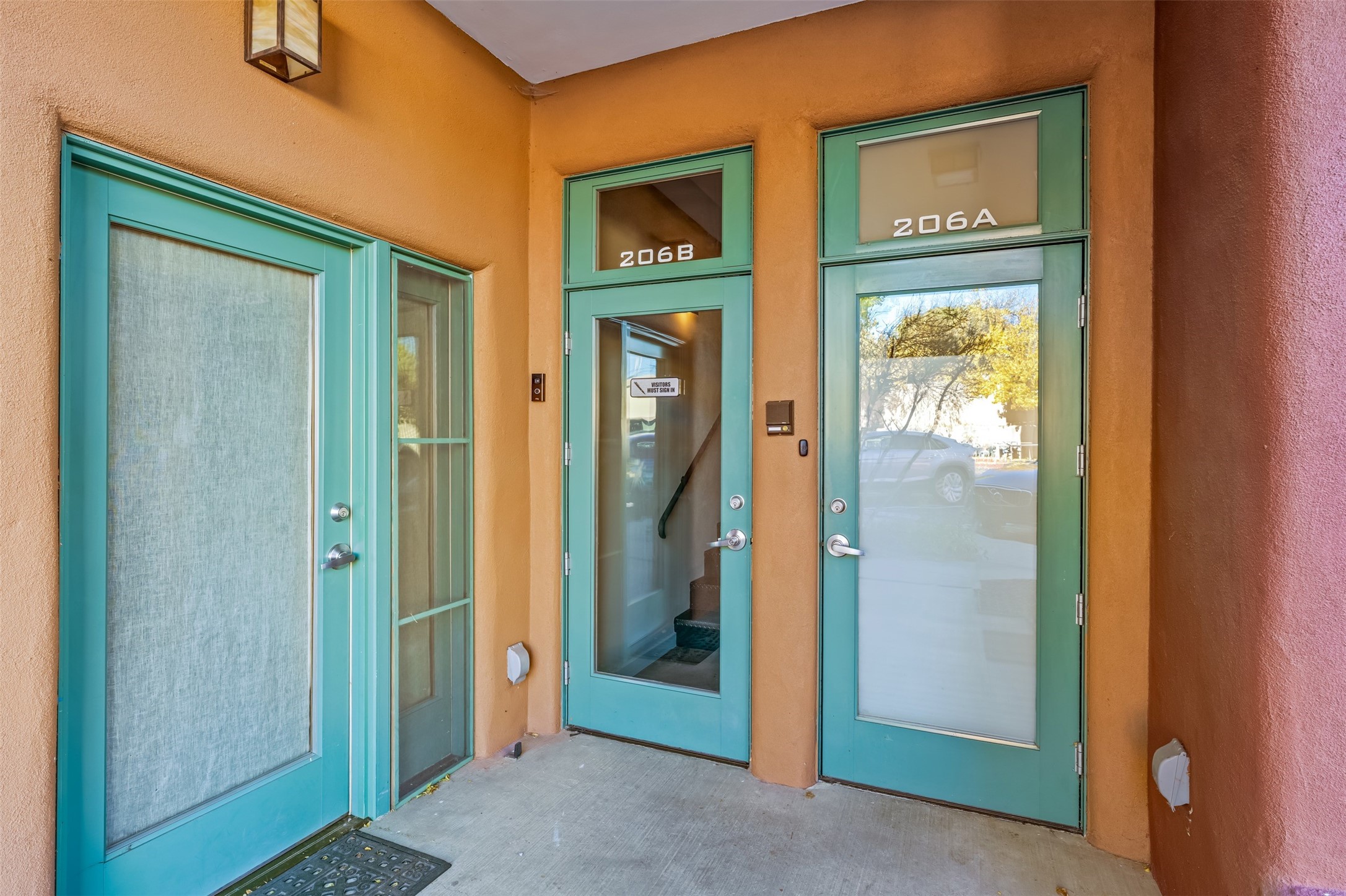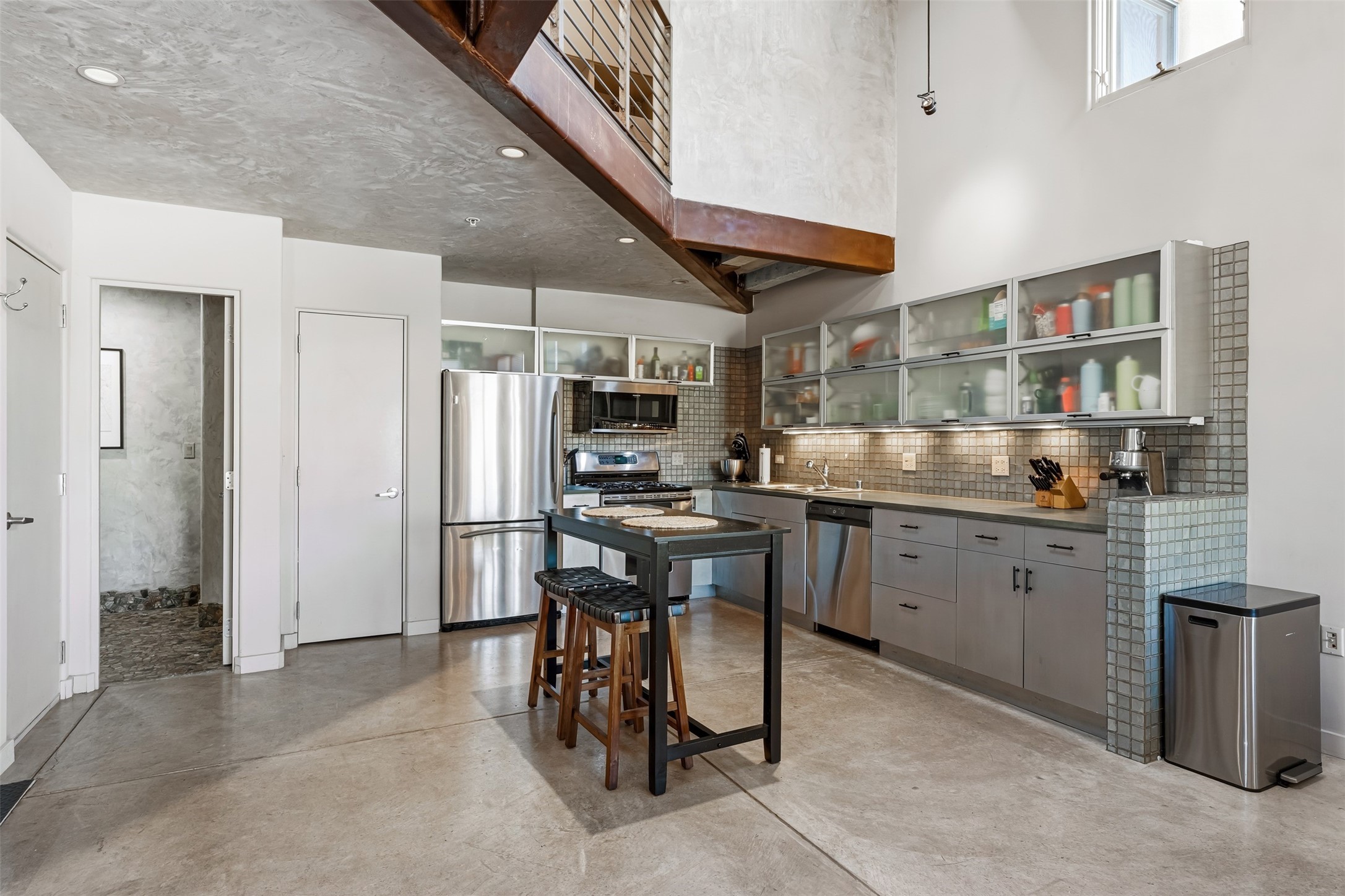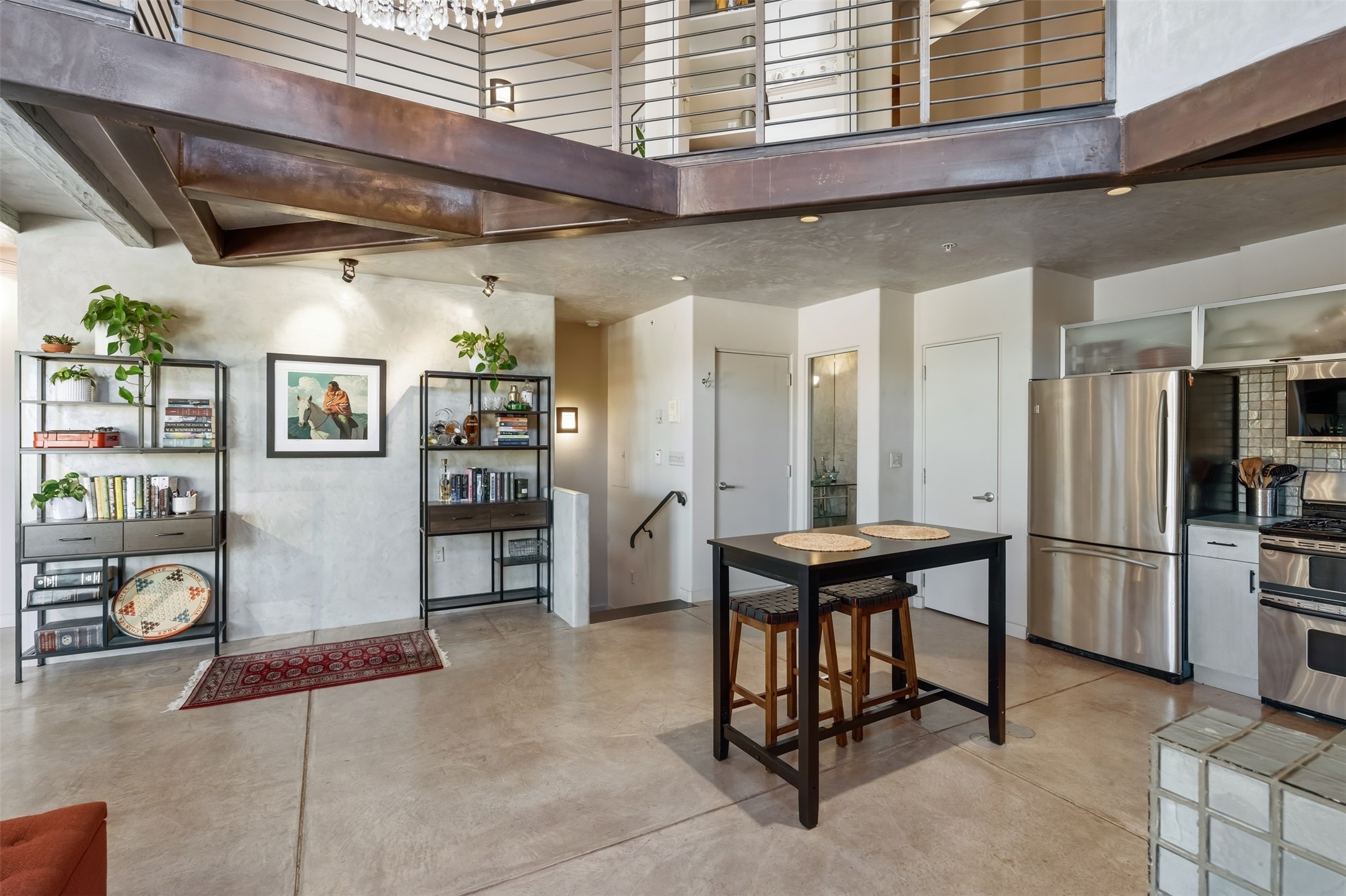 Contemporary live/work condo located in the highly sought-after South Capitol neighborhood--just a short walk to the Santa Fe Plaza and less than a mile from the Railyard District. Enjoy easy access to Whole Foods, Trader Joe's, Natural Grocers, popular restaurants, and a variety of local amenities. This two-level, second-floor residence offers 1 bedroom and 2 baths (1 full, 1 half) and is quietly tucked away at the back of the complex for added privacy. Expansive windows frame views of the Sangre de Cristo Mountains, while clerestory windows and soaring 17' ceilings fill the space with natural light. The open floor plan features a modern kitchen, sleek concrete floors with in-floor radiant heat, and a brand new evaporative cooler. Step out from the living area onto a spacious deck to enjoy outdoor living and mountain views. Upstairs, the lofted bedroom offers generous closet space, a bath with a steam shower, and stackable laundry. Don't miss this unique opportunity to own a stylish and light-filled home in one of Santa Fe's most desirable neighborhoods.