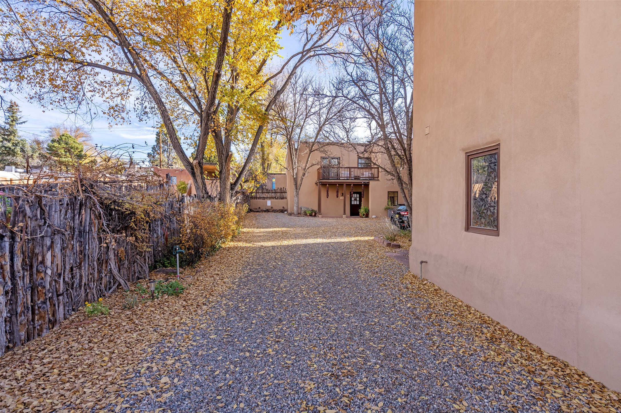 Eastside Elegance: A Contemporary Oasis Canyon Road AdjacentDiscover this beautifully remodeled condominium providing contemporary luxury and comfort. One block from Canyon Road and directly across from the scenic Santa Fe River, in a small private complex, this home embodies an inviting atmosphere that encourages relaxation and enjoyment.Inside, every detail has been meticulously crafted. The well-appointed kitchen seamlessly flows into an open living and dining area, which opens up to a private landscaped oasis. Experience outdoor living at its finest under the retractable awning, perfect for entertaining family and friends.This condo boasts numerous high-end updates, including elegant stained wood and white-oak flooring throughout, exquisite Italian tile baths and patio, and stunning quartz countertops complemented by stainless-steel appliances. The property has been enhanced with updated mechanical systems and fixtures to ensure a modern living experience.Upstairs, the spacious bedroom is bathed in natural light, featuring a generous walk-in closet that any fashion enthusiast would appreciate. A charming Juliet balcony with sliding glass doors invites fresh air, while the luxurious bath provides a peaceful retreat.Additional highlights include radiant heating, ductless AC for year-round comfort, and ample storage both inside and out. This urban escape offers unparalleled convenience, making it ideal for full-time living or a part-time getaway.Don't miss your chance to experience the perfect blend of elegance and convenience in the heart of Santa Fe's Eastside.