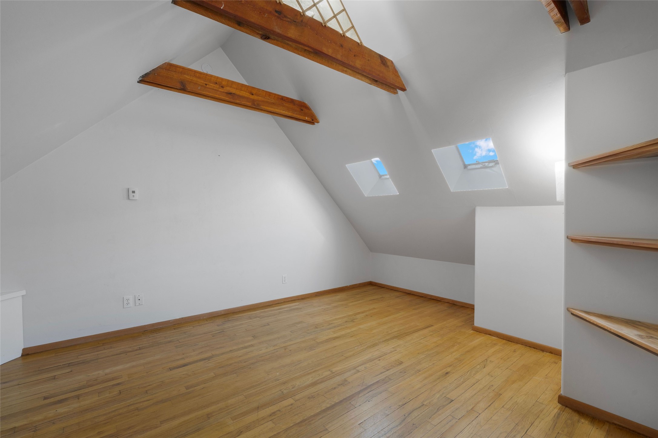 This Northern New Mexico style pitched roof mostly adobe dwelling with detached pitched roof adobe studio sits on 9 plus acres at the edge of the historic Lamy Village. This Karen Terry-designed and built, off the grid offering has three bedrooms and three full bathrooms. The main house has a dramatic entry hall, a high ceilinged-living room with vigas and a fireplace, a large sun room for passive solar gain and a roomy eat-in kitchen with slab granite counter tops and a wood stove. The first level has brick floors with oak flooring in one bedroom and the upstairs bedroom. An outside staircase takes one to the private third bedroom and full bath on the second level. The detached studio is heated, has a brick floor, running water and houses the generator for back-up electricity. In addition, there is a two-stall run in barn with tack/feed storage. The front of the house and the portal are cottonwood-shaded and there is a large stand of old oaks near the back of the house. Water is supplied by a shared well. There is also a roof-sourced water catchment system with approximately 4500 gallons of storage.