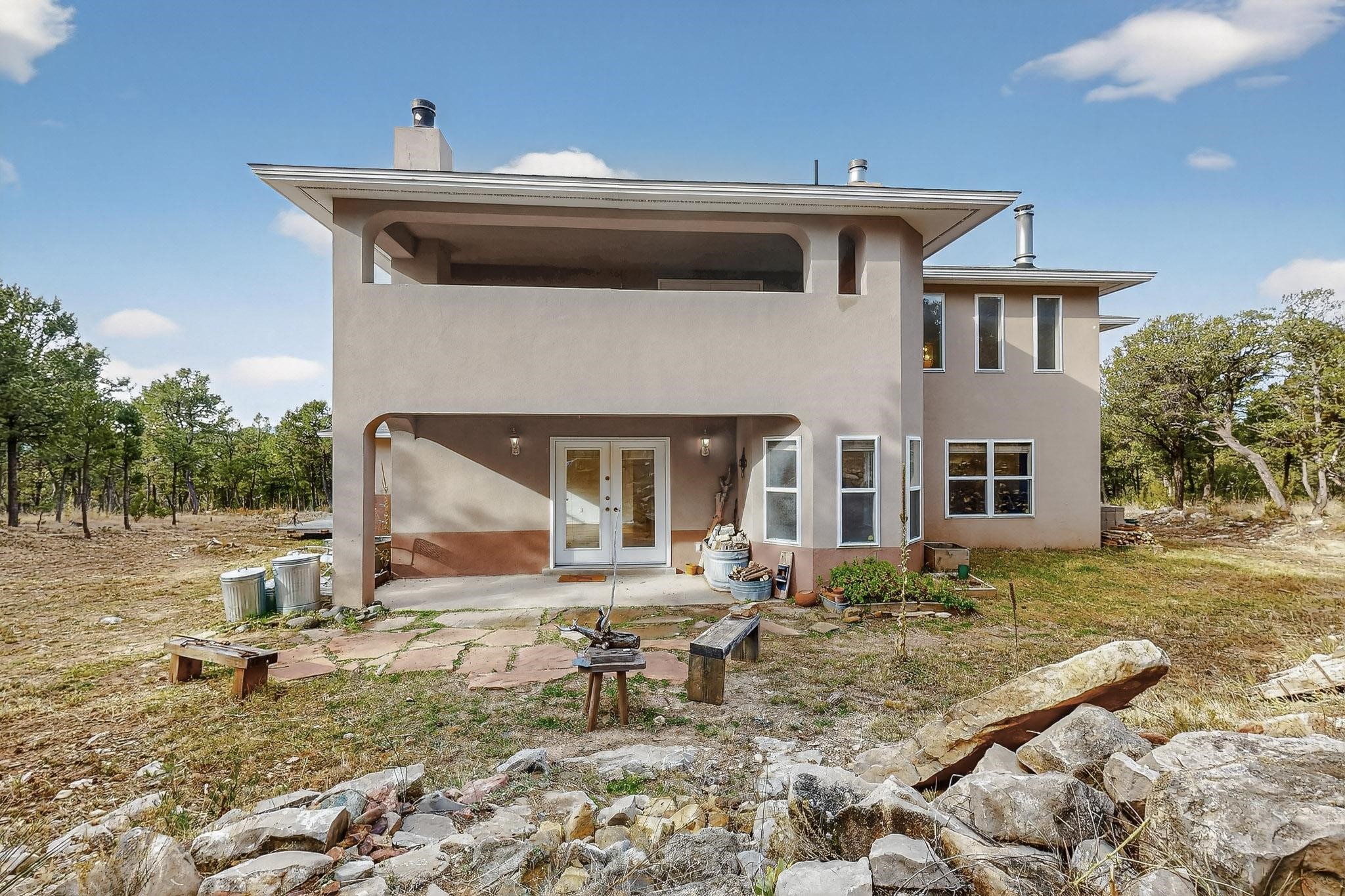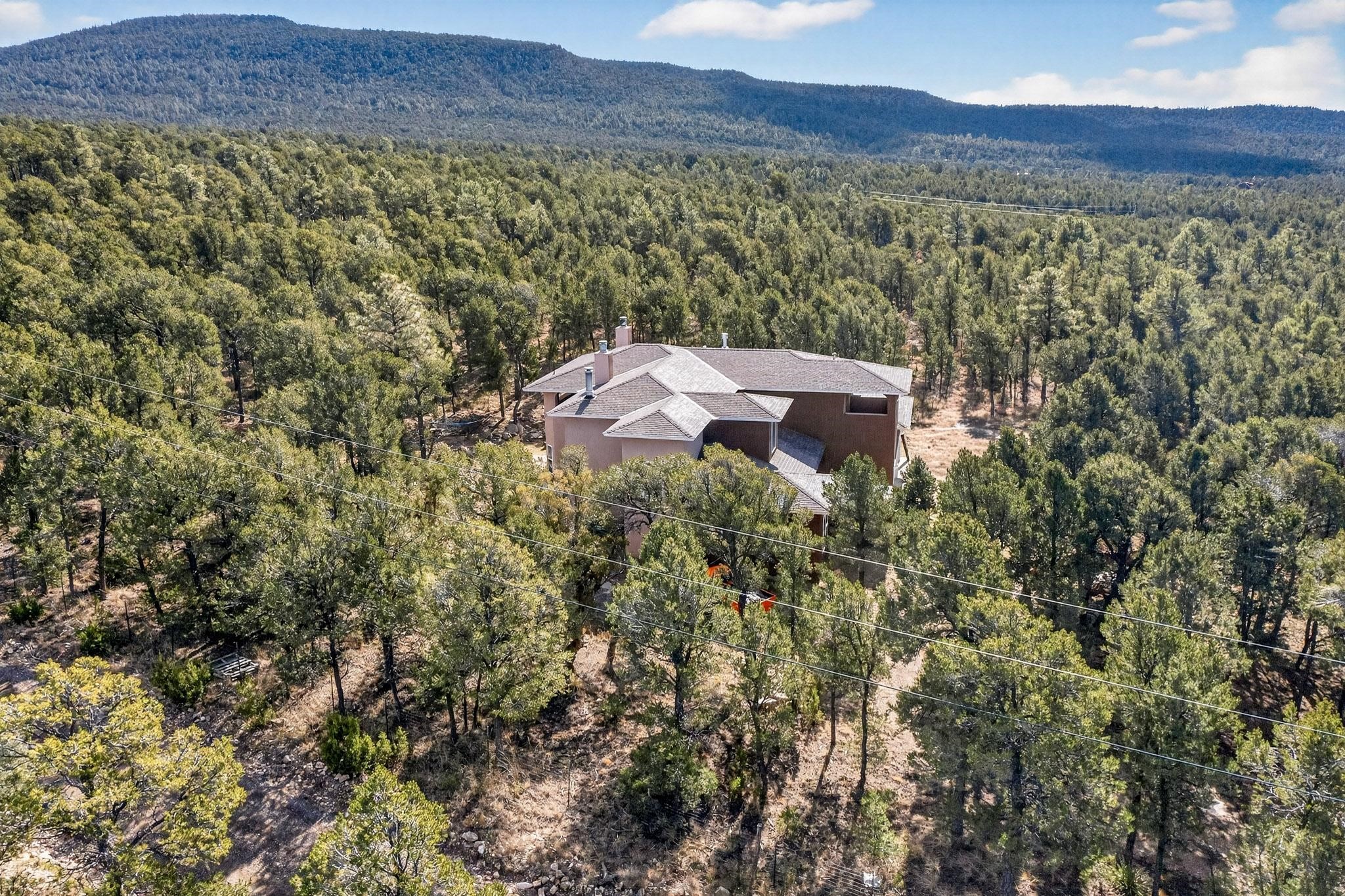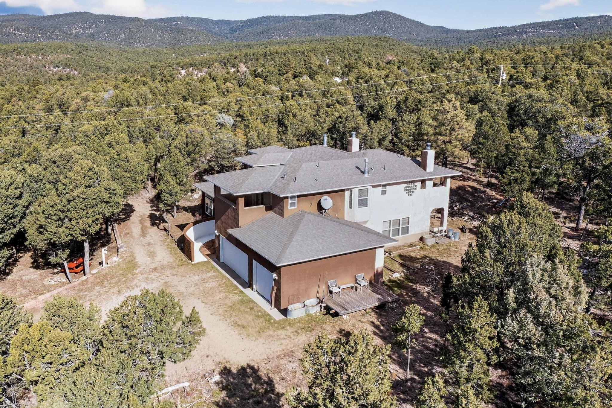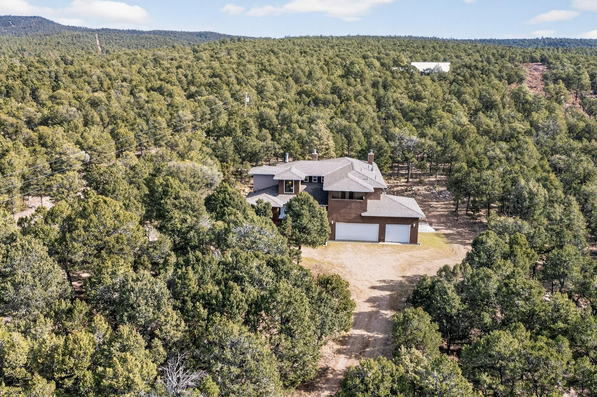 Custom 2-story home sited on 2.32 +/- fully fenced acres. The expansive floorplan includes great room with wood burning stove and tall ceilings, Chef's kitchen with breakfast nook, family room with Kiva fireplace, bonus room, 2 full baths and 3/4 bath, laundry room and oversize and finished 3 car garage. All 3 bedrooms are up stairs, primary has wood burning fireplace and view balcony, 2nd bedroom has a second view deck facing to the north with views to the Santa Fe National Forest, 2nd and 3rd bedrooms share "jack n jill" bathroom. The home boosts extensive closets, all appliances included - refrigerator, stove/oven, washer, dryer, dishwasher, French doors to back patio, 2 fireplaces and 1 wood stove, granite kitchen counters. The 2.32 +/- acres includes a circle driveway, are nicely maintained with Juniper, Pinon and a large Ponderosa Pine tree, block retaining wall, private well with 3 acre feet of domestic water rights, buried and owned propane tank, and picnic area with a picnic table. Located just beyond the Village of Pecos the property at 16 Coyote Lane has much to offer buyers.