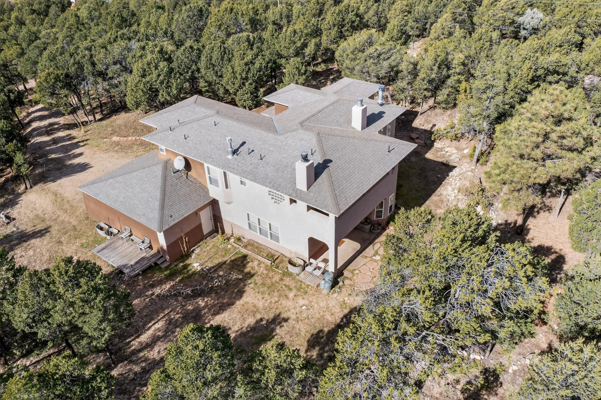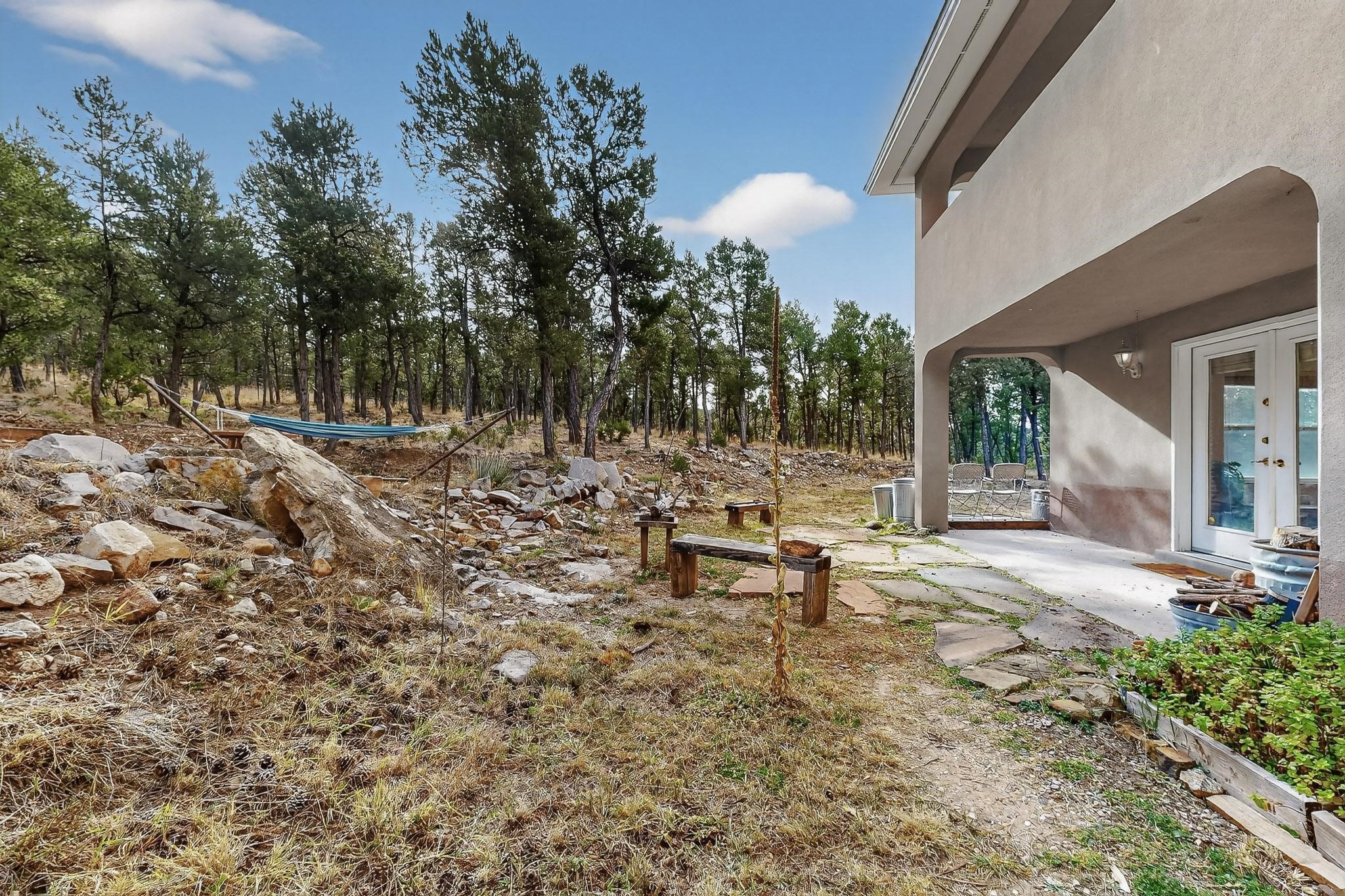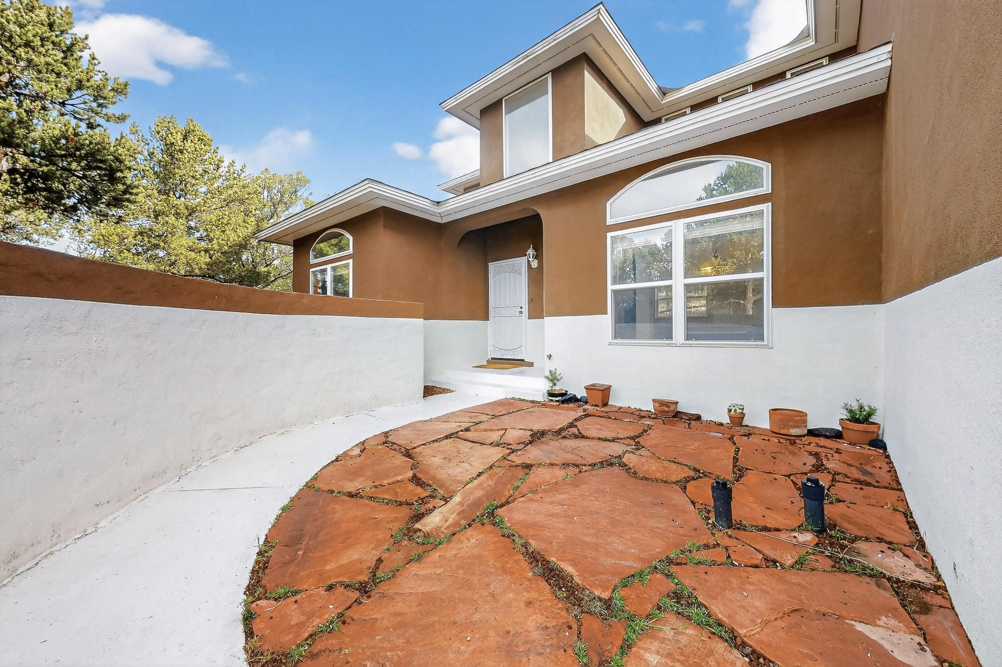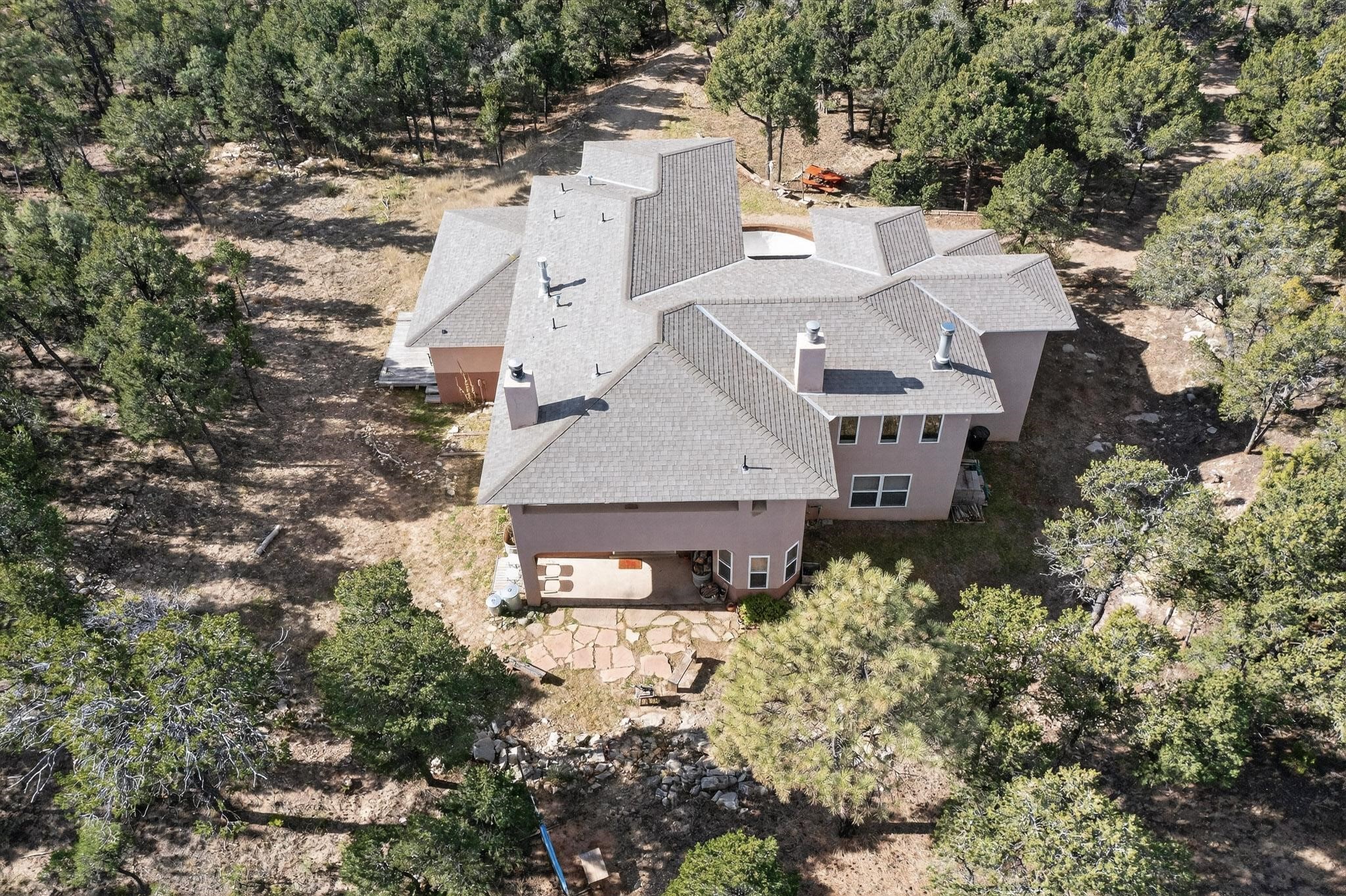 Custom 2-story home sited on 2.32 +/- fully fenced acres. The expansive floorplan includes great room with wood burning stove and tall ceilings, Chef's kitchen with breakfast nook, family room with Kiva fireplace, bonus room, 2 full baths and 3/4 bath, laundry room and oversize and finished 3 car garage. All 3 bedrooms are up stairs, primary has wood burning fireplace and view balcony, 2nd bedroom has a second view deck facing to the north with views to the Santa Fe National Forest, 2nd and 3rd bedrooms share "jack n jill" bathroom. The home boosts extensive closets, all appliances included - refrigerator, stove/oven, washer, dryer, dishwasher, French doors to back patio, 2 fireplaces and 1 wood stove, granite kitchen counters. The 2.32 +/- acres includes a circle driveway, are nicely maintained with Juniper, Pinon and a large Ponderosa Pine tree, block retaining wall, private well with 3 acre feet of domestic water rights, buried and owned propane tank, and picnic area with a picnic table. Located just beyond the Village of Pecos the property at 16 Coyote Lane has much to offer buyers.