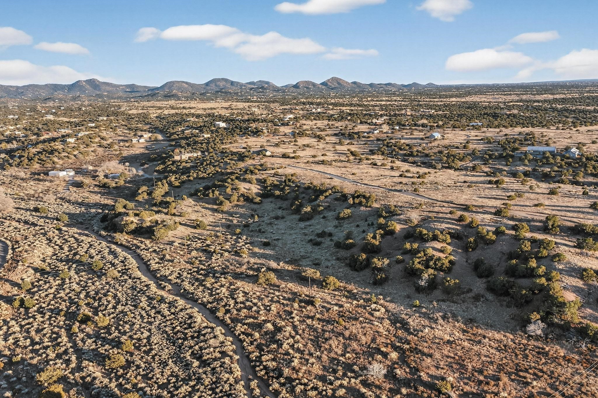 If the wide-open majesty of New Mexico's big sky combined with the charm of Santa Fe has captured your mind, you should consider this rarely found parcel of undeveloped land. It is comprised of 2 lots for a total of 6.39 acres, tucked away in quiet private area only 1.85 miles from the intersection of Rabbit Road and St. Francis Drive. This property offers deep quiet away from traffic, in addition to dark, starry skies, views of ALL the surrounding peaks: majestic Sangre De Cristo to the East and Jemez to the West, plus the Cerrillos Hills. You will enjoy the peace and quiet that can't be found in a tightly developed subdivision. An ancient wagon road crosses the land from a now abandoned pueblo. This parcel is located in a small established community of professionals who, collectively, keep the private road well maintained year-round. The road is on the south side, electricity is present along the north side at the bottom of these 2 lots. Neighboring wells in proximity to these lots have a history of abundant and reliable flows. Sensible covenants, no HOA, friendly neighbors with large uncluttered properties of beautiful homes will greet you. Biking and hiking enthusiast? The Rail Trail is just a hop away, which takes you into the City of Santa Fe's Bike Trail system or out to the historic community of Lamy, car free.