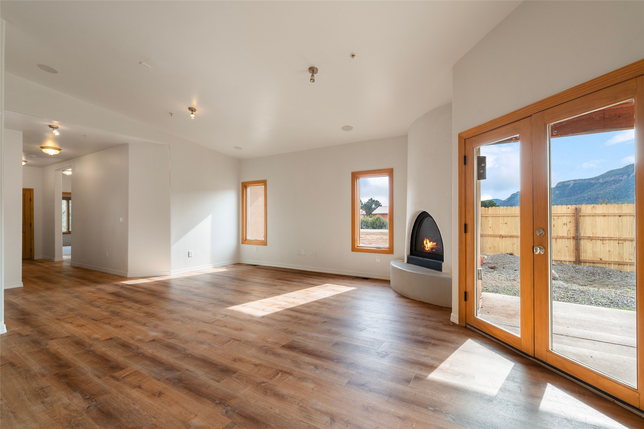 Discover the perfect blend of mountain tranquility and convenient living in this beautifully updated 4-bed, 2-bath home set on 1.3 acres with sweeping views of the Pecos Mountains. Located just 32 minutes from the historic Santa Fe Plaza, this property offers both privacy and an easy commute.Step inside to an inviting open concept living, dining, and kitchen area, anchored by a charming gas kiva fireplace in the great room, that adds warmth and Southwestern character. The smart floor plan provides excellent bedroom separation, with the primary suite privately situated away from the additional bedrooms.Enjoy the confidence of recent upgrades, including new paint and flooring in 2025 and a new pro-panel roof installed in 2020. The home also features a two-car garage and a covered back patio, the perfect spot to relax and enjoy our wonderful outdoor lifestyle.With its generous acreage, thoughtful layout, and fresh updates, this property offers comfort, beauty, and true New Mexico living.