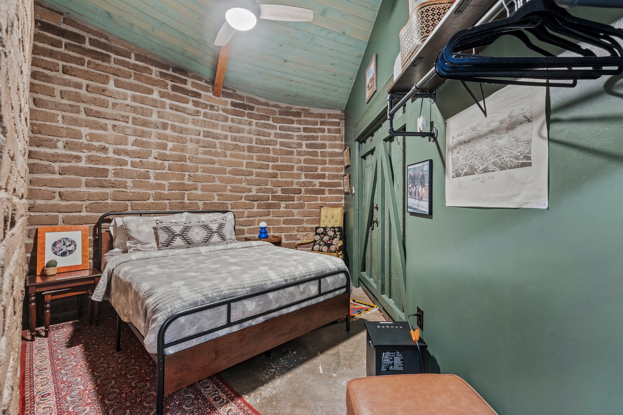 El Caracol Court | 34 State Road 503 is a truly distinctive riverfront property located along the Rio Nambe in the lush Nambe Valley. Designed by renowned local architect Allen L. McNown, a University of Oregon trained architect who settled in Pojoaque in the 1950s and became known for his contemporary adobe work with undulating forms and tinted-light interiors, including the modern church at Namb Pueblo. The home combines artistic design, functionality, and nature in an extraordinary way. Its form is inspired by the spiral geometry of a nautilus shell, a motif McNown used in other celebrated "snail" houses in the valley, and this architectural concept defines a flowing interior that celebrates light, water, and organic space. Set on approximately 2.10 acres, the property is fully fenced and offers both privacy and usability. It benefits from surface water rights off the Rio Nambe as well as a shared well, providing flexibility for landscaping and irrigation. The grounds include mature trees, gardens, a swimming pool, storage shed, and a separate workshop--a combination rarely found in this corridor.The residence itself measures roughly 4,000 square feet with three bedrooms and three bathrooms. Key design features include adobe and frame construction, dramatic curving walls, exposed wood beams, a lava-rock fireplace, and a sweeping staircase that centers the home's open plan. Additional amenities include: 40' Private swimming pool with adjacent lounge area, covered portal, sunroom with glass enclosure, solar improvements, mechanical system updates, maintained roof and gutters, radon mitigation system, updated appliances, and enhanced irrigation infrastructure. Exceptional maintenance and stewardship, upgrades over recent years that have modernized systems while preserving the artistic integrity of the home. The property has also been operated as a short-term rental, generating consistent income and showing strong demand as a retreat or vacation destination.