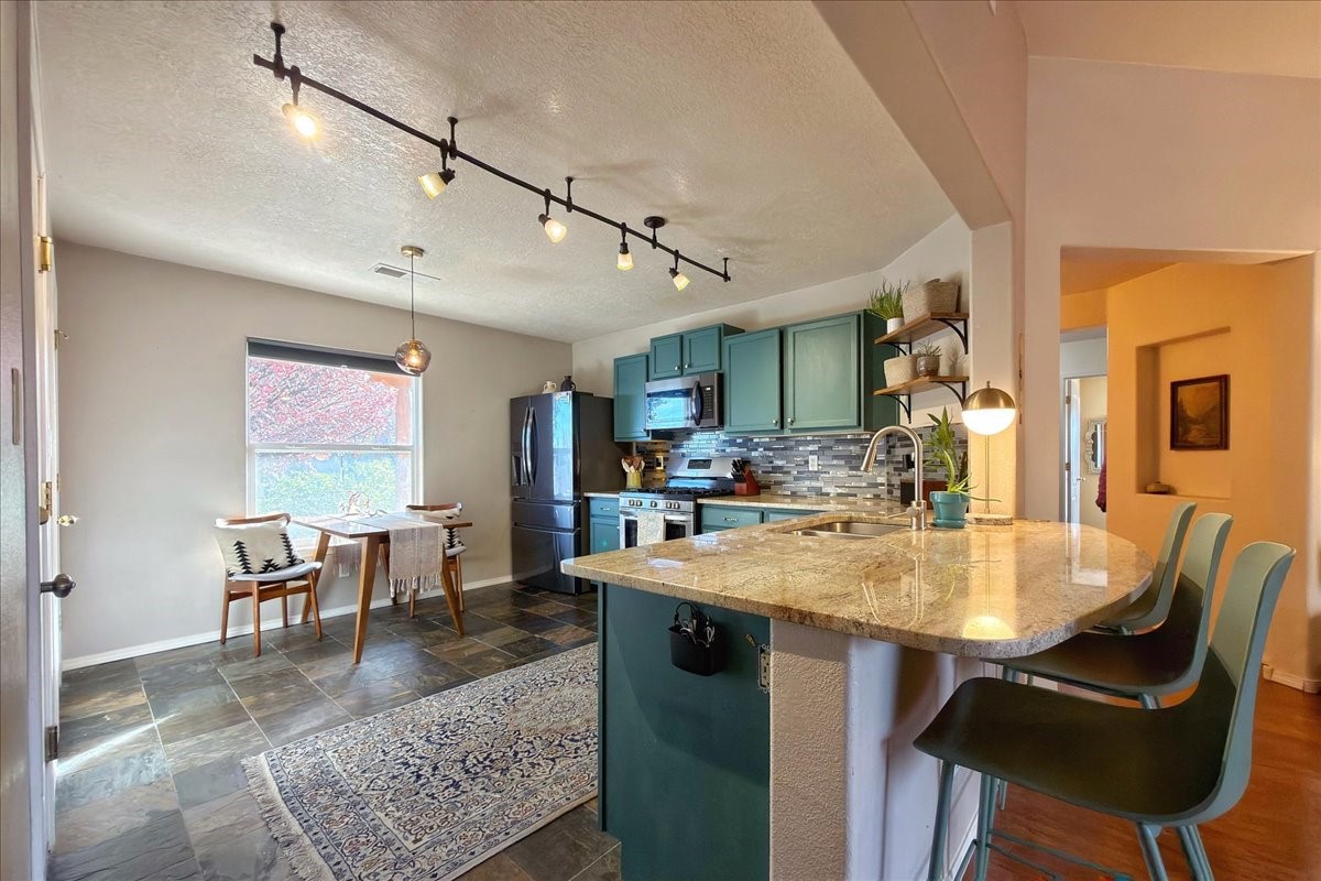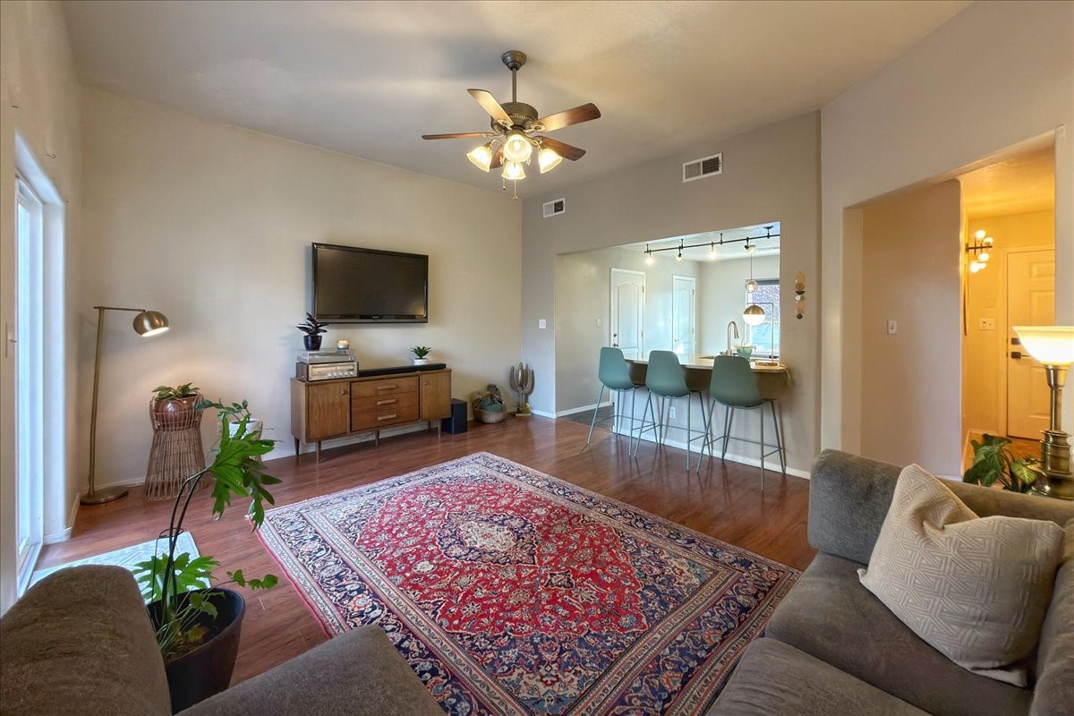 This charming single-level, three-bedroom, two-bath home is perfectly situated in a cul-de-sac, offering privacy and comfort. The spacious living area is filled with natural light, creating an open and welcoming atmosphere. The kitchen features granite countertops and new appliances. The bedrooms are spacious and versatile, ideal for guests, a home office, or a flex room. There are energy-efficient solar panels on the roof. Outside, the large lot includes beautiful rose bushes, raised garden beds, and a storage shed. Conveniently located close to highways, restaurants, and shopping.
