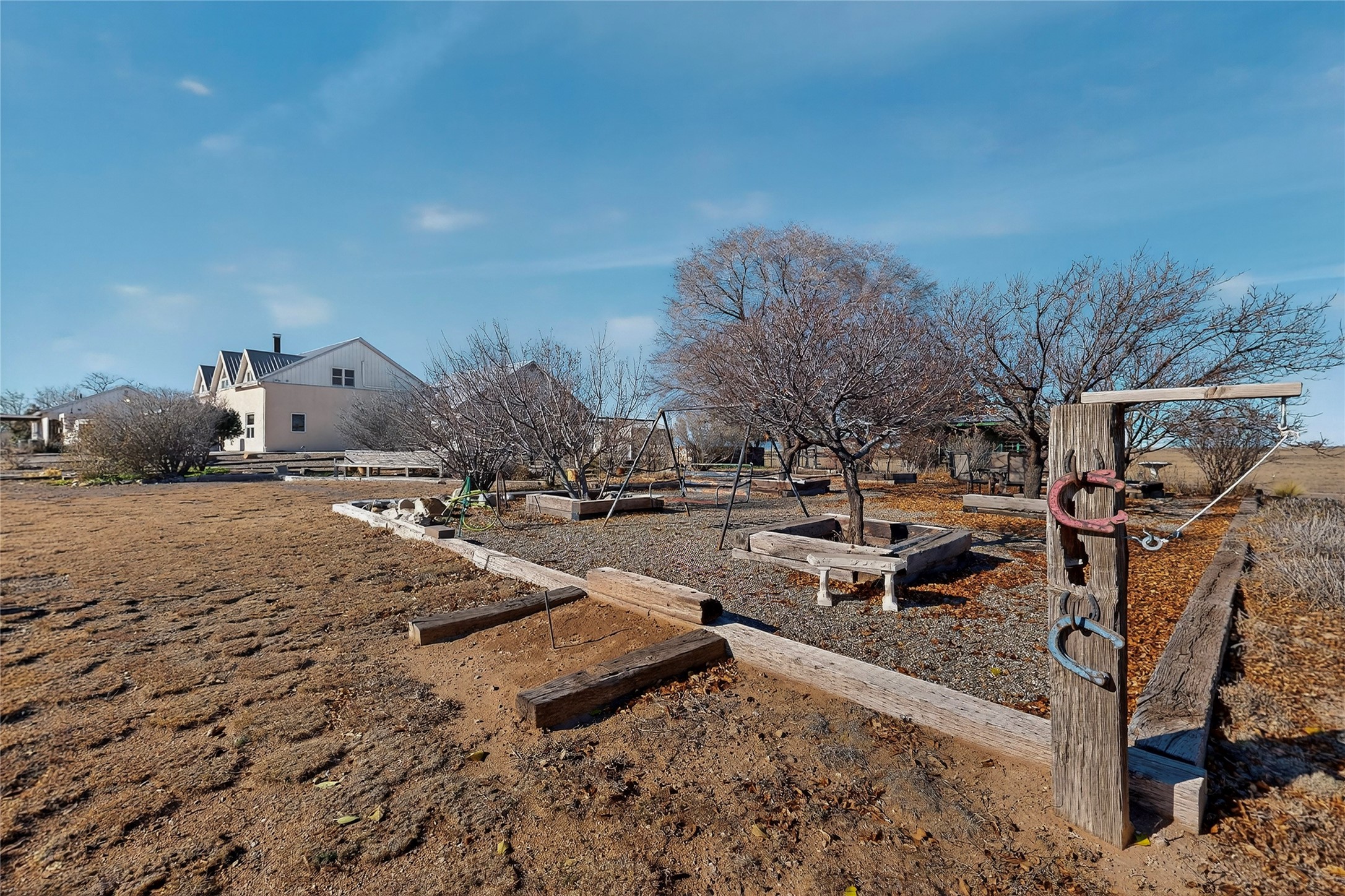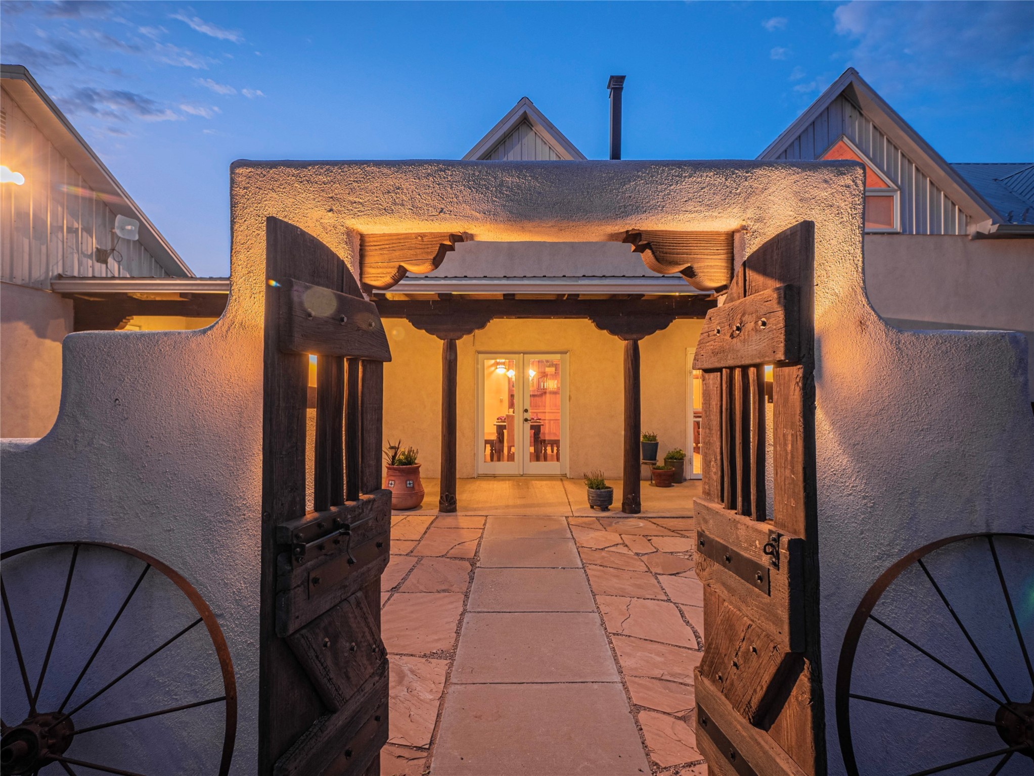 Rammed earth residence a total of 4,894 heated square feet, includes main house 3,099 sq ft and 1,795 sq ft casita. Casita would be perfect office or workspace, conveniently located. The main residence features four bedrooms and three and a half bathrooms, complemented by a flexible second living area that can function as either an office, library or tv room. The construction also emphasizes energy efficiency, contributing to overall savings. The property encompasses a total of 200+ acres fully fenced & crossed fenced. Gated entry, featuring a solar opener. 54' x 60' Eagle Steel Building, includes two interior frost-free faucets, 3/4" rubber mats, covered outdoor pens, and insulated ceilings for optimal climate control. 40' x 42' metal barn equipped with 220-volt electricity, pipe corrals, a storage with saddle racks, insulated garage doors, and concrete flooring. 10' x 14' greenhouse, an 8' x 12' Weather King portable building, a 12' x 12' feed shed, a 10' x 10' garden shed, and chicken coop with an enclosed run, making it ideal for agricultural pursuits.Equipped with a standby generator for the home & casita ensuring continuous electricity for the essentials. Gutters for effective water management across the home, casita, and barns. Interior & exterior spaces include tongue and groove, sturdy posts, beams, and corbels. The landscape is well-established, showcasing mature trees and a variety of fruit trees. An automatic bubbler and drip irrigation systems ensure efficient watering, while two courtyards provide additional outdoor living areas. The property is further enhanced by flagstone patios and sidewalks, creating inviting pathways throughout the low maintenance grounds.An attached insulated and finished two-car garage is complete with a locking storage room for added convenience. Additionally, the home & casita offer a finished attic space for additional storage. This property has it all and is waiting for you!