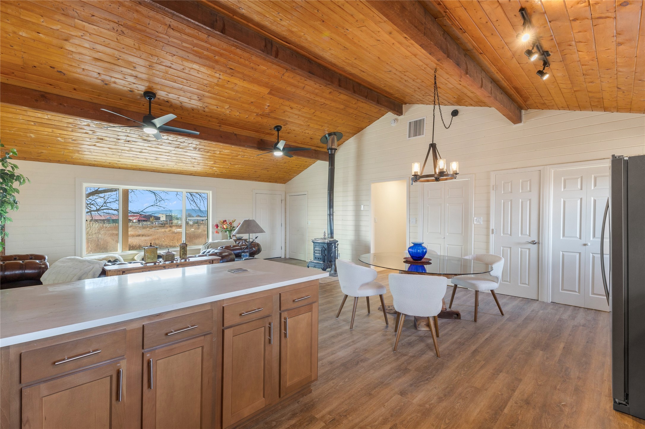 Experience the perfect blend of country charm and modern elegance in this fully remodeled 5-bedroom, 2-bathroom haven, set on a sprawling 3.33-acre estate just outside Santa Fe. The residence features an open concept design that seamlessly connects luxurious living spaces, ensuring a light-filled ambiance year-round. The newly installed central forced air unit and water heater promise efficient comfort no matter the season. Both functional and fashionable, this property includes well-maintained septic systems with new leach lines for peace of mind. Outdoors, embrace endless possibilities on your own private slice of paradise thanks to expansive land. This exceptional property redefines Santa Fe country living at its finest. Welcome home!