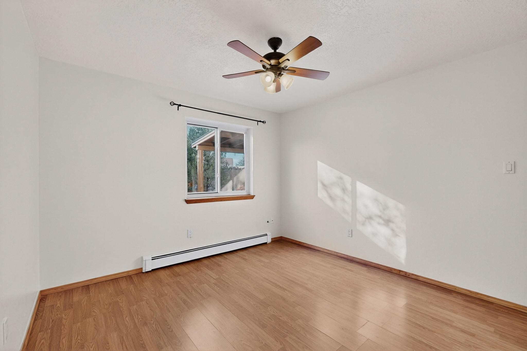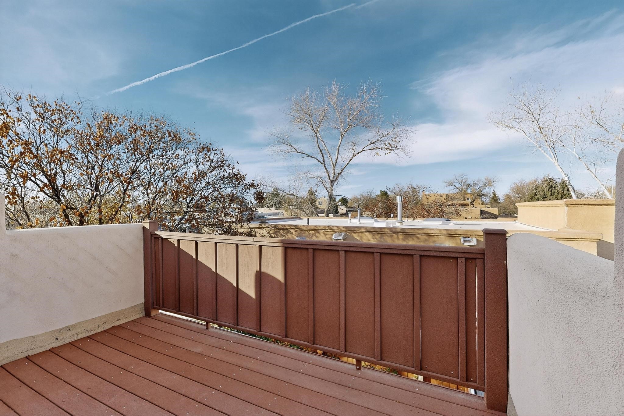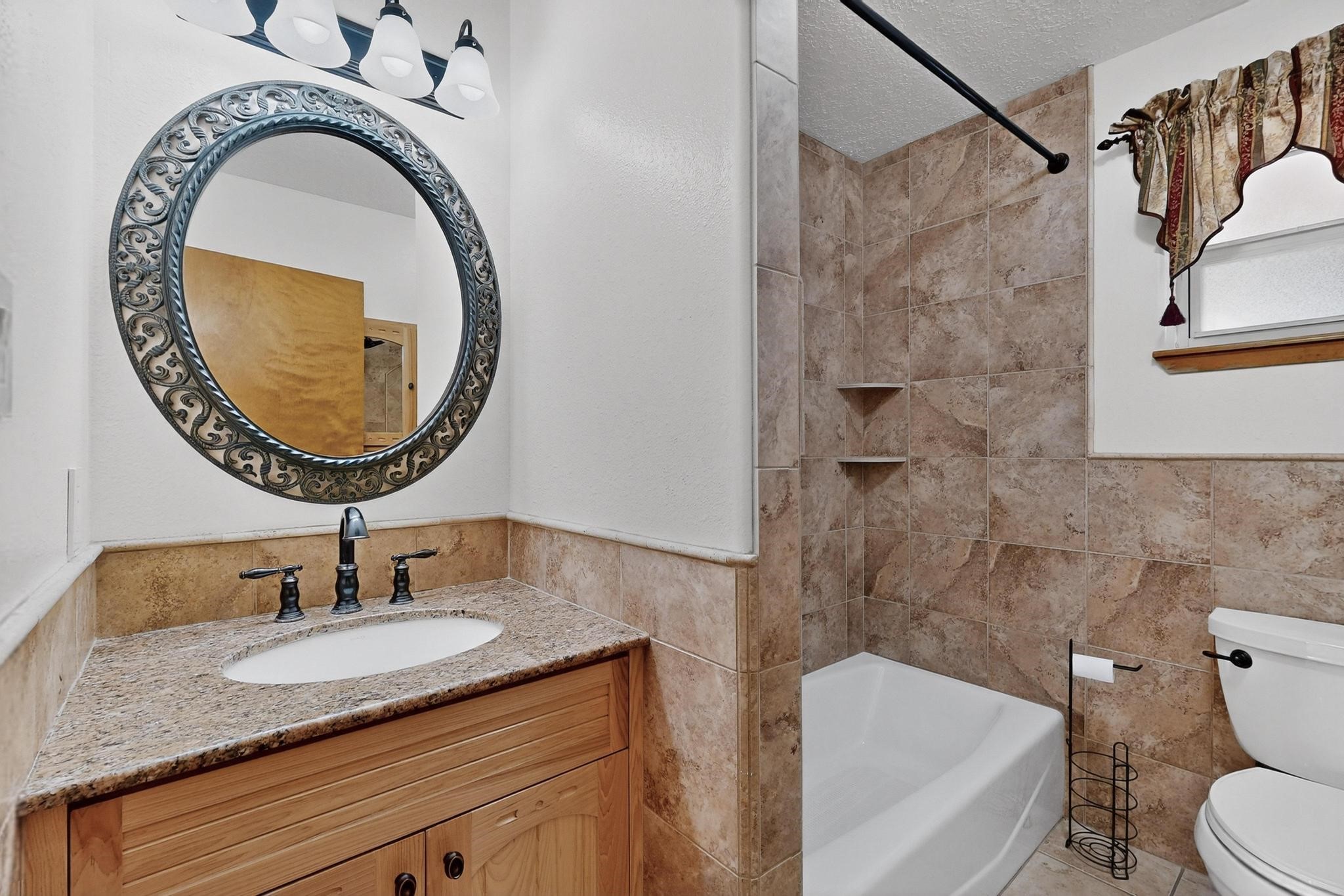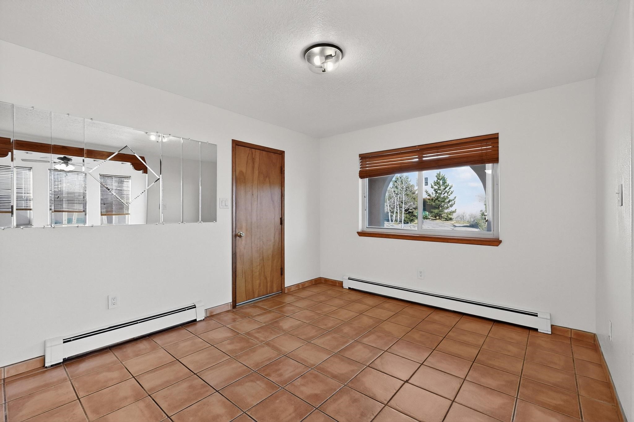This home is filled with abundant natural light, creating a warm and inviting atmosphere throughout, making it a truly exceptional place you'll want to call your own. This property features 3 bedrooms PLUS an office. 2 full bathrooms, each with custom cabinets, beautifully tiled bathtubs and granite countertops. The living room boasts a cozy wood stove and high beamed tongue-and-groove ceilings, adding Santa Fe charm to the home. Retreat to the main bedroom suite, which offers its own fireplace and a private balcony with a mountain top view--ideal for unwinding after a long day. The kitchen is complete with a brand-new gas stove/oven, custom-made cabinets, granite countertops and tile backsplash. Step outside to enjoy the fully landscaped front and back yards, featuring tranquil water fountains and mature landscaping maintained with drip irrigation. The backyard also includes a flagstone covered portal, perfect for outdoor entertaining and relaxation. Home includes a one car finished garage, large storage shed and a laundry room with a large basin sink and ample upper cabinets. Tiled and wood flooring adds the extra touch.Don't miss the opportunity to make this exceptional property your new home!