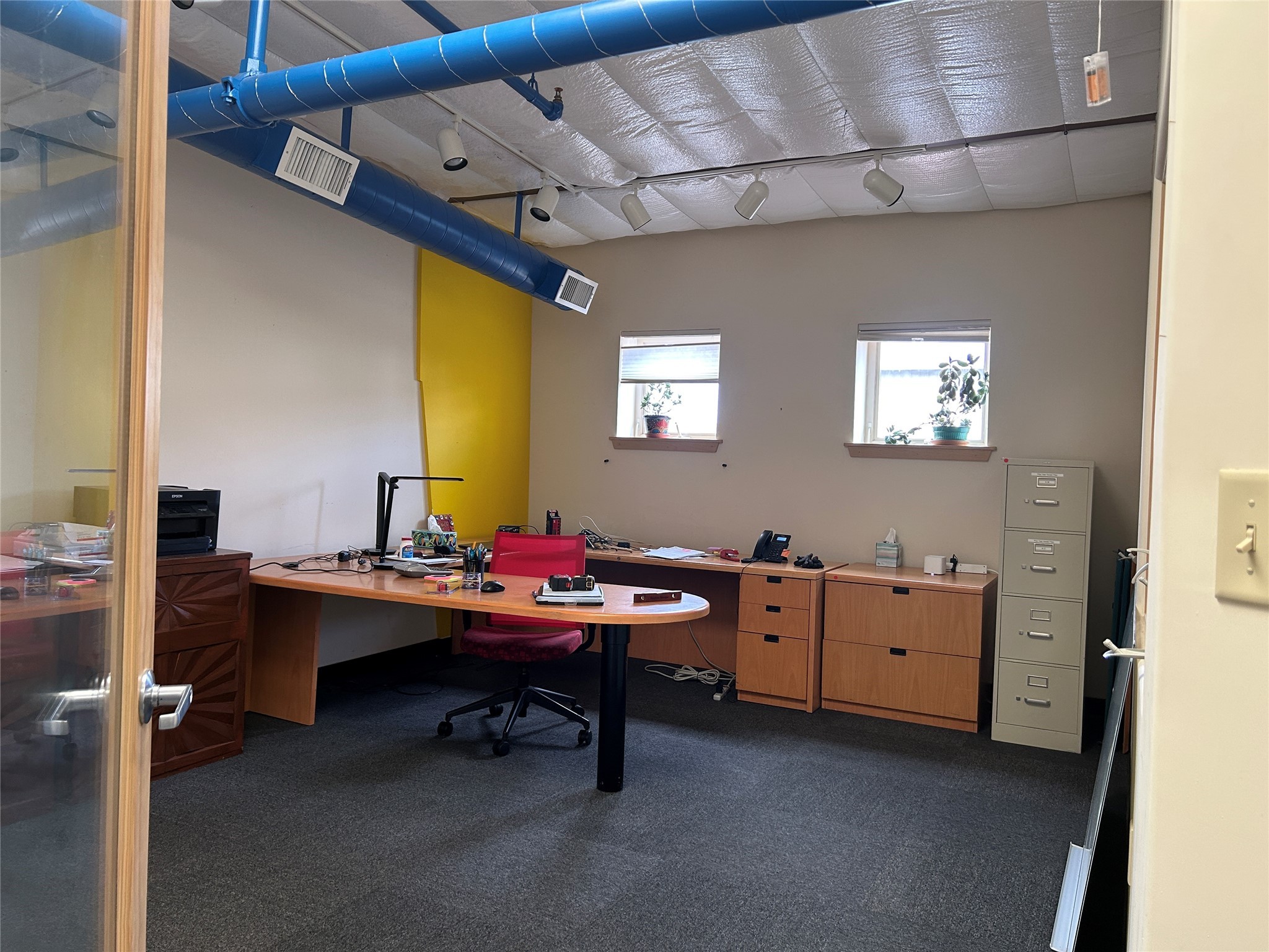 Beautiful Commercial Property that is just right for a live/work (upstairs bath with shower, downstairs kitchenette). 4 comfortable office spaces (2 upstairs 2 down). Nice reception area. In the back is a large workspace with 23 foot ceilings, a large overhead garage door and drive up loading dock. Plenty of parking both front and back. Office units have HVAC, Warehouse/work space has Evaporative cooler and Gas space heater. Limited Condo Assn. coverage. ADA compliant downstairs bathroom. Condo Assn fees are $283.33 a month.