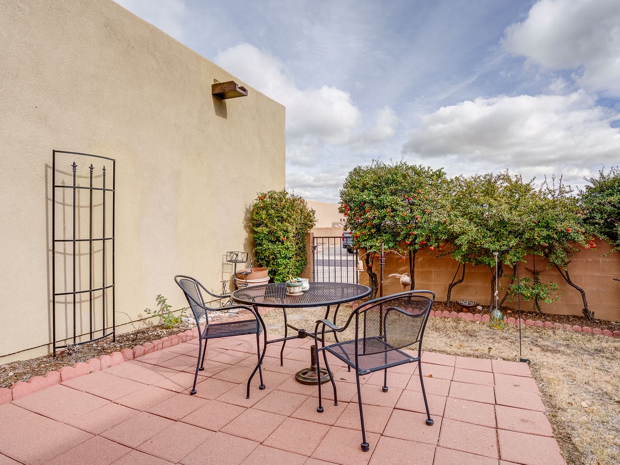 Discover the charm of Santa Fe living at 15 Via Sagrada, a delightful, lovingly maintained 2-bedroom, 1-bathroom single-family home located in the desirable La Entrada of Rancho Viejo community. Featuring a an open-concept design, this property offers a perfect blend of subtle finishes and inviting living spaces. The interior is nicely lit and centered around a cozy gas kiva fireplace, ideal for embracing the unique Santa Fe ambiance. Silicon GACO Roof Coating was applied in November 2025 and comes with a 6 year transferable labor and material warranty! Enjoy sunrise views from the backyard patio! This home is an excellent choice for a first-time buyer, a potential investment property, or a low-maintenance home base for those who love to travel. Over 50% of the Rancho Viejo community is dedicated to natural open space and parks, with miles of paved multi-purpose trails. Just minutes from the Santa Fe Community College, IAIA, shopping, restaurants, and Presbyterian Medical Center. Easy access to Hwy 599, Interstate 25 and a Railrunner Station. Move right in and enjoy the Santa Fe lifestyle!