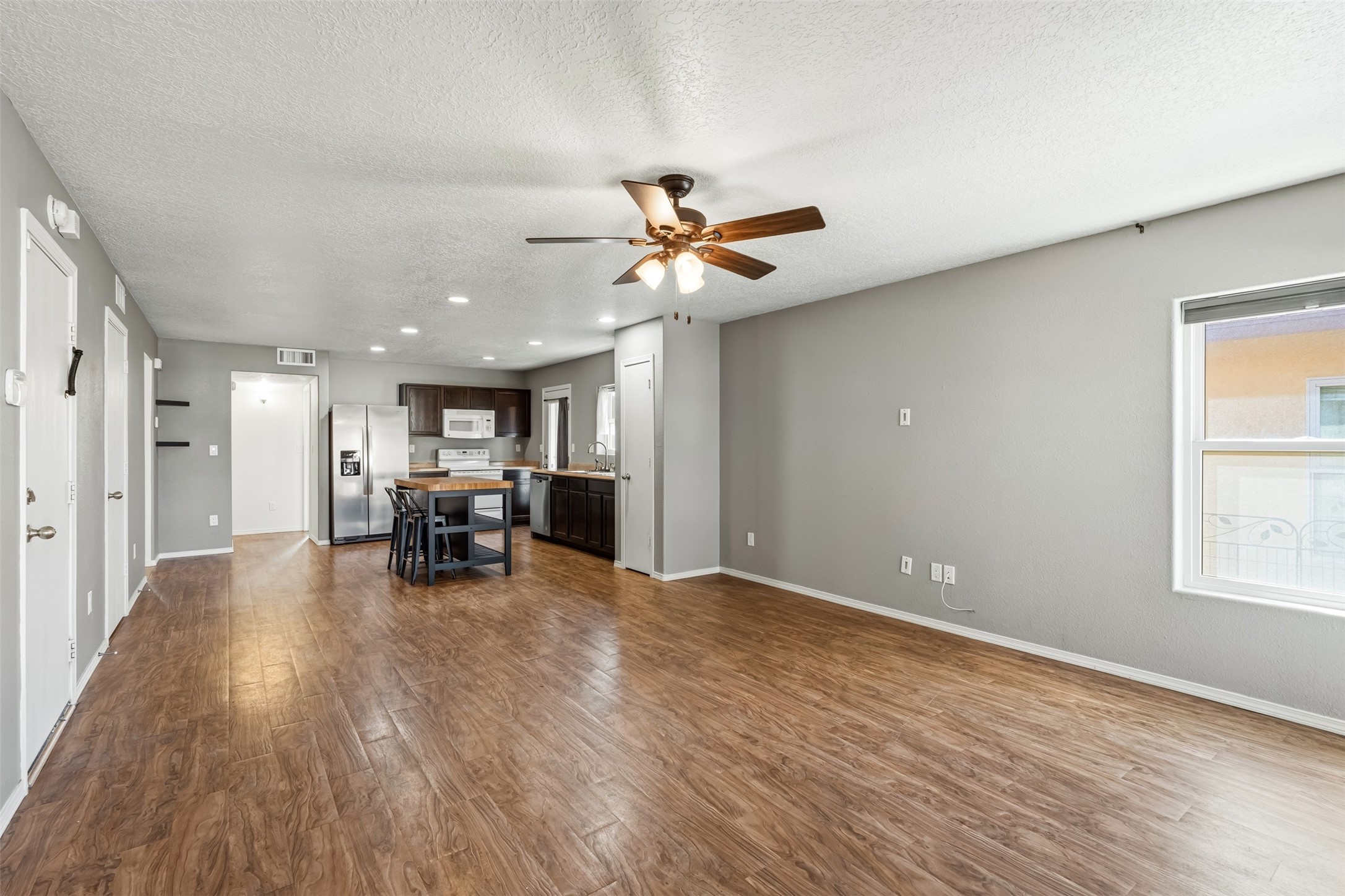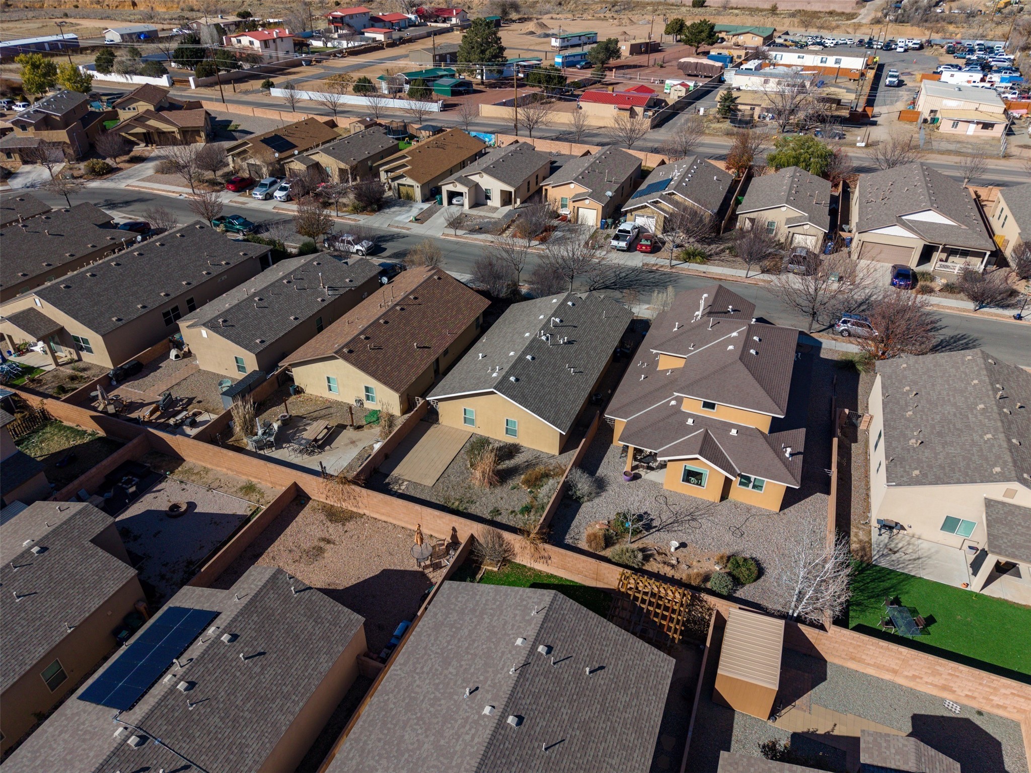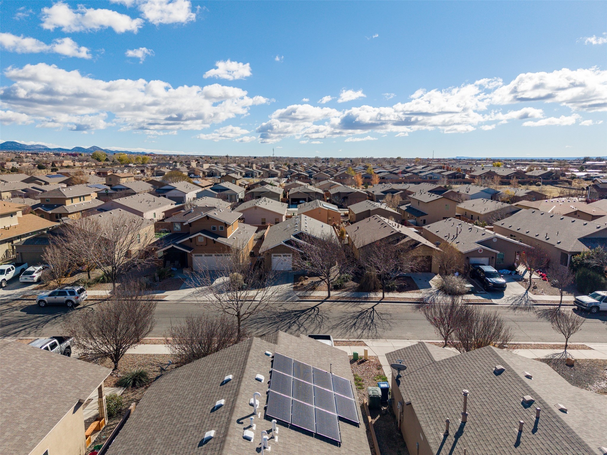 Welcome to this move-in ready, single-level home offering 1,194 square feet of comfortable living space, a 3-bedroom, 1 -bath layout, and a 1-car garage in the desirable Cielo Azul subdivision on Santa Fe's southwest side. The open-concept living, kitchen, and dining area provides a bright and inviting space for everyday living. The primary suite offers a private bath, with a full guest bathroom conveniently located between the additional bedrooms. The spacious backyard offers great potential for outdoor living and entertaining. Additional features include forced-air heating with central refrigerated air for cooling, a tankless water heater, and new appliances including the refrigerator, dishwasher, washer, and dryer. Enjoy the convenience of being just minutes from shopping, dining, schools, and Highway 599, with a neighborhood park only a short walk away.