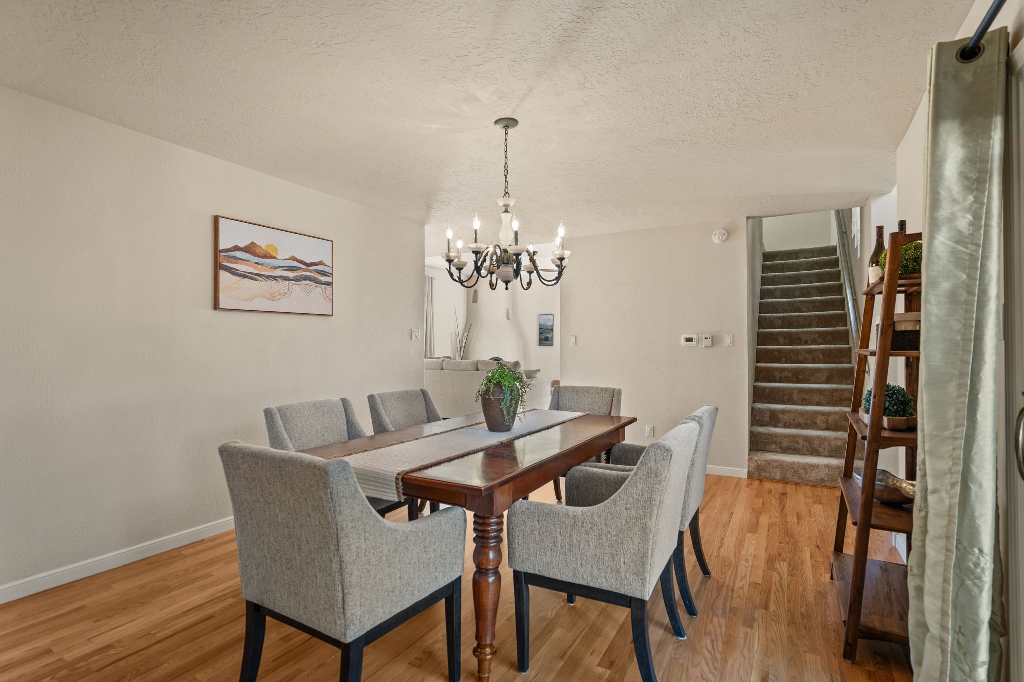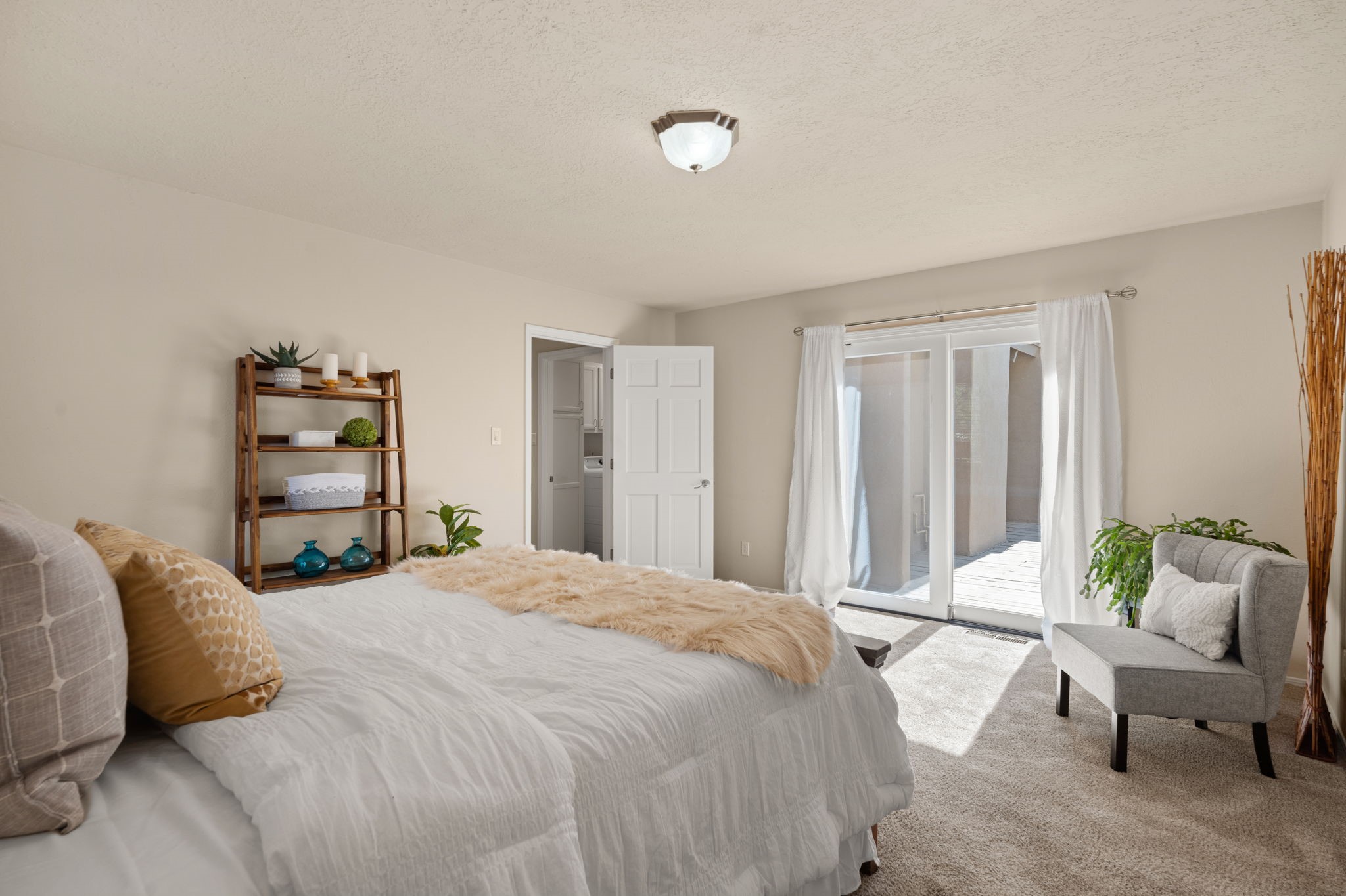 Move-in ready with major upgrades already complete! This stunning Sandia Heights home impresses with new stucco, two brand-new furnaces, a new water heater, newer evaporative coolers, radon mitigation, a whole-house water softener with dechlorinator and potassium treatment system, and a recently passed septic inspection--delivering comfort, efficiency, and true peace of mind. Brand-new decks extend living space off the primary suite as well as into the backyard, ideal for morning coffee, fiery sunsets, and starlit evenings. Inside, gleaming hardwood floors and an open, light-filled layout create an inviting setting for everyday living and entertaining. The chef-inspired kitchen features granite countertops, a gas cooktop island, generous cabinetry, and reverse osmosis filtration, flowing into a welcoming great room complemented by a classic Kiva fireplace. The luxurious upper-level owner's retreat offers a spa-like bath, sitting area, private balcony, and breathtaking Sandia Mountain and city light views. Enjoy nearby hiking and biking trails, peaceful deer crossings, and the serenity of Sandia Heights living, all set on a .58-acre lot with endless backyard potential- your ABQ Dream Home awaits.