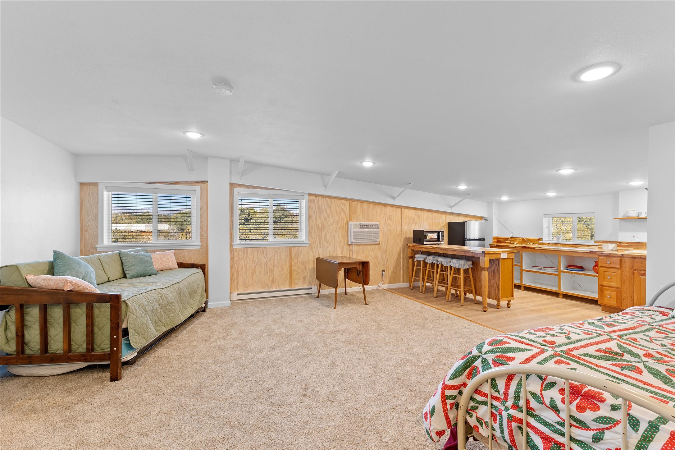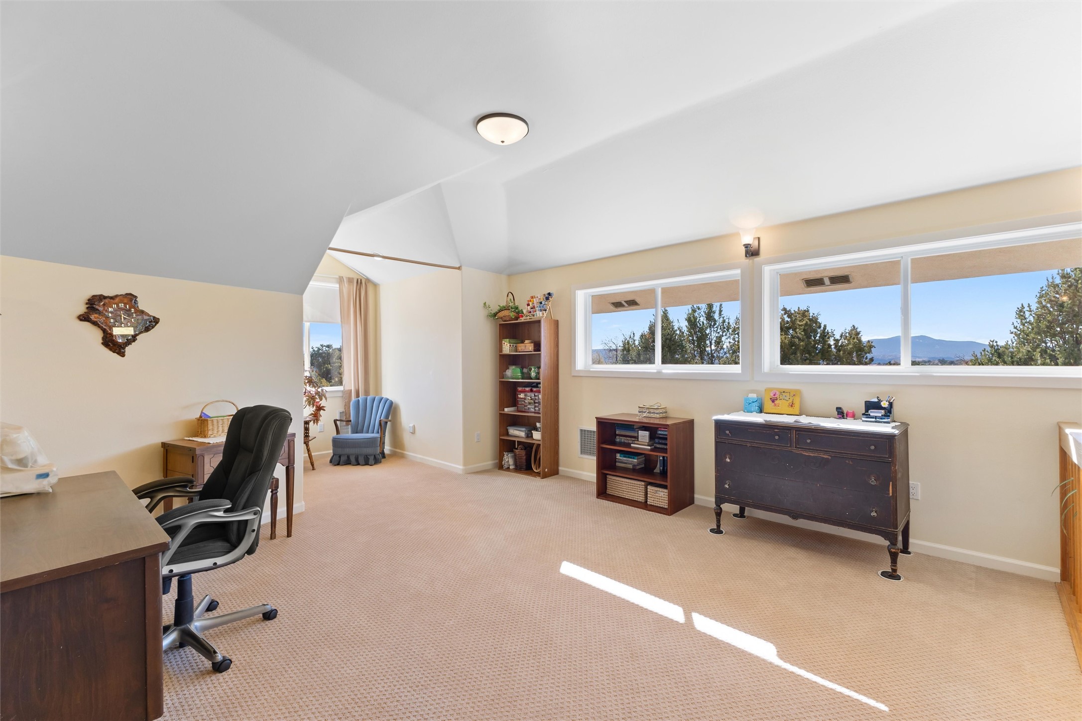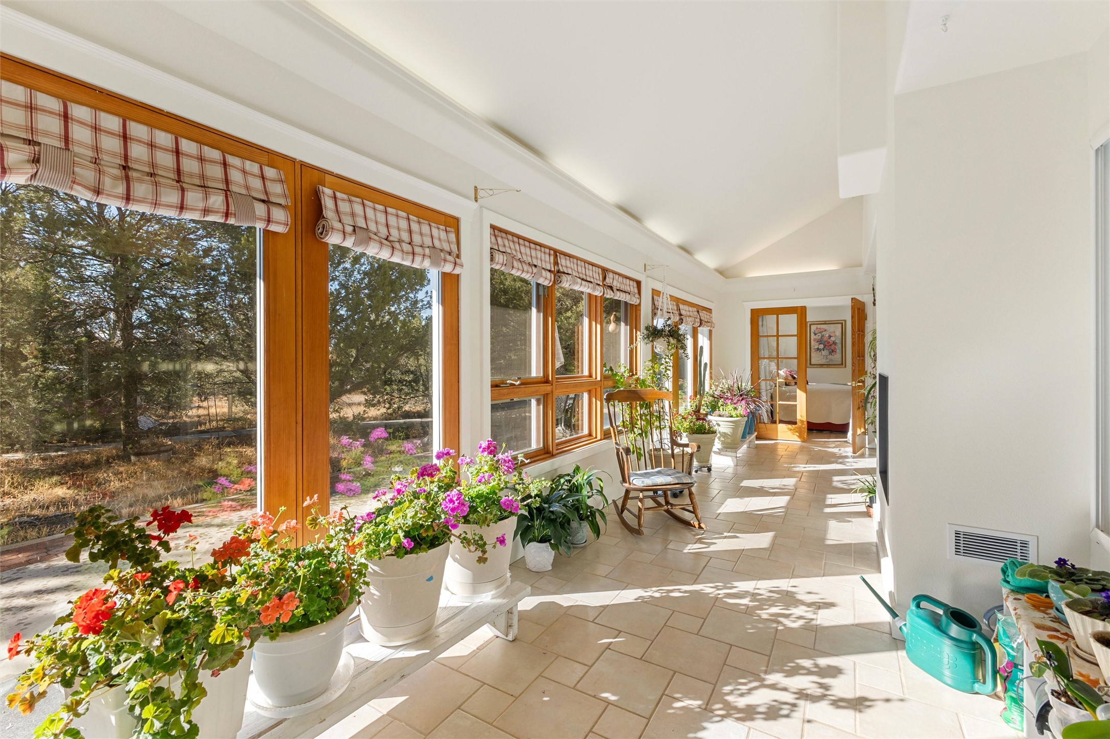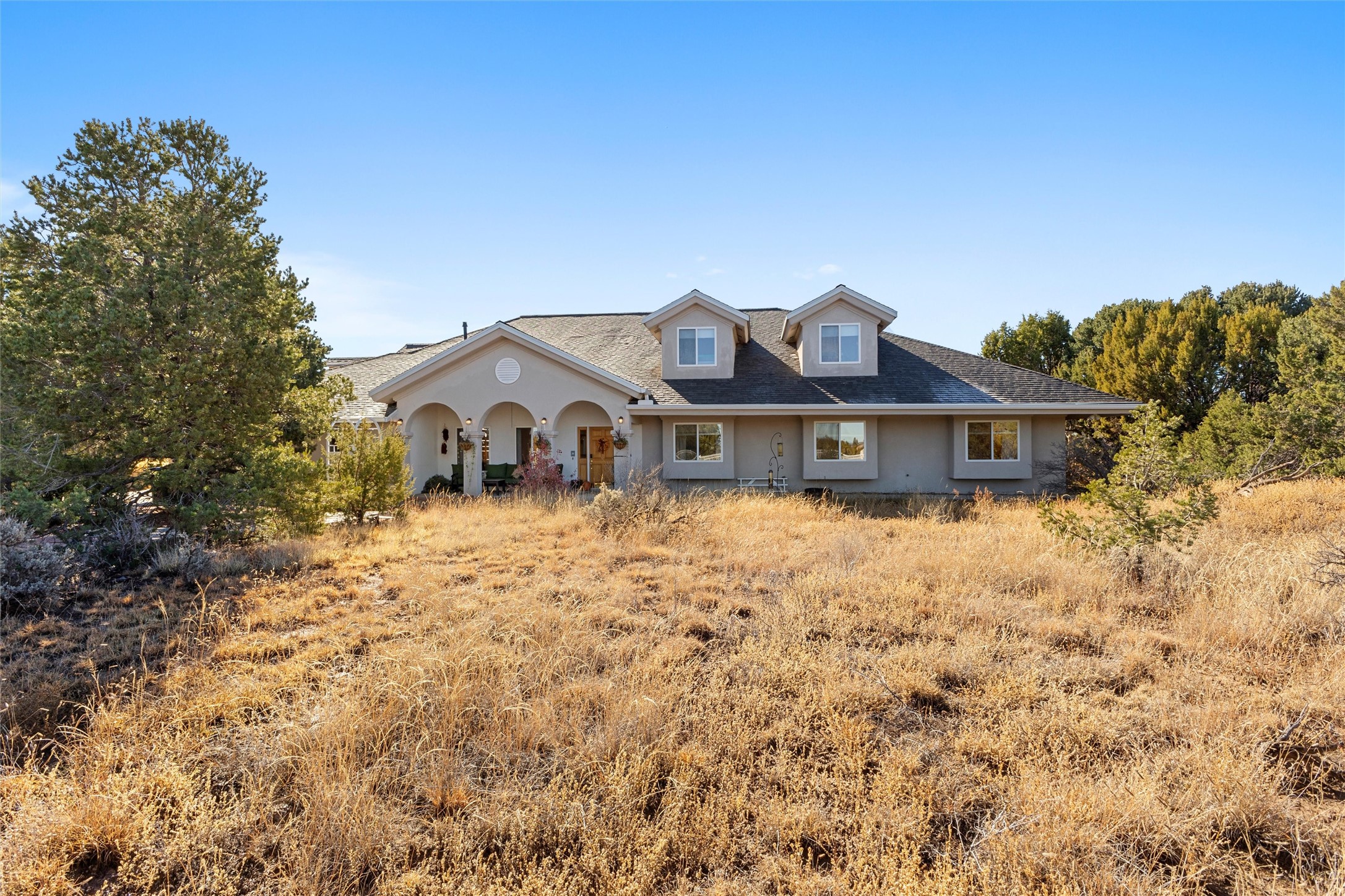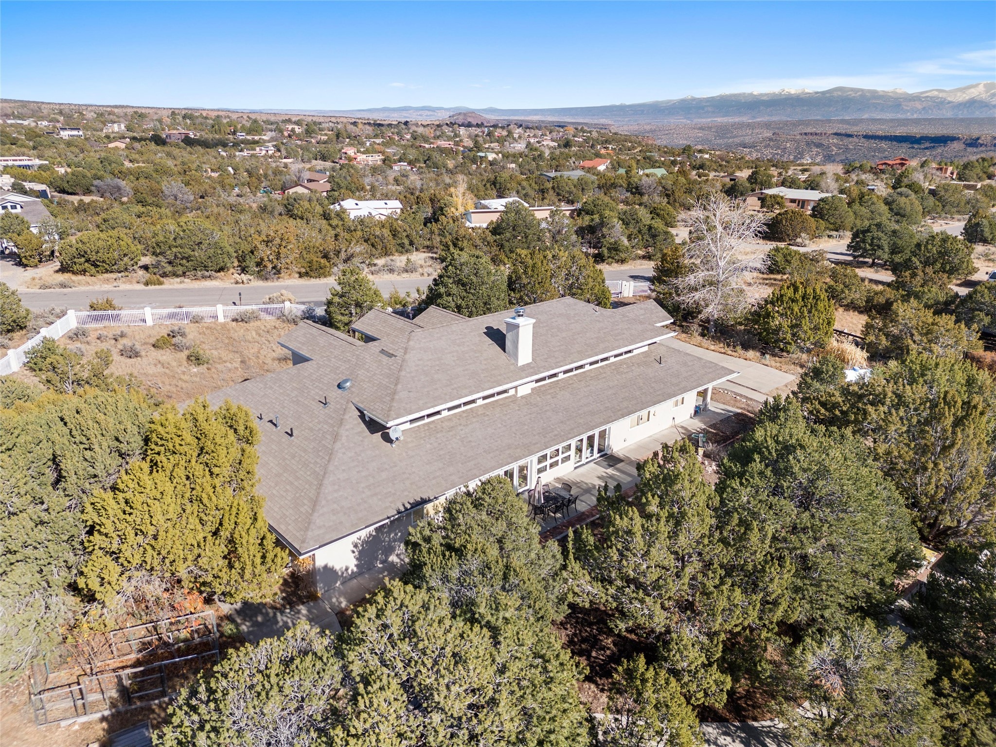 Spacious, thoughtfully designed, and full of extras, 177 Piedra Loop offers room to live, work, and play. The main home features 4 bedrooms, 5 bathrooms (3 full, 2 half) and approximately 4,810 sq ft of living space, with ADA-friendly features including extra-wide hallways and doorways, raised electrical outlets, ramps, and a bedroom with an attached ADA-compliant bath. Bedrooms enjoy cozy dormer sitting areas and laminate wood flooring, and there is excellent storage throughout, including two walk-in-height attic spaces upstairs.The heart of the home centers around an updated kitchen, a two-sided glass fireplace shared by the living room and the 10x40 sunroom, and comfort features like a central vacuum system and cellular blinds. The sunroom offers wonderful solar gain and is an ideal spot for plants to thrive indoors year-round.Outside, an automatic gate welcomes you into a treed lot with defined gardening areas and a watering system, plus a patio and fire pit for outdoor relaxing and entertaining. A true standout is the approximately 2,600 sq ft shop, with two bays featuring RV-height doors. Inside, you'll find a heated, well-lit woodworker's dream space with easy-clean floors and its own bathroom. Above the shop is a studio with a kitchenette, bathroom, additional storage, and an electric cargo lift to make moving items upstairs a breeze.This property is an exceptional opportunity for anyone needing generous living space, accessibility features, hobby/workshop space, guest or rental potential, and room for RVs or special projects--all in one place.
