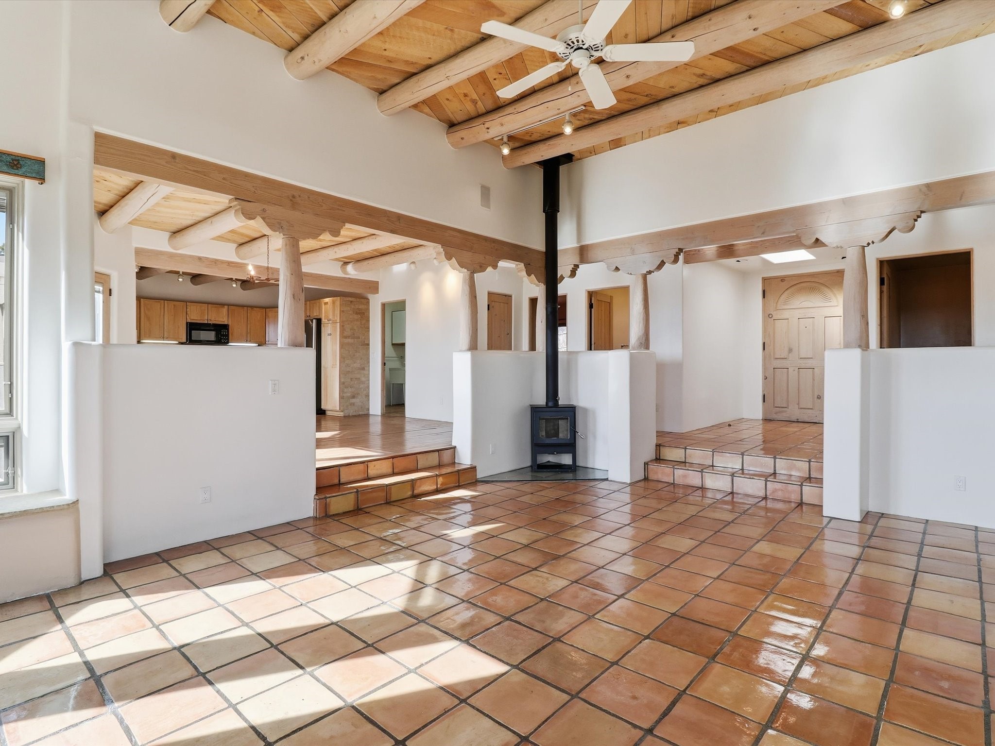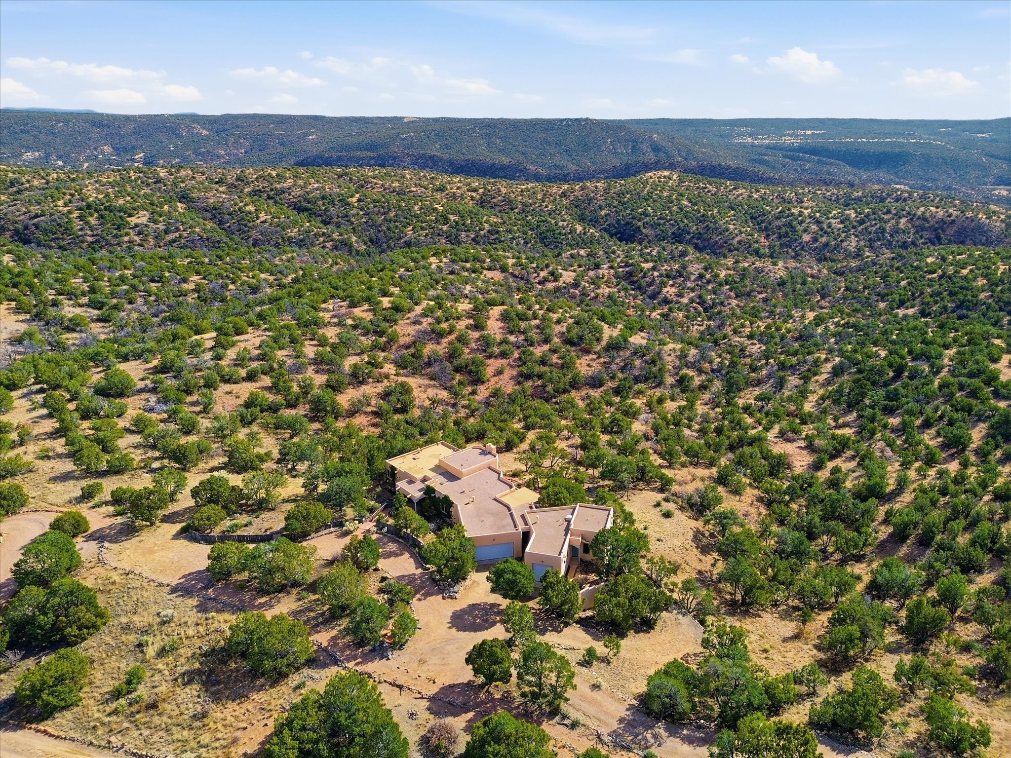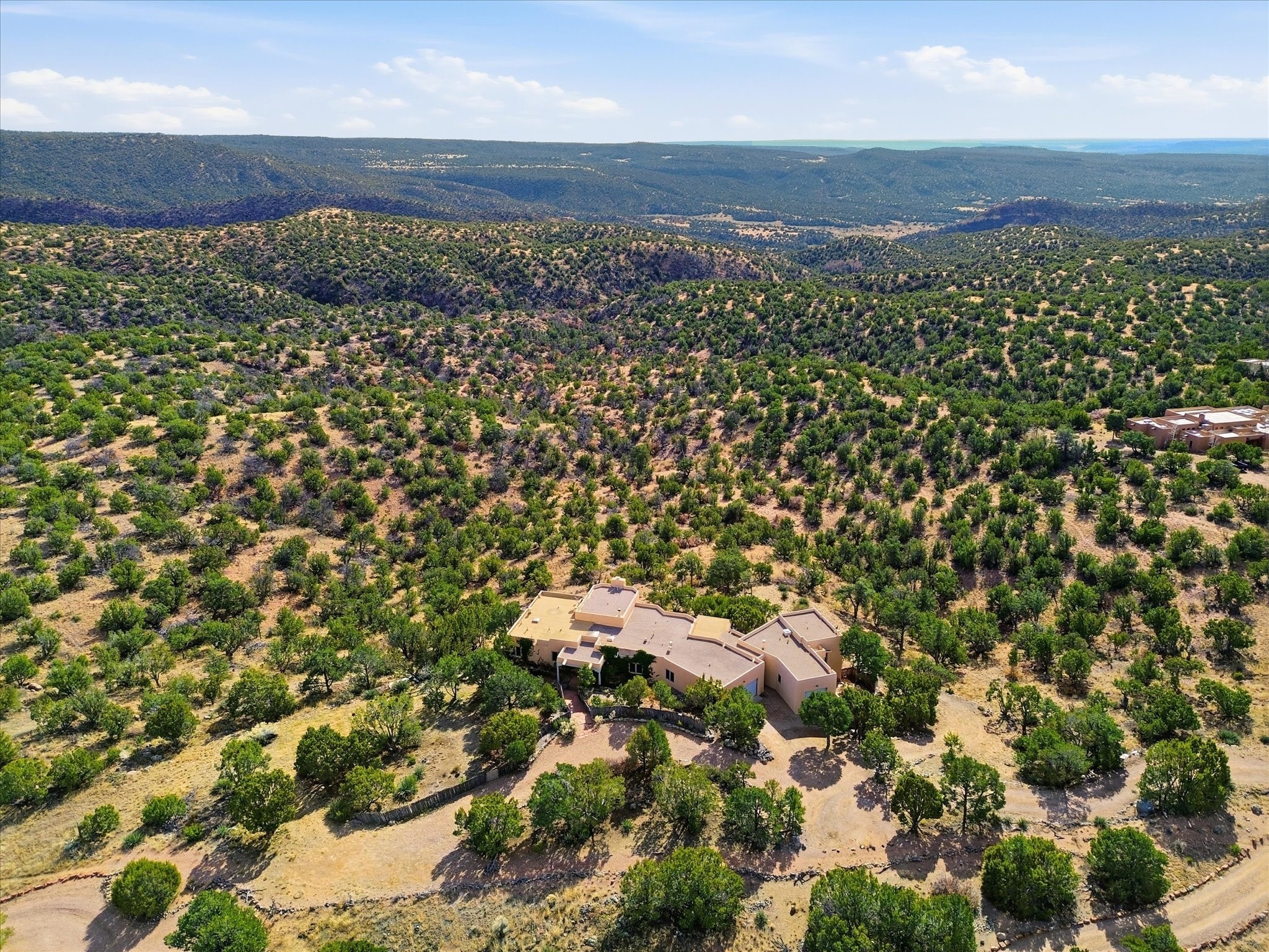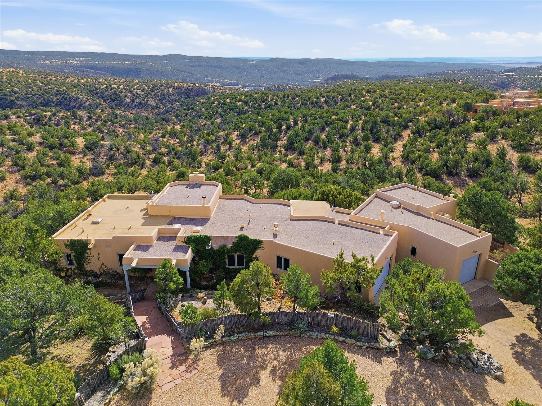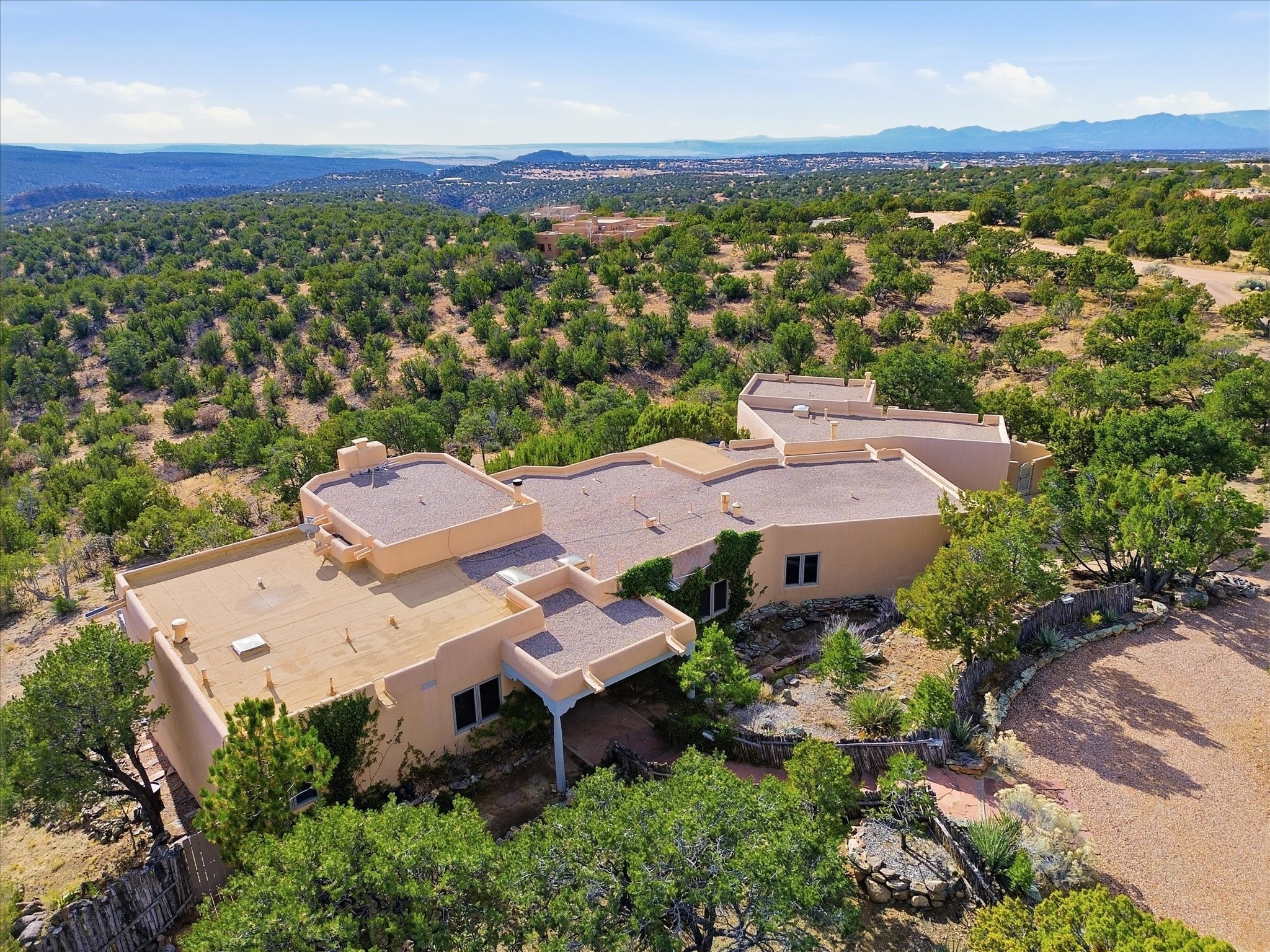 Discover this delightful home and guest house with a pleasant studio space for work or hobbiessituated on 4.3 acres capturing the most outstanding and mesmerizing views in the Santa Fearea. It offers lovely trails right out your front door, and presents all theelegant Santa Fe finishes and has been has been recently delightfully remodeled. The roof hasbeen replaced this year and has a transferrable warranty. Many of the windows were also replaced. Floors throughout are saltillo tile and wood. The entire property is light and bright with all blinds behindglass. Minutes from the Santa Fe Plaza offering prospective buyers a full -time bonus residence or charming secondary retreat. Schedule your showing today!