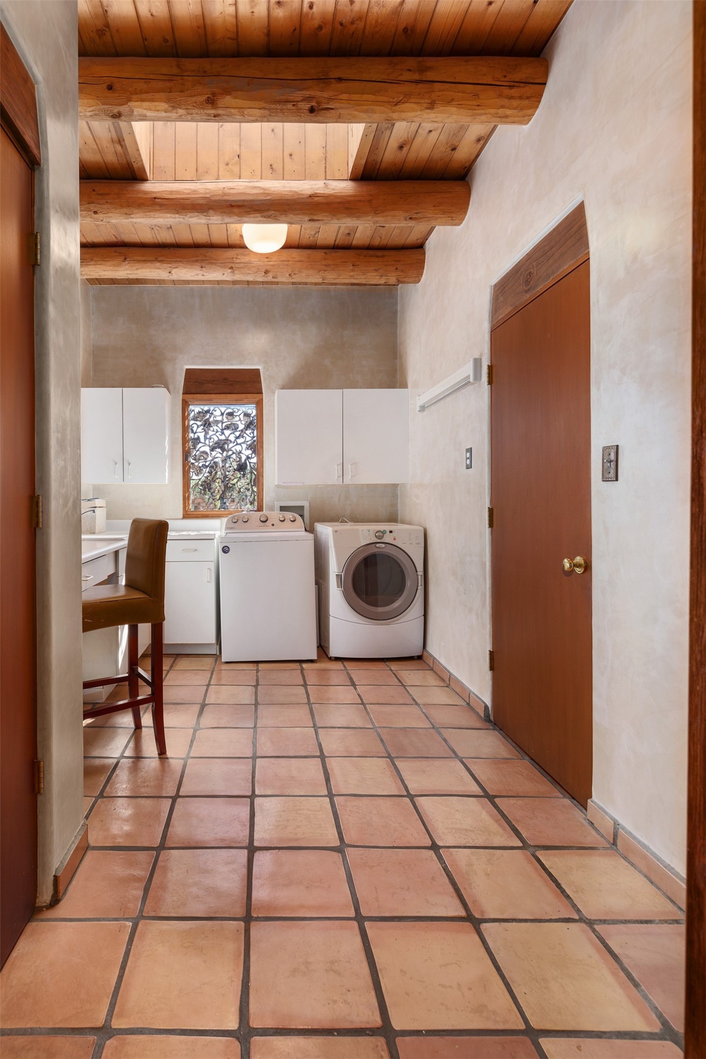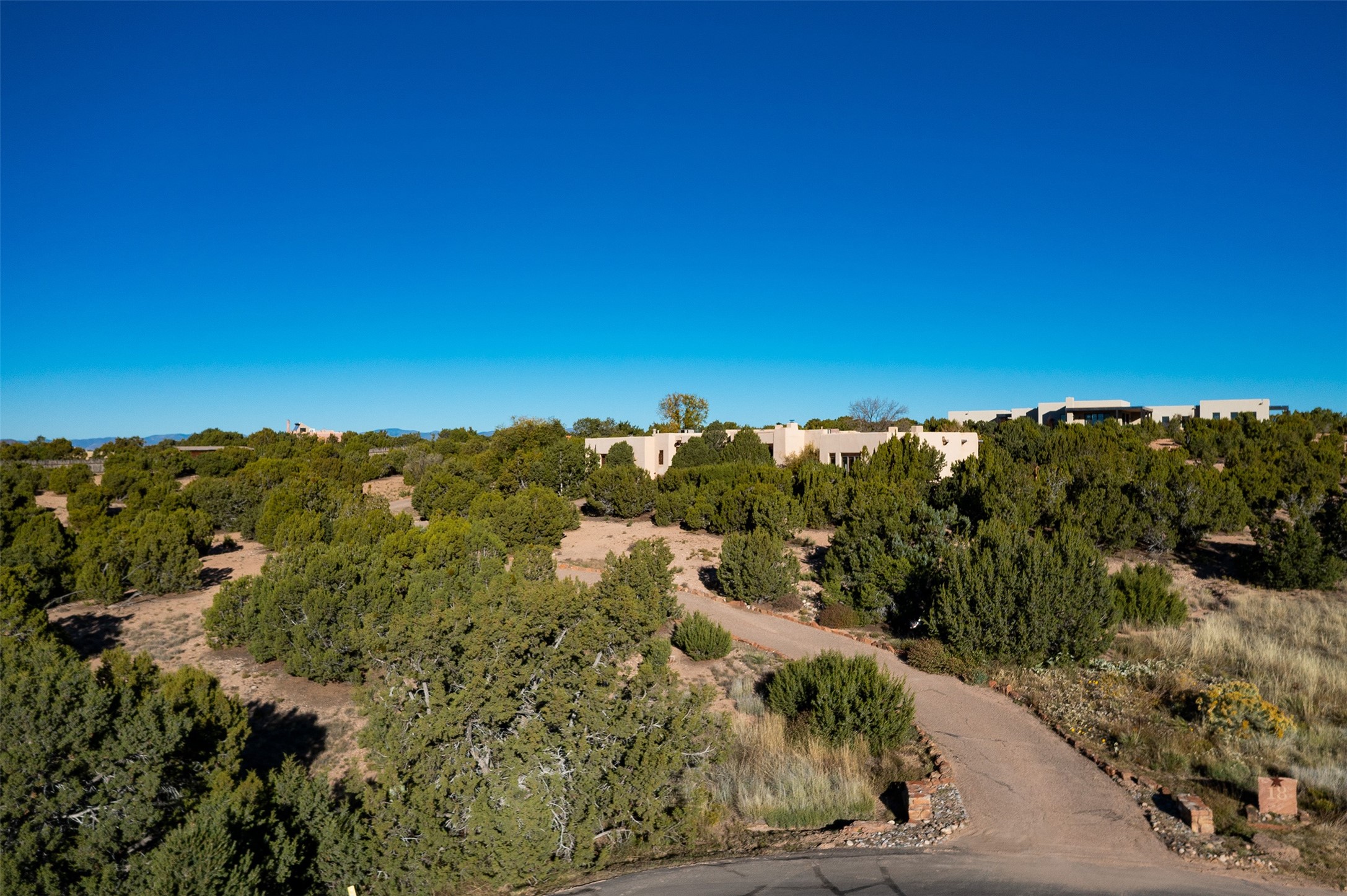 Las Campanas- Beautiful Classic Santa Fe Style on an elevated homesite with Sangre de Cristo & Sandia mountain views! Plenty of room in the developable area to add a casita with easy access from the circle driveway. Approximately 4235 sq ft & an oversized 3 car garage w/ a lot of extra storage. Throughout the home find beautiful hard plastered walls, traditional treatments with vigas, latillas, & coved ceilings, wood & travertine stone floors. Primary suite with an exquisite bath w/ timeless Talivera Tile, 2 water closets, 2 vanities, a large tub and separate shower and 2 walk-in closets. Guest bedrooms are spacious, en-suite, all with doors to the outside courtyards. Handsome office with Kiva FP & built-in bookshelves. Expansive Great Room with a large fireplace and dining area, awash in natural light, flowing to the inviting kitchen w/ bar area & connected family room w/ FP & French doors opening to the back portal-sure to become one of your favorite spots-with Sangre mountain views & outdoor fireplace. Radiant in-floor heat & central forced air AC. This home has a prime location in Estate 2- close to the Santa Fe Plaza & shopping. Membership to the Club at Las Campanas is optional, it is an additional investment, by invitation, & handled through The Club. Amenities are numerous & World Class. Come see this blend of privacy, grace, and beauty! 24hr security & paramedics. Look at video!