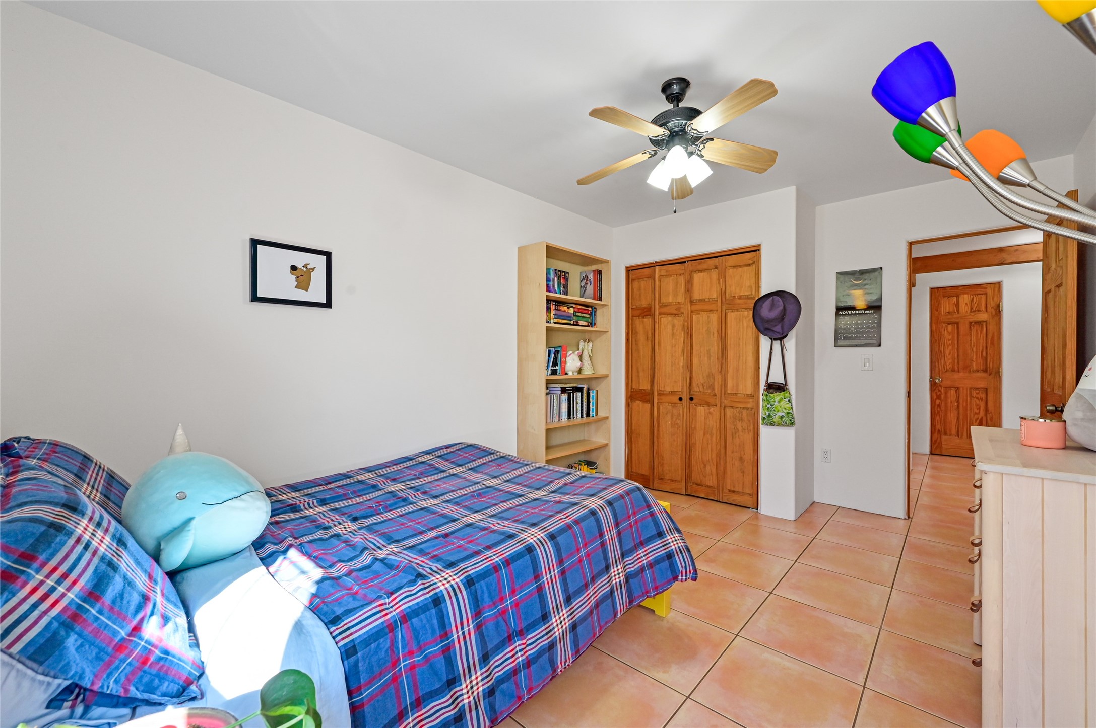 You will be delighted the minute you walk into this move in ready gem. Loaded with Santa Fe style, yet with all the modern touches, tile floors, mini-splits, granite counters, SS appliances. The open flow from living area to dining room and kitchen is perfect for gatherings with family and friends. The Owner's suite and oversized second bedroom are situated allowing for access to enjoy the backyard covered patio. The location is central to trails, shopping, the plaza, and fine dining, and located just down the street you can enjoy the neighborhood park. Once you see this home, I think you will agree it has a lot to offer.
