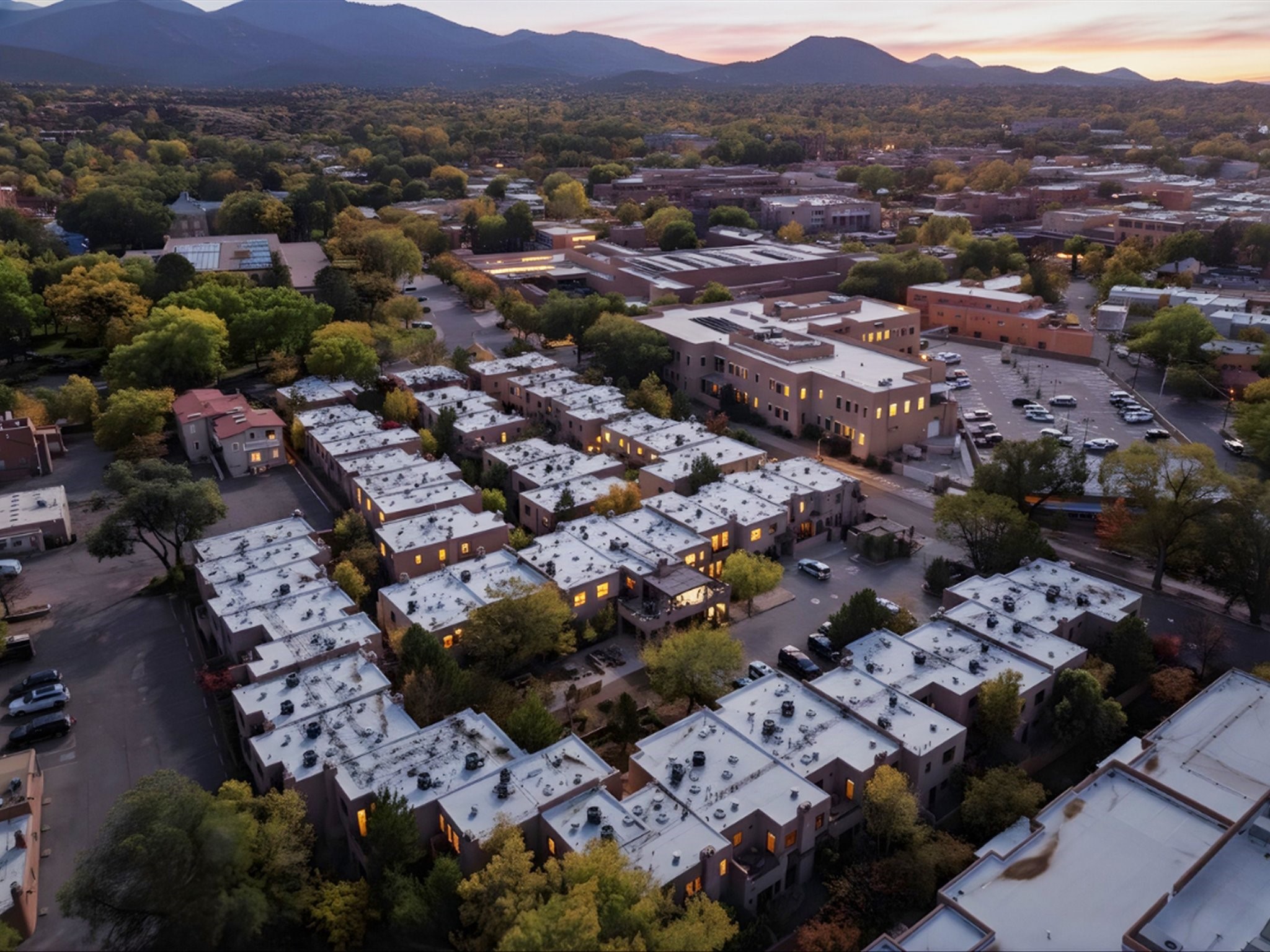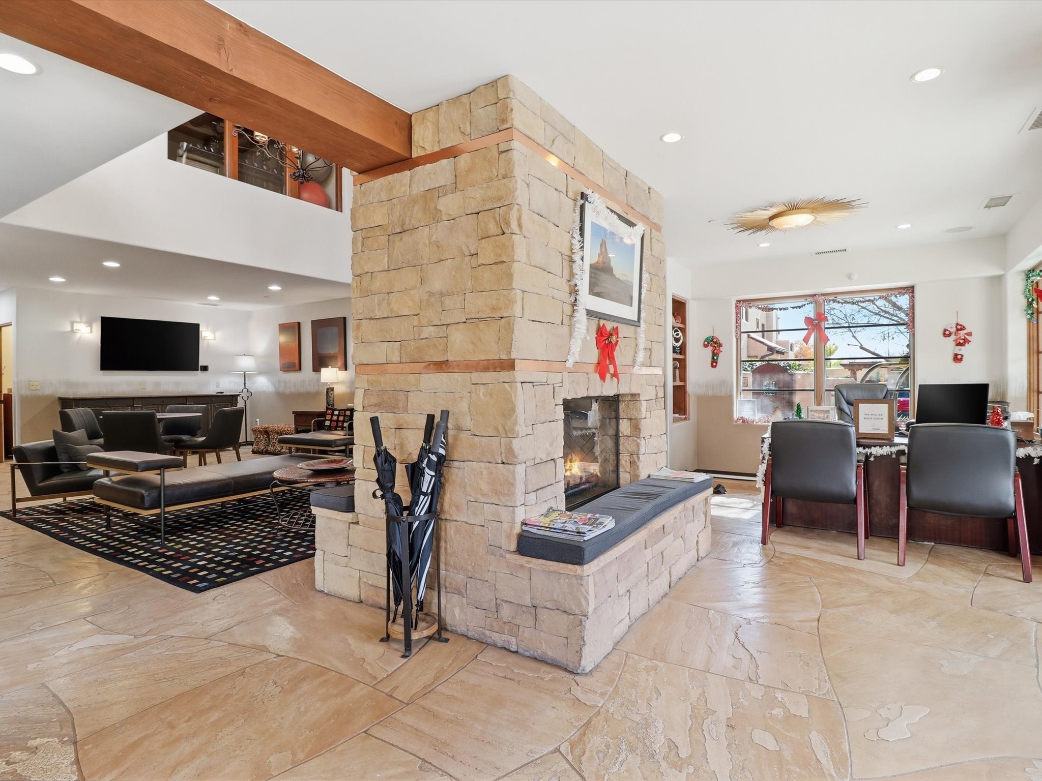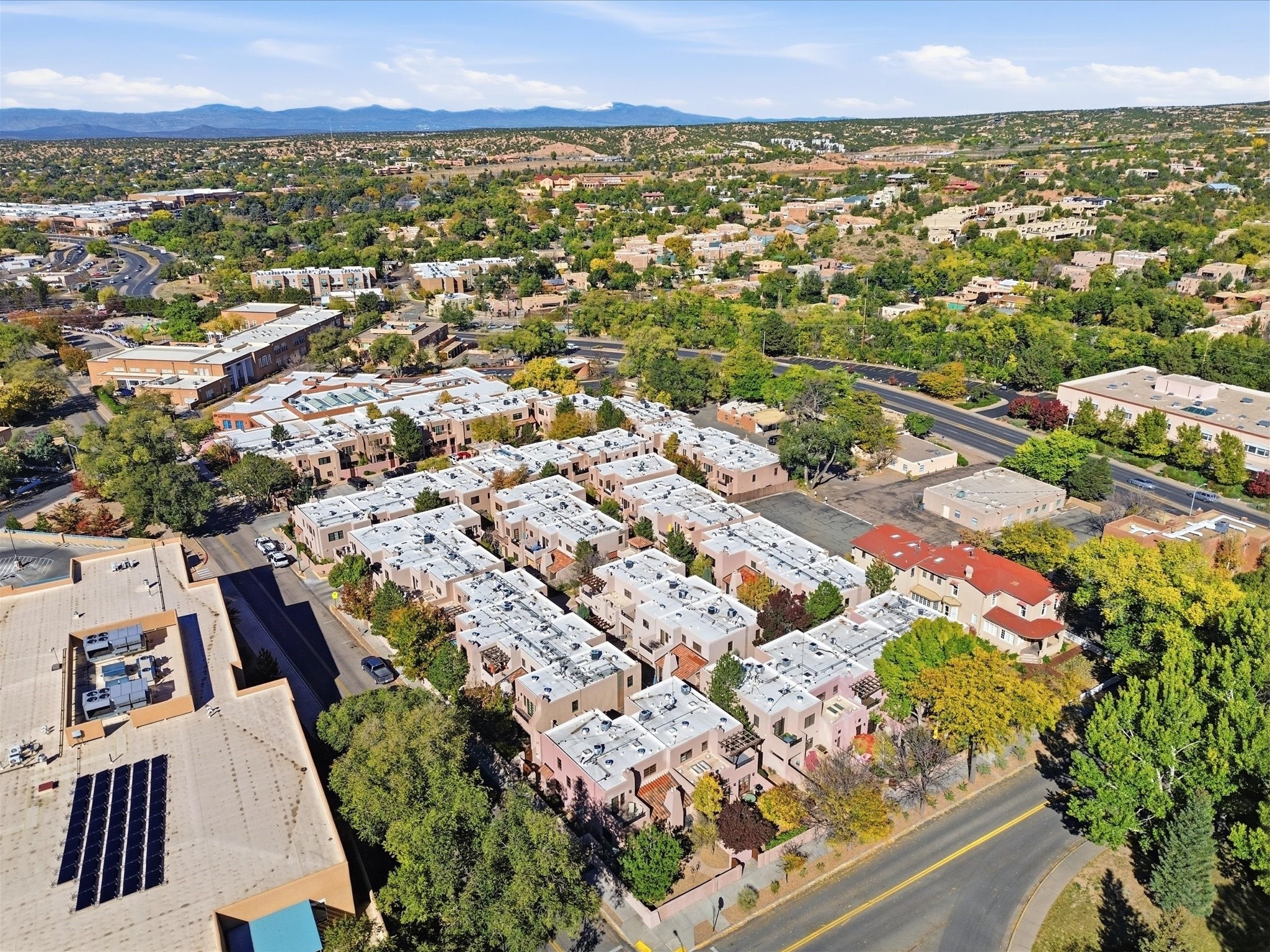 Welcome to El Corazn de Santa Fe, a gated community perfectly situated in downtown Santa Fe -- just minutes from the Plaza, local music, restaurants, and shopping. This two-bedroom, one-bath upper unit offers a seamless blend of style, comfort, and practicality for modern living. Step inside to an open concept living and dining area, perfect for relaxing or entertaining, with easy access to a private balcony where you can enjoy your morning coffee or Santa Fe sunsets. The kitchen is thoughtfully designed with ample built-in cabinets and appliances ready for daily use, plus a conveniently located laundry space for seamless movement. The unit features two bedrooms, including a primary bedroom with a built-in closet, and a remodeled full bathroom. The layout ensures comfort and privacy, while the second-story location provides quiet and scenic views from inside the unit. Residents of El Corazn enjoy an array of community amenities, including a rooftop open space at the clubhouse, a gym, and a barbecue area -- ideal for staying active, socializing, or simply relaxing outdoors.With downtown dining, shopping, and entertainment just moments away, this home perfectly balances city access with everyday comfort. Whether you're looking for a stylish downtown condo or a convenient retreat in Santa Fe, this unit is a must-see.