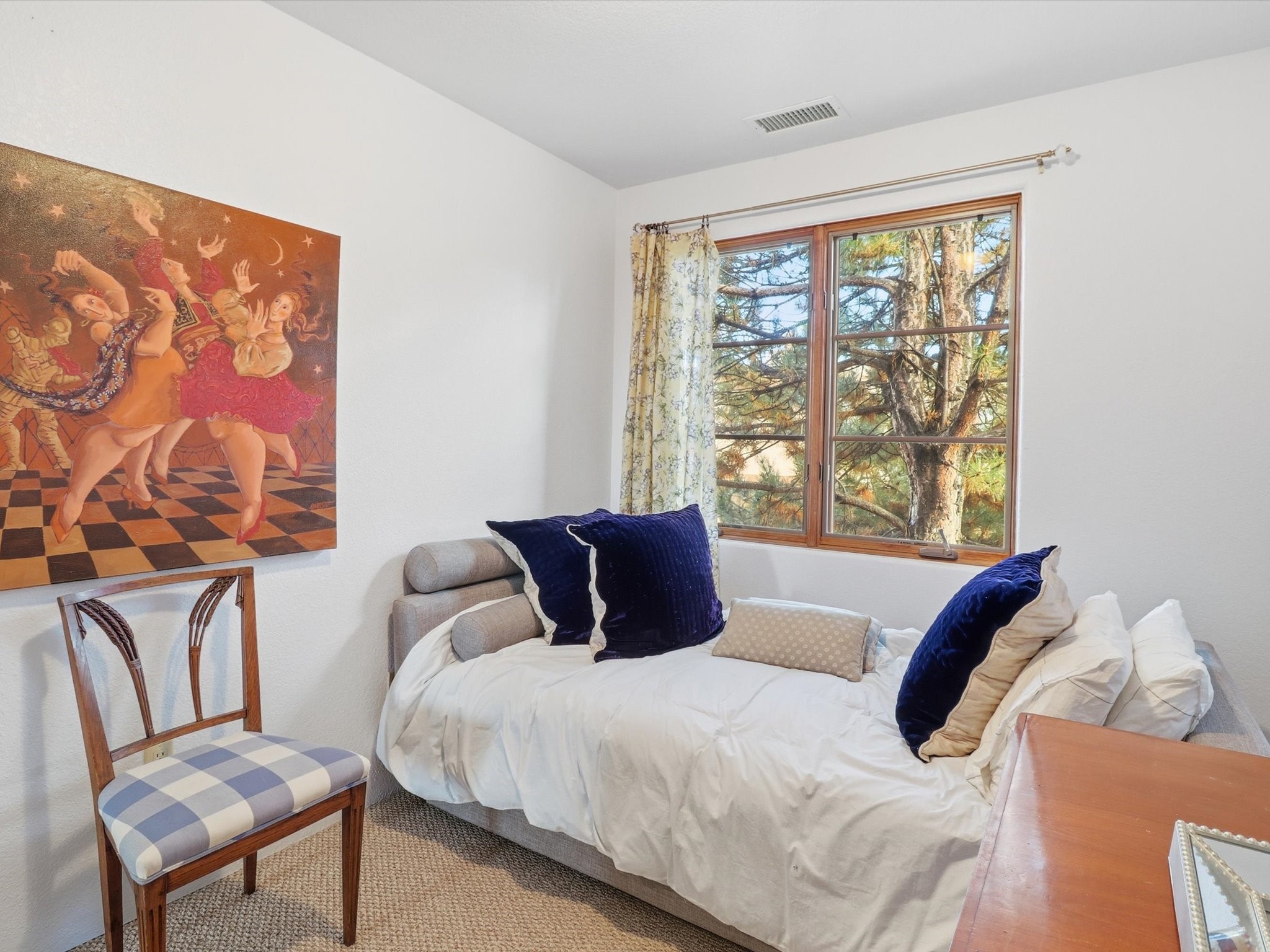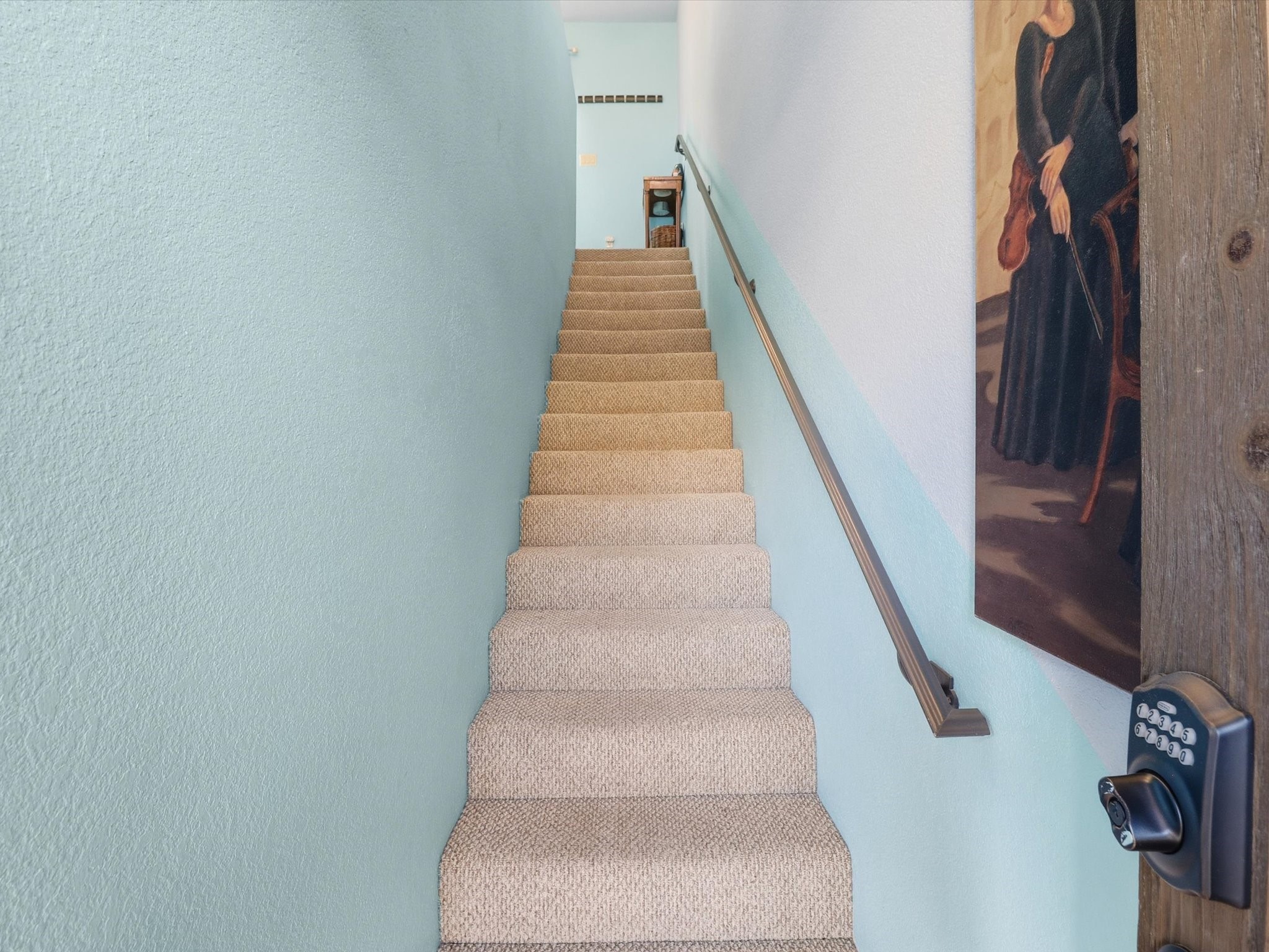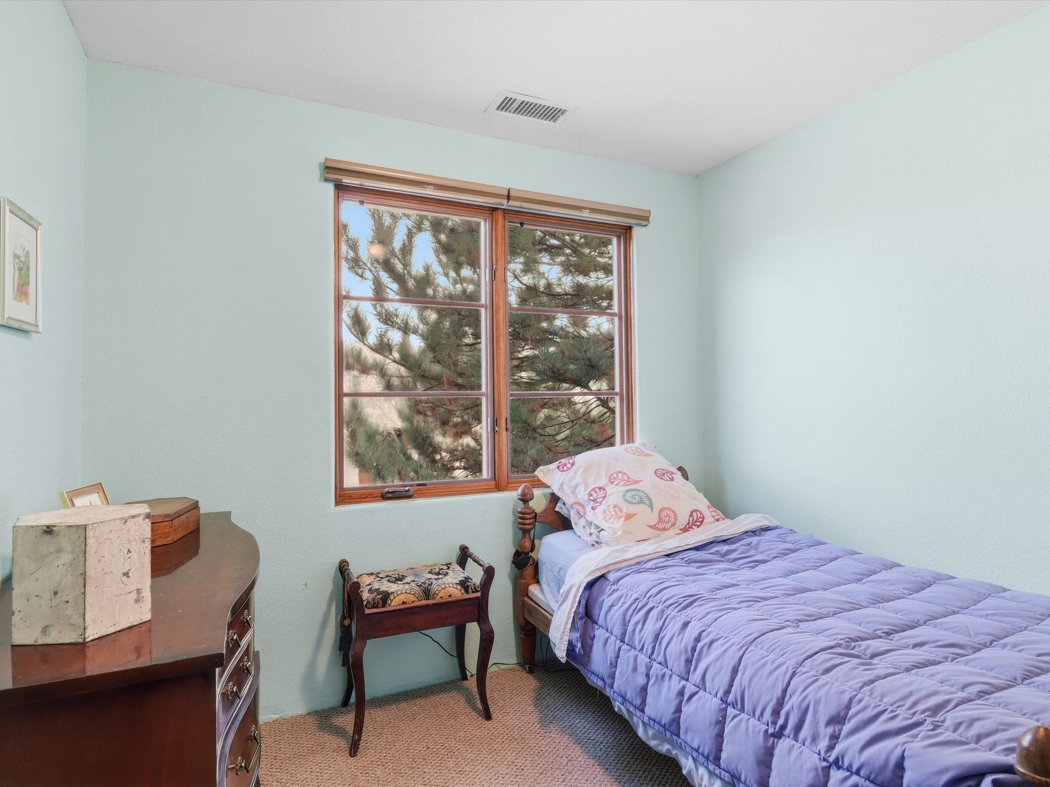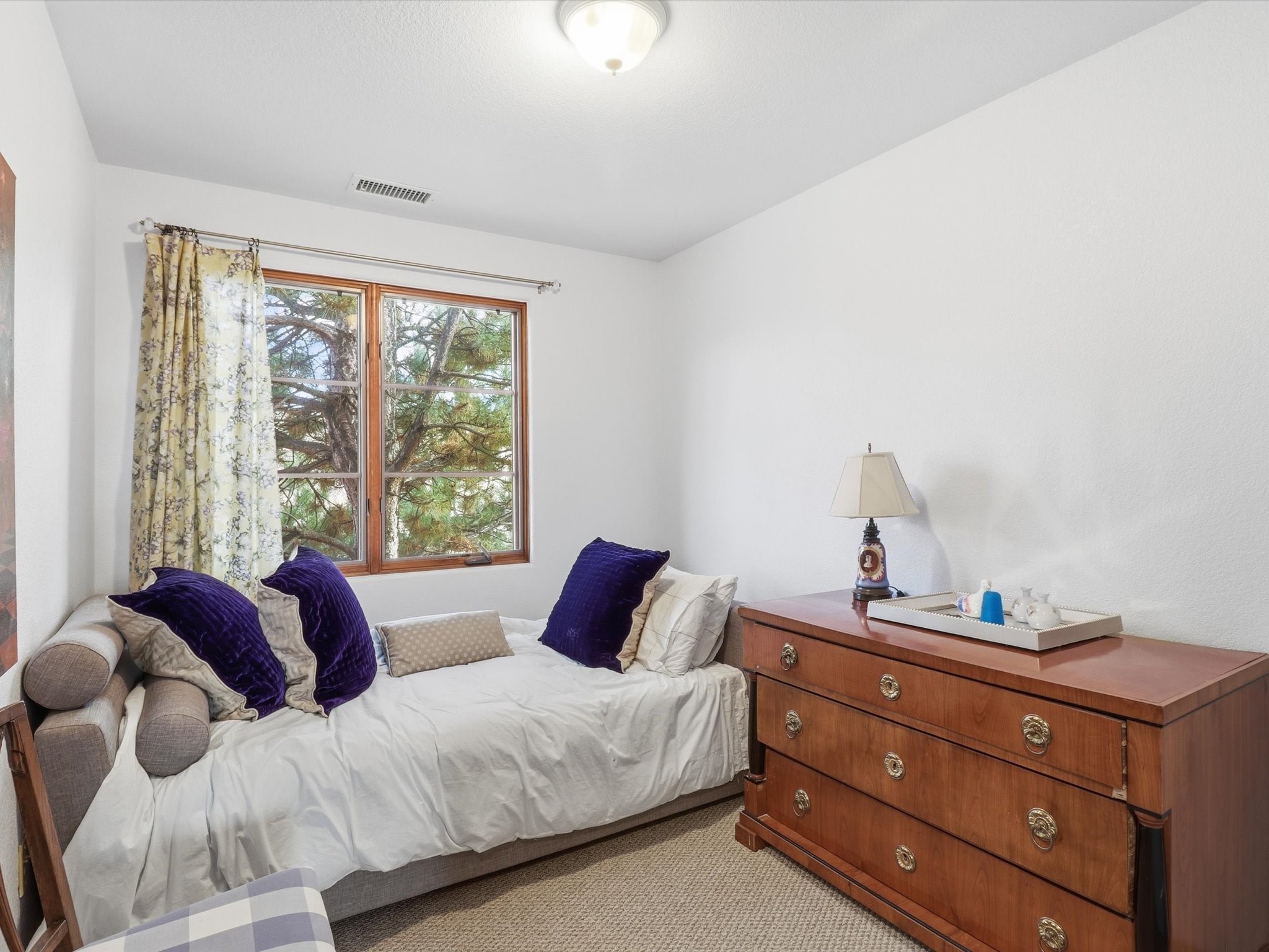 Welcome to El Corazn de Santa Fe, a gated community perfectly situated in downtown Santa Fe -- just minutes from the Plaza, local music, restaurants, and shopping. This two-bedroom, one-bath upper unit offers a seamless blend of style, comfort, and practicality for modern living. Step inside to an open concept living and dining area, perfect for relaxing or entertaining, with easy access to a private balcony where you can enjoy your morning coffee or Santa Fe sunsets. The kitchen is thoughtfully designed with ample built-in cabinets and appliances ready for daily use, plus a conveniently located laundry space for seamless movement. The unit features two bedrooms, including a primary bedroom with a built-in closet, and a remodeled full bathroom. The layout ensures comfort and privacy, while the second-story location provides quiet and scenic views from inside the unit. Residents of El Corazn enjoy an array of community amenities, including a rooftop open space at the clubhouse, a gym, and a barbecue area -- ideal for staying active, socializing, or simply relaxing outdoors.With downtown dining, shopping, and entertainment just moments away, this home perfectly balances city access with everyday comfort. Whether you're looking for a stylish downtown condo or a convenient retreat in Santa Fe, this unit is a must-see.