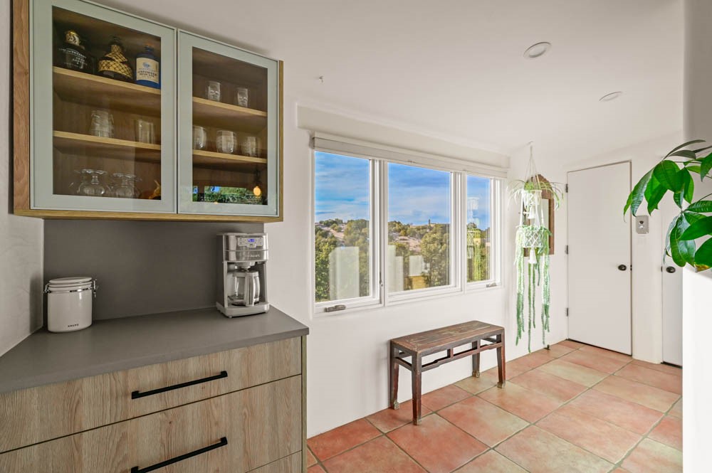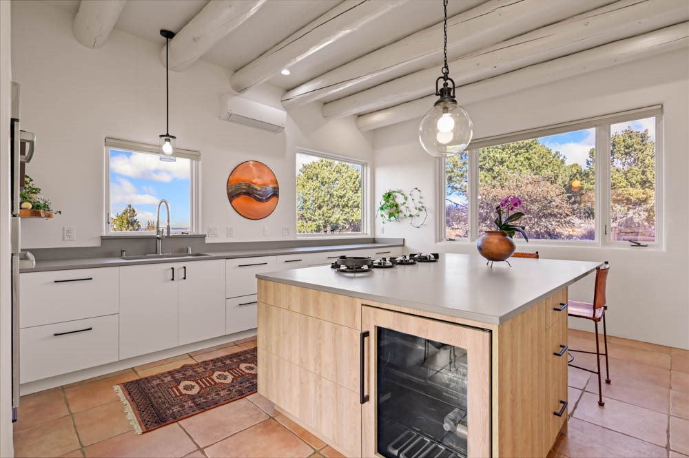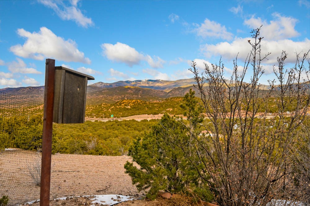 Exceptional mountain views! Beautifully updated Santa Fe home offering classic Southwestern charm and modern amenities. Features include a sun-filled remodeled chef's kitchen with walk-in pantry and an elevator from the oversized 2-car garage for easy access to the secondary refrigerator and multiple storage rooms.The primary suite offers an elegant soaking tub for two and private retreat deck. The two downstairs bedrooms have ensuite bathrooms and an adjoining steam shower, and individual French-door entries that open onto a patio framed by a blooming pollinator's haven.Expansive outdoor living with three distinct portals, the largest fully equipped with a built-in grill and cabinetry for seamless entertaining while enjoying sweeping views of the Sangre de Cristo Mountains, Santa Fe Ski Basin, and Badlands.Located in a private, secure, gated community surrounded by a mature pion and cedar forest. Approx. 2-acre lot provides peace and serenity, yet you're less than 10 minutes from exceptional culinary spots, the vibrant and historic Santa Fe Plaza, and the world-renowned Santa Fe Opera. Home is in the County and not subject to the Mansion Tax for buyers. Furniture package available.
