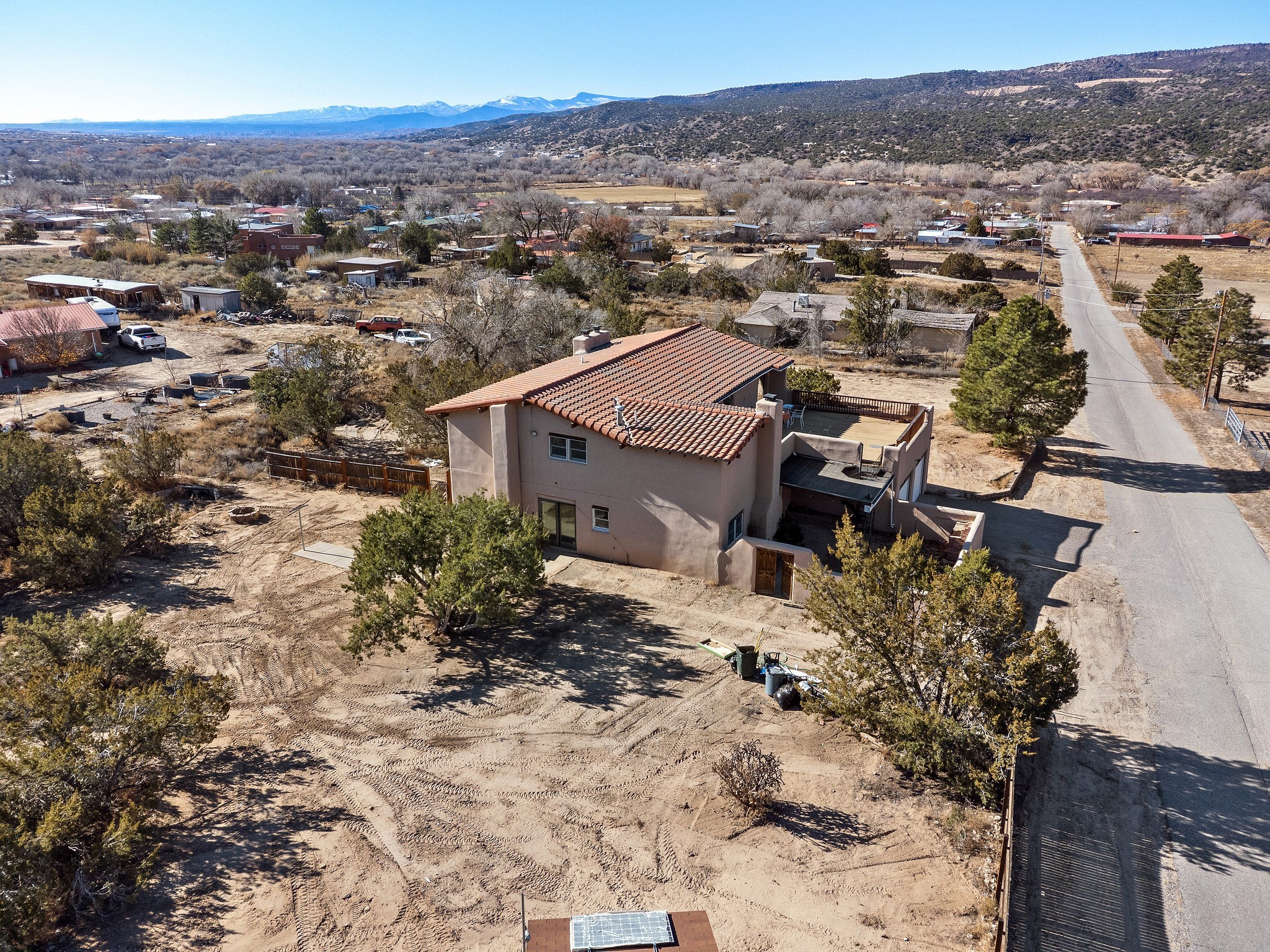 Experience Northern New Mexico living in this beautifully crafted 4-bedroom, two-story stucco home on .83 acres in Velarde. A classic Spanish tile roof, mature landscape, and a welcoming spacious foyer set the tone the moment you walk in. The home offers an ideal layout with a formal dining room for gatherings, a bright kitchen with a cozy breakfast nook, and three fireplaces that create warmth and ambiance throughout.Upstairs, step out onto the rooftop deck and enjoy sweeping valley and mountain views--perfect for stargazing or evening relaxation. The oversized 2-car garage provides ample storage and includes two EV circuits, making it future-ready for modern living.With nearly an acre of space to spread out, this property offers privacy, charm, and room for gardens, outdoor living, or simply enjoying the peaceful surroundings. This Velarde gem blends character, comfort, and a touch of historic style--you'll want to see this one in person.